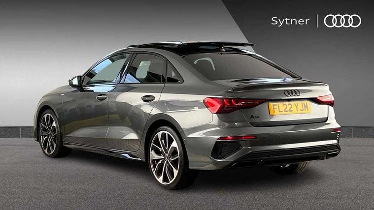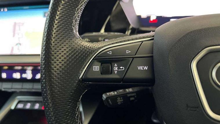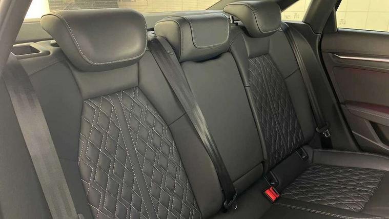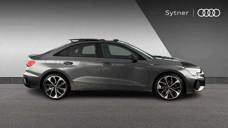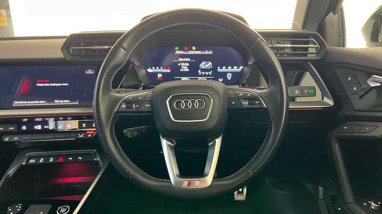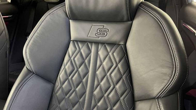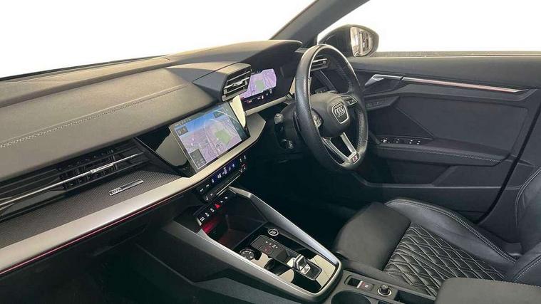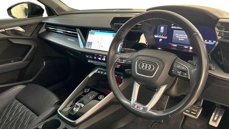 Audi connect emergency call and service, Audi drive select (Auto, Comfort, Dynamic, Efficiency and Individual), Audi smartphone interface, Audi virtual cockpit plus - 12.3" dynamic digital instrument cluster, Automatic start/stop system with recuperation, Bluetooth interface, Collision avoidance assistant, Electromechanical power speed sensitive steering, Head up Display, Lane departure warning system, MMI Navigation Plus with high resolution 10.1" colour touch screen display, Reversing camera, Service indicator, Voice control system with natural language interaction, Diesel particulate filter, S sports suspension with damper control and lowering by 15mm, 2x USB Type C ports (for charging and data transfer), Bang and Olufsen premium sound system with 3D sound, CD player, DAB Digital radio, 3rd brake light, Acoustic glass windscreen, Audi Beam uses LEDs to project Vorsprung onto the ground as you exit your A3, Audi matrix LED headlights, LED rear lights, dynamic front and rear indicators and headlight cleaning system, Auto dimming frameless rear view mirror, Electric panoramic sunroof, Electrically adj heated/folding + automatically dimming exterior mirrors with memory + automatic kerb side function for passenger side exterior mirror, Front electric windows, Illuminated door sills with aluminium inserts at the front with S logo, Integrated LED indicators in door mirrors, LED daytime running lights, Light and rain sensors, Model and engine designation badges at rear, Privacy glass - dark tinted rear window, rear door and side windows, Rear boot, Rear electric windows, Rear side wing doors, S roof spoiler, 12V socket and storage compartment in front centre console, 3 seat bench in 2nd row, 3 spoke leather multifunction steering wheel with gear shift paddles, 4 way electrically adjustable lumbar support for driver and front passenger, 40/20/40 split folding rear seat bench with cupholder, Black cloth headlining, Dual zone electronic climate control, Electrically adjustable front seats with memory function for driver's side and exterior mirrors, Fine Nappa leather upholstery with front sports seats S embossed logo, Front and rear centre armrest in leather, Front and rear headrests, Front/rear floor mats, Heated front seats, Height and reach adjustable steering wheel, Interior lighting - glove compartment light and right hand side, Luggage compartment floor covering, Seat side bolsters, Single front passenger seat, Stainless steel pedals and front footrest in black, Aluminium interior elements pack - A3 Saloon, Driver Assistance pack - A3 Saloon, Extended ambient lighting pack - A3/S3 Saloon, LED interior lighting pack - A3 Saloon Edition 1/Vorsprung, 3x3 point rear seat belts, Driver and front passenger airbag with passenger airbag deactivation, Electronic Stabilisation Control (ESC) including ABS, ASR and EDL, First aid kit with warning triangle and 2 safety vests, Front side airbags with head airbags and interaction airbag, Hill hold assist, Pre-sense front with pedestrian and cyclist detection, Seatbelt monitoring, Tyre pressure loss indicator, Advanced key and power operated tailgate - Luggage compartment lid opens electrically, Anti theft alarm, Anti-theft wheel bolts, Electronically operated child lock, Immobiliser, Remote control central locking, Aluminium air vent surrounds, Aluminium trim elements, Carbon inlays, accent surfaces in the dashboard and centre console in platinum grey silk effect paint finish,