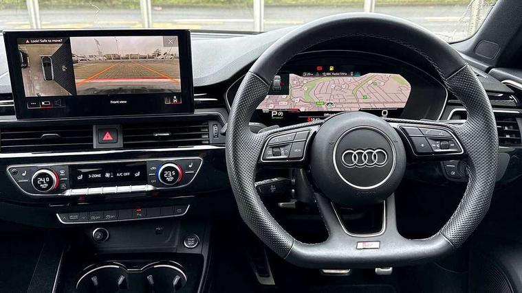 Audi connect safety and service (e-call), Audi connect with Amazon Alexa Integration, Audi drive select, Audi smartphone interface, Audi virtual cockpit, Automatic start-stop system with coasting functionality and efficiency programme, Bluetooth interface, Electromechanical power steering, Email, calendar and text messages displayed via MMI, Front and rear parking sensors, MMI Navigation plus with MMI touch includes 10.1" high resolution colour MMI display, 3D map, Power operated tailgate, Rear view camera, Voice control system, Sports suspension lowered by 23mm, 2 USB charging ports, 8 passive loudspeakers, DAB digital radio reception, Audi beam uses LEDs to project the audi logo onto the ground as you exit your A4, Auto dimming rear view mirror, Black Audi rings and black badging (model name in black badging, no engine badging), Body colour door handles, Body colour front spoiler lip, Body colour side sill trim, Electrically folding auto dimming/adjustable/heated door mirrors with LED side indicators and kerb view function for passenger side, Exhaust tailpipes in high dark chrome, Grained matt black side air inlets with matt aluminium silver inlay, High beam assistant, High gloss black B pillar trims and triangular rear door trim, LED headlights with LED rear lights + dynamic rear indicators + headlight adjustment and high beam, turning light + LED daytime running lights, LED third brake light, Privacy glass, Rain and light sensors, Rear diffuser in matt black with trim strip in matt aluminium silver, Rear side wing doors, Rear wiper, RS4 rear spoiler in body colour, S Line roof edge spoiler, Sport front and rear bumpers with side skirts, Variable intermittent front wash/wipe, Windscreen with acoustic glazing, 4 way electric lumbar support for driver and front passenger, 40/20/40 split folding 3 rear seat bench in 3 parts with rear centre armrest, Black cloth headlining, Black perforated leather gearknob, Contrast stitching on seats, steering wheel and gear lever gaiter, Deluxe 3 zone electronic climate control, Door sill trims with aluminium inlay, Electric load area cover, Front and rear head restraints, Front centre armrest, Heated front seats, Illuminated door sill trims with S logo, ISOFIX child seat mounting and top tether, Manual seat adjustment, Single front passenger seat, Stainless steel pedals and foot rest, Black styling pack - A4 Avant, LED Interior light pack - A4/S4, 3 rear seatbelts, 6 airbags - Driver, front passenger, curtain and side windows, Electronic Stabilisation Control (ESC) including ABS, ASR and EDL, Hill hold assist, Multi collision brake assist, Pop-up bonnet for pedestrian protection, Pre sense city, Rear door child safety locks, Seatbelt monitoring, Warning triangle and first aid kit, Anti theft alarm, Anti theft wheel bolts, Central locking, Keyless Go, Piano black finish inlay, Tool kit, Tyre repair kit,