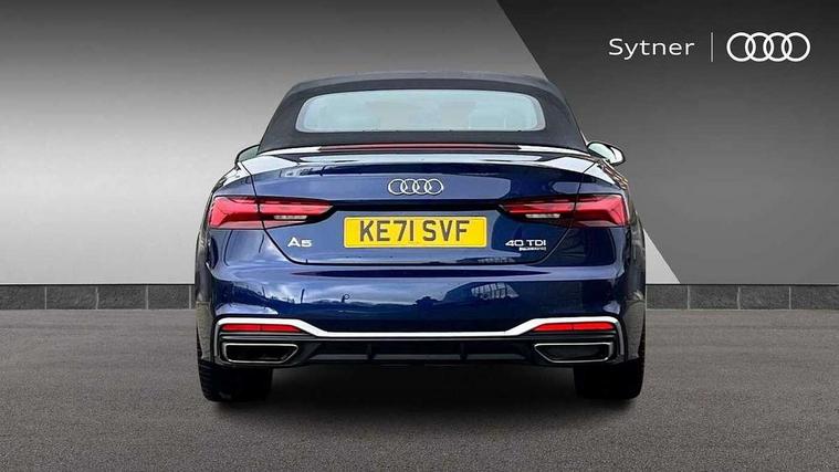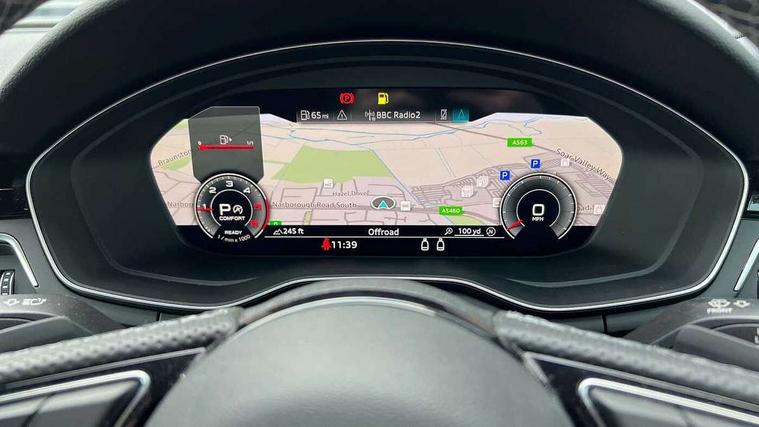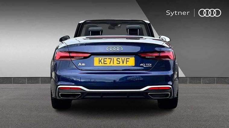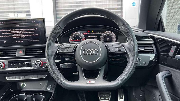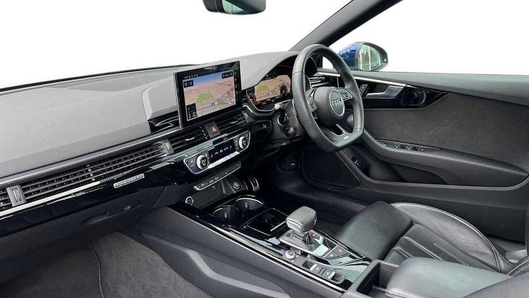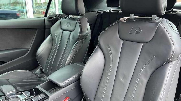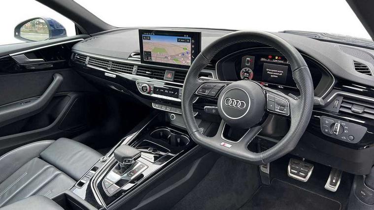 Audi connect safety and service (e-call), Audi connect with Amazon Alexa Integration, Audi drive select (Auto, Comfort, Dynamic, Efficiency and Individual), Audi parking system plus with front and rear sensors, Audi smartphone interface, Audi virtual cockpit - 12.3" full colour digital instrument cluster, vehicle/engine speed, Radio/media information+Driver assistance systems, Automatic start-stop system with coasting functionality and efficiency programme, Bluetooth interface, Electric boot lid release, Electro-mechanical power steering, Email, calendar and text messages displayed via MMI, MMI nav+ with MMI touch - 10.1" high resolution MMI display, touch sensitive, 3D map, route/country info, dynamic route guide, personal route assist, Rear view camera, Service interval indicator, Voice control system, Diesel particulate filter, Sports suspension lowered by 23mm, 8 passive loudspeakers, CD player, DAB digital radio reception, Two additional USB ports for rear passenger in rear centre console, Two SDXC card slots, Auto dimming rear view mirror, Body colour bumpers, Body colour door handles, Body colour front spoiler lip, Body colour side sill trim, Body coloured door mirrors, Electric adjustable heated door mirrors, Electric folding door mirrors, Electric front windows, Front fog lights, Honeycomb structure radiator grille in grained matt black, LED daytime running lights, Matrix LED headlights with Audi laser light, dynamic light sequencing and dynamic indicator, Matt aluminium silver tailpipe trim, Rain and light sensors, Rear diffuser in matt titanium black with trim strip in matt aluminium silver, Side air inlets in grained matt black with matt aluminium silver inlay, Sport front and rear bumpers with side skirts, Windscreen with acoustic glazing, 4 way electric lumbar support for driver and front passenger, 50/50 split folding 2 seater rear bench seat, Adjustable steering column, Black cloth headlining, Black perforated leather gearknob, Contrast stitching on seats, steering wheel and gear lever gaiter, Deluxe 3 zone electronic climate control, Electrically adjustable front seats, Fine Nappa leather upholstery with front sports seats S embossed logo, Front centre armrest, Front head restraints, Front/rear floor mats, Heated front seats, Illuminated door sill trim with S logo, ISOFIX child seat mounting and top tether, Luggage compartment mat, Rear headrests, Stainless steel pedals, Sunvisors with vanity mirrors, LED interior light pack - A5/RS5, 2 x 3-point rear seatbelts, 6 airbags - Driver, front passenger, curtain and side airbags, Electromechanical parking brake, Electronic Stabilisation Control (ESC) including ABS, ASR and EDL, Front passenger airbag deactivation, Height adjustable front seatbelts, Hill hold assist, Multi collision brake assist, Pop-up bonnet for pedestrian protection, Pre sense city, Seatbelt monitoring, Tyre pressure warning, Variable restraint system, Warning triangle and first aid kit, Anti theft alarm system, Anti theft wheel bolts, Immobiliser, Keyless Go, Remote central locking, Piano black finish inlay, 20" 5 twin spoke polygon design alloy wheels in gloss anthracite black and gloss turned finish, Tool kit, Tyre repair kit,