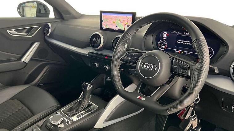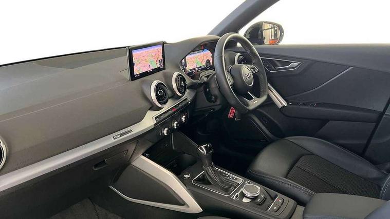 3D map display, Audi connect navigation and infotainment includes innovative services, Audi connect remote and control connects your vehicle to your smartphone, Audi drive select: S tronic - power steering assistance + engine + gearshift (modes: comfort, auto, dynamic, efficiency, individual), Audi smartphone interface - Apple carplay/Android Auto, USB connect, 2xSDXC card readers, voice control for navi, telephone, music and 3rd party apps, Audi virtual cockpit, Automatic start/stop system with recuperation, Bluetooth interface includes bluetooth audio streaming, Cruise control, E-call, Jukebox hard drive memory for music (10GB), MMI navigation plus with 8.3" colour MMI screen and MMI touch, Natural voice recognition, Power operated tailgate, Progressive steering, Rear parking sensors, Sport suspension, 6 passive loudspeakers, DAB Digital radio, Audi beam, Auto dimming rear view mirror, Black window trims, Bumper in full body colour paint finish, Electrically adjustable, folding, auto dimming and heated door mirrors with integrated LED side indicators, Front windscreen with grey tinted sunband, LED daytime running lights, LED headlights with dipped beam, high beam, position lights, indicators, LED rear lights, LED third brake light, Privacy glass - dark tinted rear and rear side windows from B-pillar backwards, Rear side wing doors, Rear wiper, Variable front intermittent wipers, Wheel arch trims in manhattan grey, 12v socket in front, 3 seat bench in 2nd row, 3 spoke flat bottomed multi-function leather sport steering wheel with gear shift paddles, 4-way electric lumbar support for front seats including manual seat height adjustment for both front seats, 60/40 split folding rear seat bench, Black carpets, Black cloth headlining, Front and rear head restraints, Front centre armrest, Front sport seats, Front/rear floor mats, Height/reach adjust steering wheel, Illuminated door sill trims with S logo, ISOFIX child seat mounting in front passenger and rear outer seats, Manual air conditioning, Single front passenger seat, Stainless steel pedals, Tool kit, Black styling pack - Q2, 3x3 point rear seatbelts, 6 airbags - Front, curtain and front side airbags, Electromechanical parking brake, Electronic stabilisation control including ABS, ASR and EDL, Front passenger airbag deactivation, Hill hold assist, Pre-sense front with pedestrian recognition, Seatbelt monitoring, Tyre pressure warning light with visual and acoustic warning, Warning triangle and first aid kit, Anti theft alarm, Anti theft wheel bolts, Electronically operated child locks, Remote central door locking, Aluminium interior element, Black dashboard, Matt brushed aluminium trim inlays,