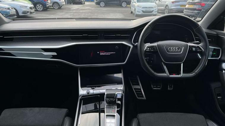 Audi connect safety and service (e-call), Audi connect with Amazon Alexa Integration, Audi drive select, Audi parking system plus - acoustic and visual park assist system for front and rear, Audi smartphone interface, Audi virtual cockpit - 12.3" high resolution LCD digital instrument cluster display, Automatic start/stop system with coasting functionality, Bluetooth interface, Colour driver's information system display, Electric boot lid release, Lane departure warning system, MMI nav plus with MMI touch + 10.1" and 8.6" HD haptic touch screen/3D city models/country information/online map/route info and personal route assist, Operating buttons in black, glass look with haptic feedback, Power operated tailgate, Progressive steering, Rear view camera, Service indicator, Voice control system, Sports suspension, Audi music interface - 2 USB ports with charger and data functions, Audi sound system with 6 channel amplifier, 180 watt amplifying capacity and 10 loudspeakers including subwoofer, Auxiliary input socket, DAB digital radio module, Coming/leaving home animations in front, Frameless auto dimming interior rear view mirror, Front and rear electric windows, Gloss black highlights on the exterior area of the Audi Single frame, Gloss black highlights on the front and rear bumpers, Gloss black highlights on the radiator grille, Gloss black highlights on the side windows trim strips, Headlight washers, Heat insulating darkened glass in side and rear windows, LED front indicators, LED Headlights, LED rear lights with dynamic rear indicators, Rain and light sensors, Rear side wing doors, Rear wiper, Retractable rear boot spoiler, S line air inlet design with inlay in high gloss black, S Line badge on front fender, S line badge on front grille, S Line Black rear diffuser with chrome inlays and rear grille, S Line side skirts, Signature LED daytime running lights, Third brake light, Towbar preparation, Windscreen with heat-insulating glass, 2 zone deluxe electronic climate control, 4-way electric lumbar support, 40/20/40 split folding 3 seater rear seat bench with rear centre armrest, Black cloth headlining, Electrically adjustable front seats - driver seat with memory, Front and rear headrests, Front centre armrest, Heated front seats, Height/reach adjust steering wheel, Illuminated door sill trims with S logo, Illuminated sun visors with vanity mirrors, ISOFIX child seat mounting and top tether in front and outer rear seats with front passenger airbag deactivation, Leather gear knob, Leatherette upper instrument panel and door shoulders, Luggage compartment floor, S line front and rear floor mats with contrast stitching, Single front passenger seat, Stainless steel pedals and foot rest, Tool kit and car jack, LED interior ambient lighting pack - A7, Non smoking pack - A7, 3 point seatbelts on all seats, Audi pre-sense front, Driver and passenger airbags, Electromechanical parking brake, Electronic stabilisation control including ABS, ASR and EDL, Extended pedestrian protection measures, Hill hold assist, Manual child lock in rear doors, Seatbelt monitoring, Tyre pressure warning light, Warning triangle and first aid kit, Anti theft alarm with tow away protection, Anti-theft wheel bolts and wheel loosening detection, Immobiliser, Keyless Go, Preparation for tracking system, Remote central locking, Carbon twill inlays, 20" 5 double arm design Audi sport cast aluminium high sheen matt titanium look alloy wheels,