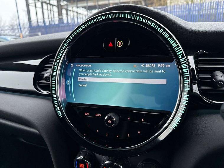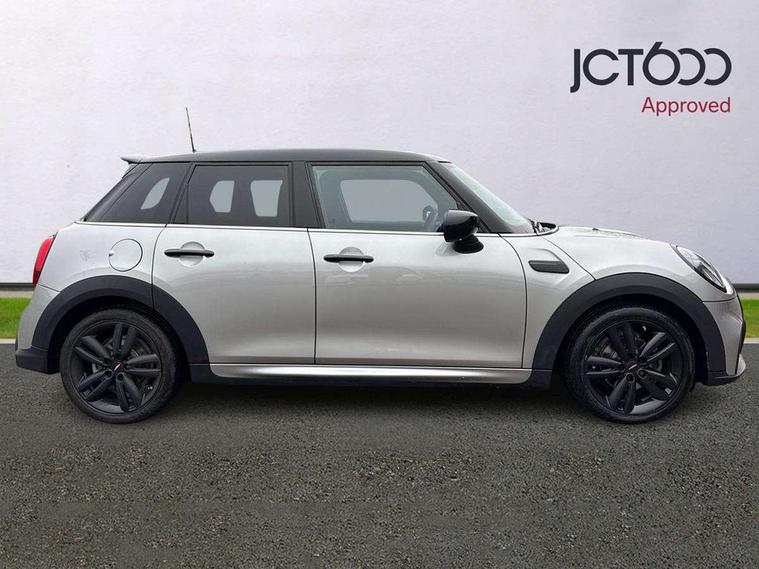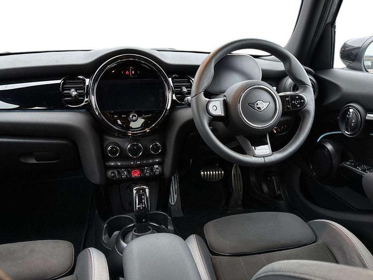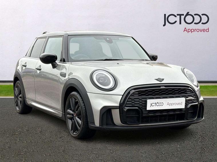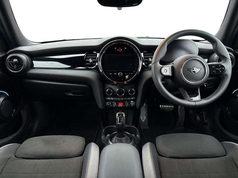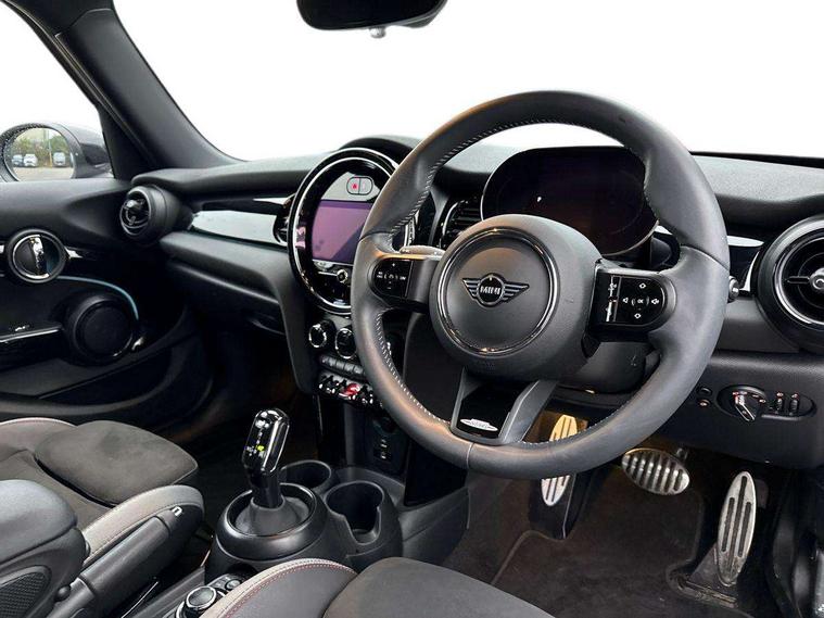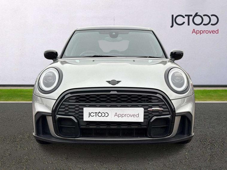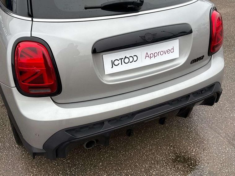 Apple CarPlay, Automatic start/stop function with brake energy recuperation, Compatible mobile phone bluetooth with audio streaming, Electro-mechanical speed dependant steering assistance, Flexible car sharing preparation, MINI Driving Modes - centre toggle switch to control driving setting (sport, mid and green), Mini E-call, MINI TeleServices, On board computer, Rear park distance control, Service interval indicator, Adaptive suspension, Double Vanos system, Fully variable valve control, Gear change indicator display, High precision injection, Performance Control, Steptronic transmission with double clutch, 8.8" touchscreen with LED ring, FM tuner and DAB digital radio, 3rd brake light, Automatic headlight activation switch, Body colour fuel filler cap, Chrome border high gloss black slats radiator grille, Dynamic brake lights, Electric front+rear windows, Exhaust tailpipe on left with chrome finisher, Heated rear window, Heated windscreen washer jets, JCW Aerodynamic kit - Front and rear bumpers with sporty JCW styling and part-painted side sills with MINI John Cooper Works door sill finishers, John Cooper Works rear spoiler, Metal door sill strips with MINI imprint, Model logo Cooper on right of tailgate, Rain sensor window wipers, Rear fog lights, Rear LED lights with union jack design, Rear side wing doors, Rear window wiper, Side scuttle panel with integrated indicator, Sun/heat protection glass, White indicator lenses, 12V Accessory socket in centre console, 3 seat bench in 2nd row, 4 lashing eyes in luggage compartment, 60/40 split folding rear seat, Anthracite headliner including grab handles and clothes hooks, Carbon black colour line - Knee roll and door armrest, Chrome interior highlights, Cupholders, Front and rear isofix with front passenger airbag deactivation, Front and rear velour floor mats, Glove compartment, Height and length steering column adjustment, Interior lighting with 12 different colours across the dashboard, underneath door bezel with illuminated laser-engraved design on central display, JCW Sport seats with integrated headrests, adjustable thigh support and John Cooper Works logo, Leatherette gearshift lever and handbrake gaiters, LED reading lights, vanity mirror lights, front foot well light and spotlight on front seats, Mechanical seat adjustment - forward/back & backrest for front seats and driver seat height adjust, Multifunction steering wheel, Single front passenger seat, Storage compartments in doors, Sunvisors with vanity mirrors, Walknappa leather steering wheel with grey seam and John Cooper Works badge on Piano Black lower steering wheel spoke, Piano black exterior pack - Mini Hatchback Cooper, 3 point seatbelts on all five seats, 6 Airbags - front, side, head and seat belt tensioners, Anti-lock braking system (ABS), Child locks on rear doors, DSC - Dynamic Stability Control, Front and rear disc brakes, Hill start assist, Single tone fanfare horn, Tyre pressure monitoring system, Alarm system with tilt sensor, monitoring doors, bonnet interior and tailgate, Electronic vehicle immobiliser, Start/stop toggle with keyless go, Piano black interior trim, Tool kit,