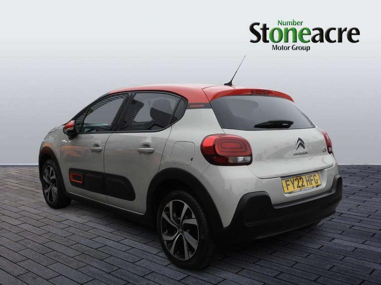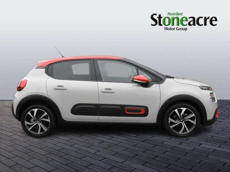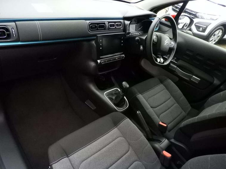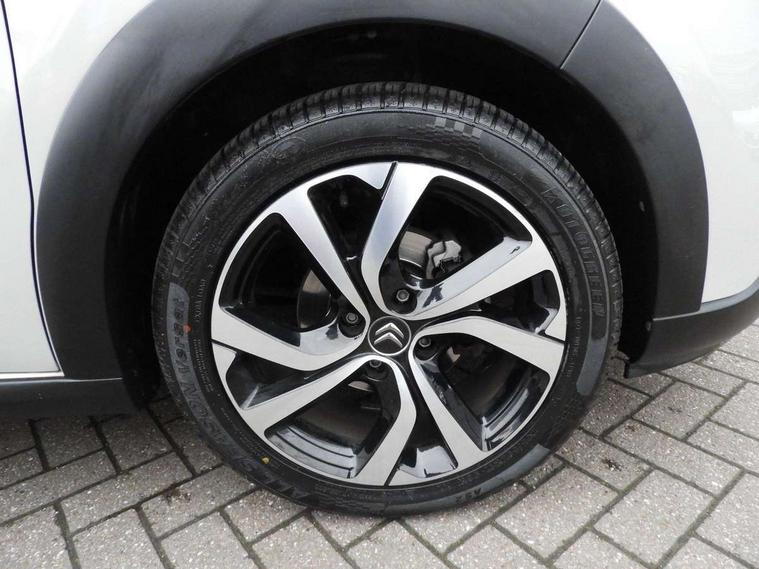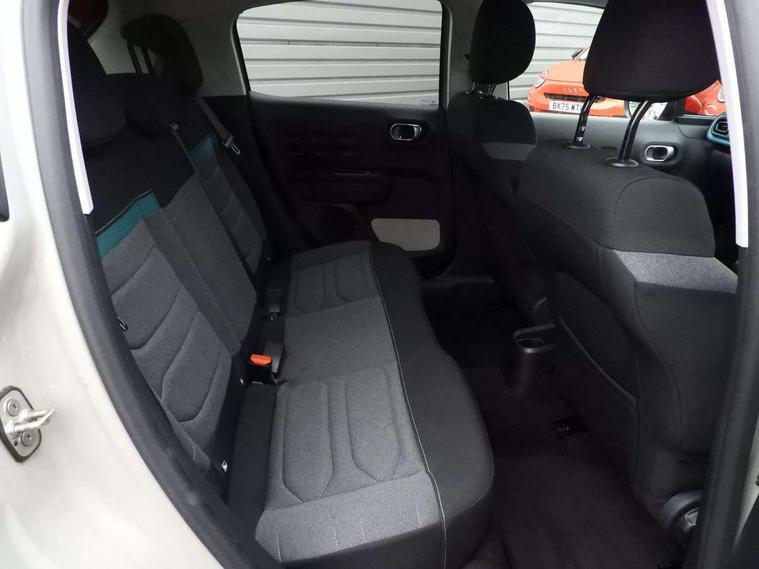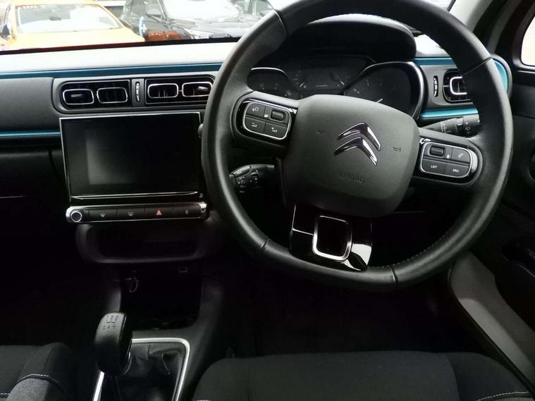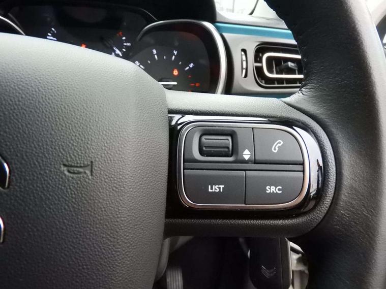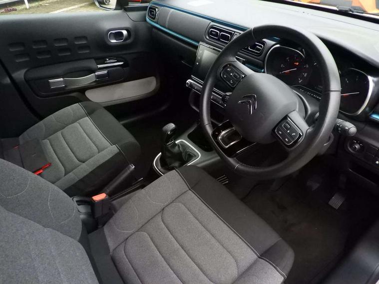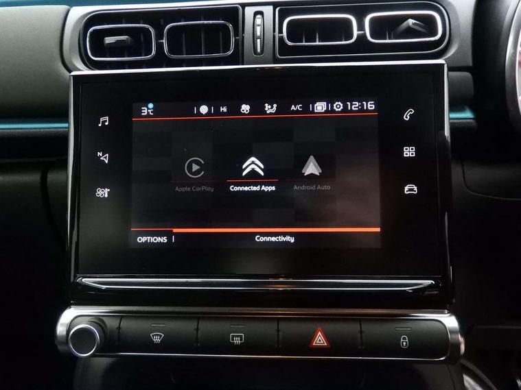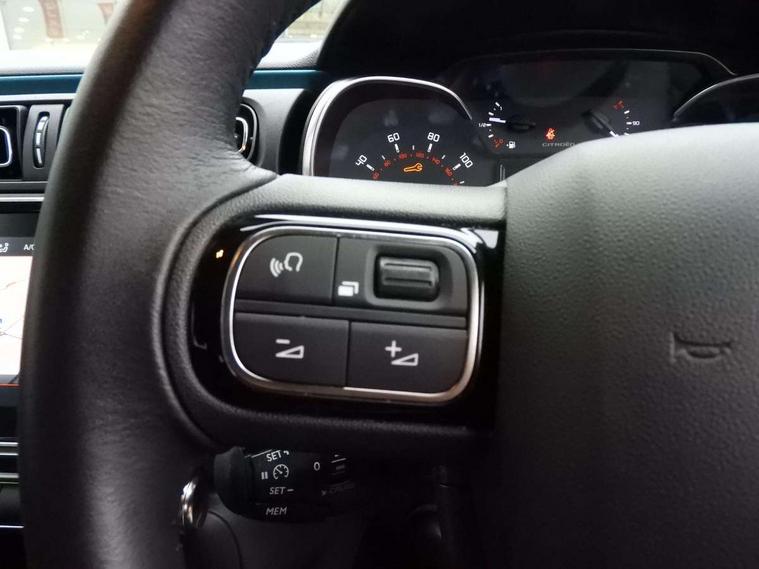 Citroen connect box emergency and assistance system, Citroen connected nav with DAB, 6 speakers, 7" captive touch screen, mirror screen includes apple carplay/android auto and bluetooth, Coffee Break Alert, Cruise control + speed limiter, eCall emergency call system, Exterior temperature display, Multi function trip computer, Reversing camera, Satin chrome surround instrument cluster with white LCD and analogue gauges, Variable assistance power steering, USB connection, 3D rear light signature, Airbump on side door panel, Auto dimming electrochrome rear view mirror, Auto headlights, Automatic activation of hazard warning lights, Body colour bumpers, Body colour door handles, Chrome decoration on front face, under chevrons and around daytime running lights, Citroen illuminated signature in LED headlights and LED daytime running lights, Dark tinted tailgate and rear side windows, Electric folding and heated door mirrors, Fog lights integrated into front bumper, Front sequential electric windows with one-touch open/close and anti-pinch system, Gloss black finish B pillar, LED Headlights, LED third brake light, Rear sequential electric windows with one-touch open/close and anti-pinch system, Rear side wing doors, Rear windscreen wiper with intermittent mode linked to vehicle speed and automatic activation when reverse gear selected, Roof colour rear view mirror caps, Variable front intermittent wipers, 1/3 to 2/3 split folding rear seat, 12V socket, 3 seat bench in 2nd row, Automatic air conditioning, Boot light, Cloth/leather effect upholstery, Driver and passenger's sun visor with courtesy mirror, Driver's central armrest, Driver's seat height adjustment, Front lighting panel with map reading lights, Front seats adjustable with forward back slide and adjustable backrest, Height adjustable front head restraints, Height/reach adjust steering wheel, ISOFIX mounting on outer rear seats with top tether and labels indicating fixing points, Leather steering wheel with gloss black + satin chrome elements and audio/telephone controls, Leather trimmed gear lever with leather effect gaiter and overstitching, Map pockets in back of driver and front passenger seats, Parcel shelf, Seatbelt unfastened on the move audible and visual alert for front and rear seats, Single front passenger seat, Storage space under touchscreen with rubber mat, Three rear headrests, Upholstered armrest in front and rear doors, Safety pack 1 - C3, Safety pack 2 - C3, Visibility pack with automatic lights - C3, ABS with Electronic brakeforce distribution and Emergency braking assistance, Driver and front passenger seatbelts with pyrotechnic pretensioners and force limiters, Driver's airbag, Electric child locks, ESP with anti skid system, Front passenger airbag, Front passenger airbag deactivation, Front side airbags + front/rear curtain airbags, Hill start assist, Manual parking brake with leather handle and chrome finish button, Mono-tone horn, Outer rear seats with pretensioners and force limiters, Three rear 3-point seatbelts, Tyre pressure monitoring system, Anti theft alarm, Automatic door and boot locking with automatic unlocking in case of impact, Central locking with locked indicator and interior one touch lock button, Immobiliser, Remote control central locking with two plip keys, 17" Vector diamond cut alloy wheels, Tyre puncture repair kit,
