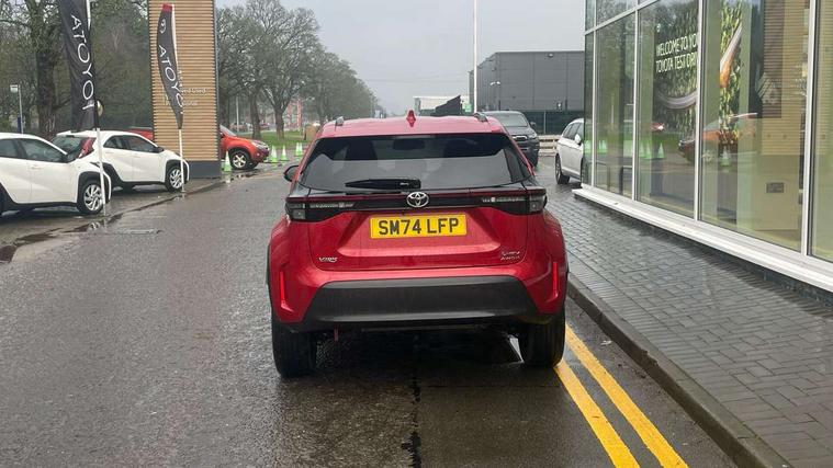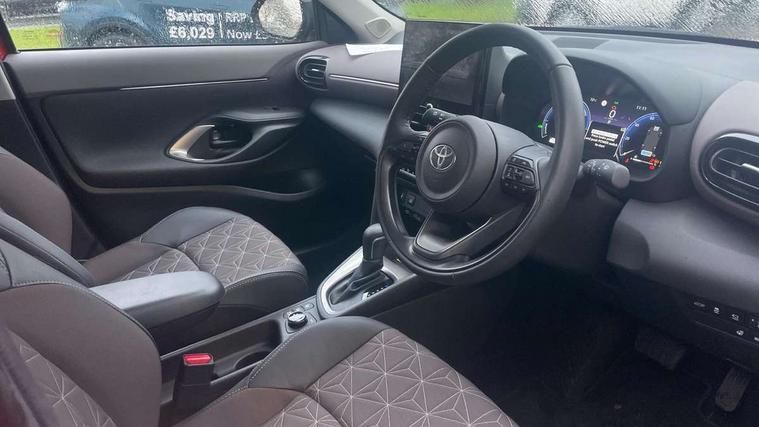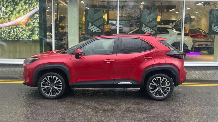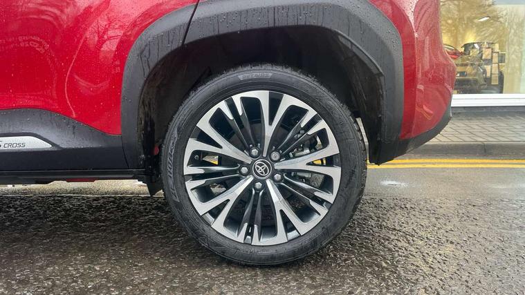 10.5" Multimedia display screen, 10.5" Toyota smart connect+ with navi multimedia system with wireless Smartphone integration incl Apple CarPlay, 360 degree panoramic view monitor, 7" Multi information display screen, Adaptive cruise control, multi info switches on steering wheel, Adjustable speed limiter, Advanced parking assist, Blind spot monitoring, Bluetooth connectivity, Color multi-information display, Digital speedometer, Digital tachometer, Drive mode selector, Driver attention alert system, Dynamic guide lines on reversing camera, eCall emergency system, Electric power steering, Emergency driving stop system, Full range intelligent adaptive cruise control, Hybrid system indicator, Intelligent front and rear parking sensors with clearance sonar and automatic braking, Intersection turn assist, Key reminder warning, Lane change assist, Lane trace assist, My T Connected services, Power tailgate, Pre-collision system enhanced with emergency steering assist, Rear cross traffic alert, Remote boot door release in cabin, Road sign assist - RSA, Safe exit assist, Telephone switch on steering wheel, Wireless Mobile Phone Charger, Rear limited slip differential (LSD) lock, Steering assisted vehicle stability control, 6 speakers, DAB Digital radio, Front USB Type-C connector, Front USB-C device charger, 3rd brake light, Acoustic windscreen glass, Anti-jam protection on power windows, Auto dimming rear view mirror, Auto high beam [AHB] with on/off switch, Auto intermittent windscreen wipers, Automatic headlights, Automatic headlights cut-off, AWD i-Badge, Black door moulding, Black lower front grille, Black protection moulding on side doors, Black roof rails, Black wheel arch mouldings, Body colour door handles, Body colour front bumper, Body colour rear bumper, Electric adjustable heated door mirrors, Follow me home headlights, Front and rear electric windows with auto up/down function, Gloss black upper front grille, Headlight cut off reminder, Indicators integrated on door mirrors, Intermittent rear wiper, Kick activated power back door, LED daytime running lights guide, LED front fog lights, LED front light guide, LED Indicators, LED projector headlights, LED rear lights with sequential indicators, Manual headlight levelling, Meshed shape upper front grille, Noise reduction layer on windscreen, Pre wiring for towing hook, Privacy glass, Rain sensor, Rear side wing doors, Rear spoiler, Rear window defogger, Shark fin antenna, 12v power outlet - front, 12V power point in boot, 2x Rear coat hooks, 3 seat bench in 2nd row, 3 spoke leather steering wheel, 40/60 split deckboard, 40:20:40 split folding rear bench seat, Adjustable rear headrests, Adjustable speed limiter switch on steering wheel, Boot light, Central armrest, Driver and front passenger personal lights, Driver and front passenger Whiplash injury Lesseing seats, Driver and passenger seatback pockets, Dual zone automatic air conditioning, Fabric door trim, Front console box, Front cup holders, Front door pockets, Front head restraints, Front sport seats, Front/rear assist grips, Gear shift indicator, Gloss black surround on gear shift console, Grey roof lining, Heated driver and passenger seats, Heated steering wheel, Height adjustable driver's seat, Height adjustable front passenger seat, Hooks for luggage holding belts, ISOFIX child restraint system, Lane departure alert switch on steering control, Leather gearshift, LED centre room light, Light on driver and passenger sun visor, Manual telescopic and tilting steering wheel, Mirror on driver and passenger sun visor, Nanoe-X air purifier, Partial synthetic leather upholstery, Pollen air filter, Power adjustable lumbar support on driver seat, Rear cup holders, Rear door pockets, Rear head restraints, Remote air-conditioning system, Single compartment glovebox, Single front passenger seat, Soft tonneau cover, Storage box under boot floor, Voice recognition switch on steering wheel, White ambient lighting in centre console, White ambient lighting in footwell, White ambient lighting on front doors, Yaris cross floor mats, Tech pack - Yaris Cross, 3x3 point rear seat belts, ABS+EBD+Brake assist, Downhill Assist Control (DAC), Driver and passenger central airbags, Driver and passenger front airbags, Driver and passenger side airbags, Electronic parking brake, Emergency brake light system (EBS), Front seat belt reminder, Hill start assist control (HAC), Passenger airbag on/off switch, Pre-collision system with pedestrian and cyclist detection, Rear door child safety locks, Rear passenger side airbags, Rear seat belt reminder, Traction control, Tyre pressure warning system, Immobiliser, Intrusion alarm, Keyless smart entry with push button start, Power door locks, Power passenger window lock, Remote door lock, Gloss black side air vent surrounds, Tyre repair kit,