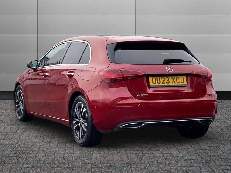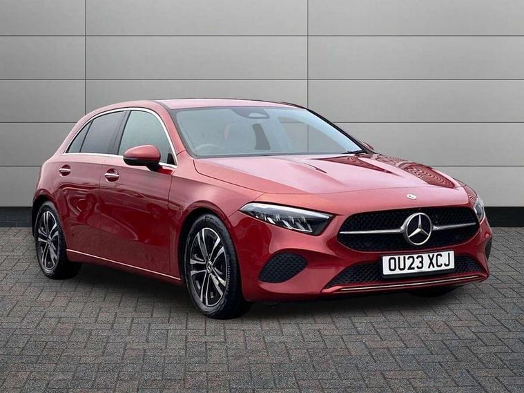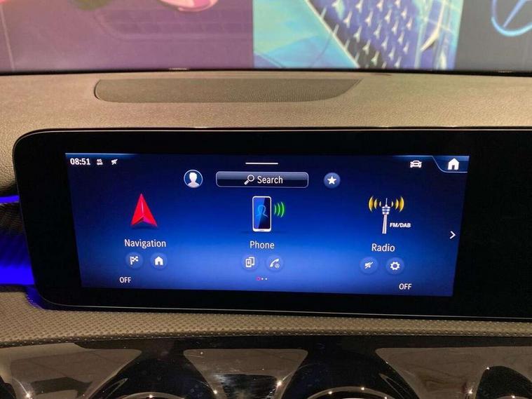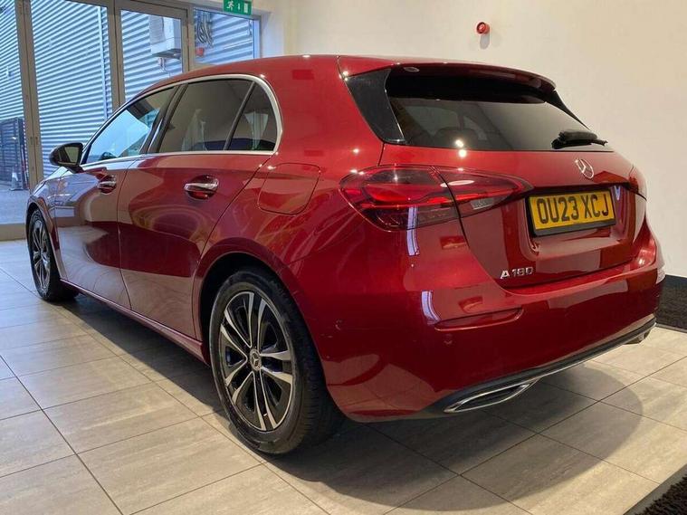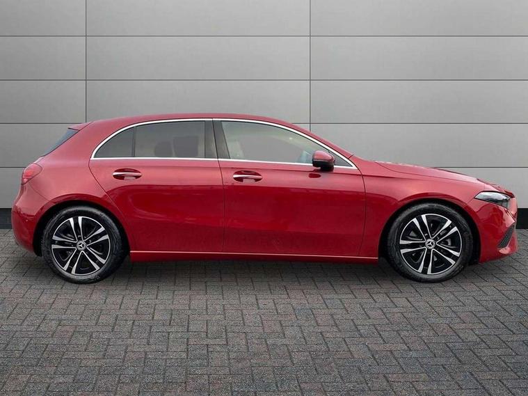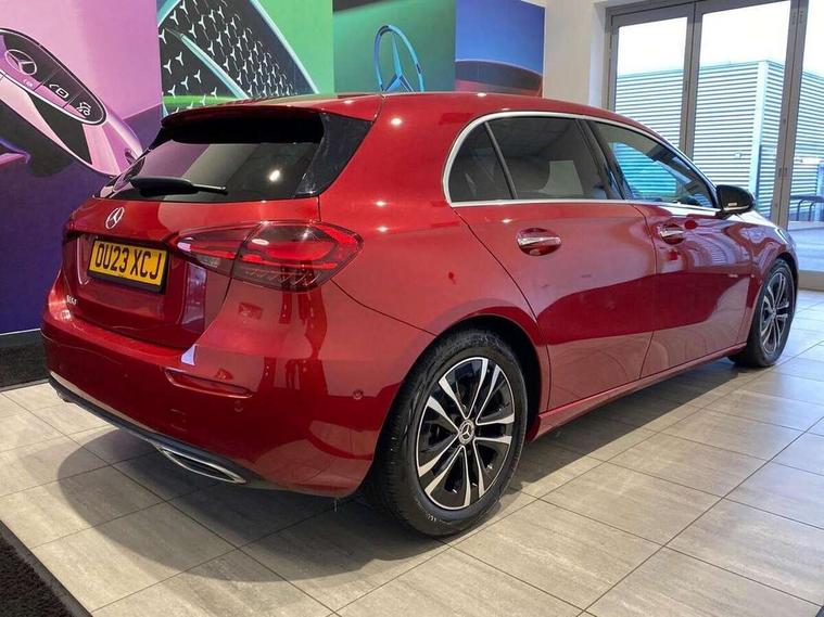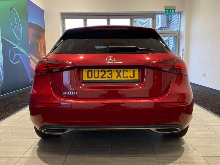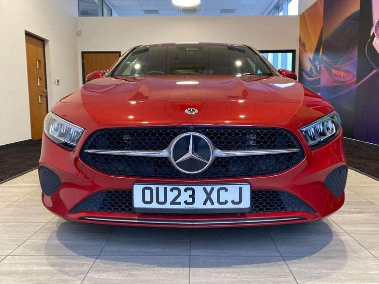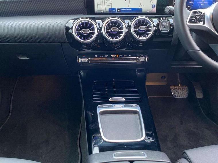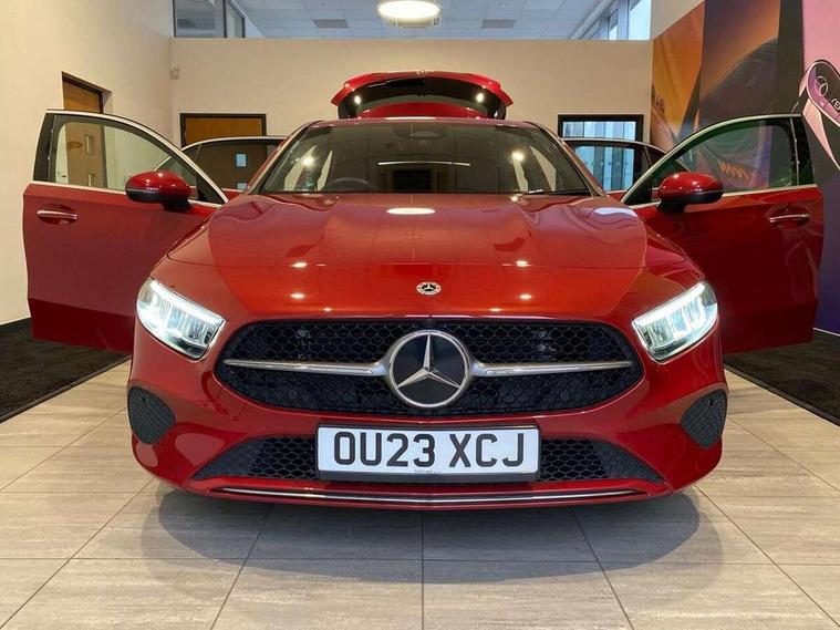 10.25 inch touchscreen central media display, 10.25" Digital instrument cluster display screen, Attention assist, Brake pad wear indicator warning light, Car wash mode, Cruise control + speed limiter, Direct steering, Direction indicators with lane change function, Dual bluetooth interfaces, DYNAMIC SELECT with a choice of driving modes (ECO, Comfort, Sport and Individual), Easy pack tailgate hands-free access, ECO start/stop function, Engine start/stop button, Fingerprint scanner, Fluid level warning indicator for fuel, oil, coolant and washer fluid, Hard-disk navigation, Hey Mercedes Voice activation, Lamp failure indicator, Lane keeping system, Mercedes me connect including emergency call system, accident recovery, breakdown and maintenance management, Mercedes me remote services, Outside temperature gauge, Owners manual in English, Pre-installation of private car share, Preinstallation for Mercedes Benz link, Remote boot closing, Service indicator (ASSYST), Smartphone integration with Apple CarPlay and Android auto, Speed limit assist, Speed sensitive power steering, Trip computer in multifunction display with current consumption indicator, Wireless charging, Lowered comfort suspension, DAB Digital radio, MBUX multimedia system, Mercedes Benz sound system (100 W) with 6 speakers, 4 Electric Front and Rear windows, Adaptive brake lights, Body colour bumpers, Body colour door handles with chrome inserts, Body colour side skirt, Body coloured door mirrors, Chrome beltline strips, Diamond radiator grille with pins in fine star pattern, Electric adjustable and heated door mirrors with integrated LED side indicators, Exhaust system with 2 visible tailpipe trim elements and rear apron, Headlamp assist automatic headlamp activation, Heat insulating dark tinted rear and rear side windows, Heated glass rear windscreen + timer control, LED High level third brake light, LED High Performance headlamps including integral LED daytime running lamps and adaptive highbeam assist, LED tail lamp, Privacy glass, Radio aerial, Rain sensing windscreen wipers with two sensitivity settings, Rear fog lights, Rear side wing doors, Rear windscreen wiper, Window line trim strip in chrome, 3 seat bench in 2nd row, 3 Spoke leather multi function steering wheel, 4 way lumbar support, 40:20:40 split folding rear seats, Air conditioning - One zone THERMATIC automatic climate control with automatically controlled air distribution, Artico man-made leather upholstery, Automatic child seat recognition sensor, Black air vents with surround in silver chrome, Black roof lining, Front centre armrest with stowage, Front comfort seats with adjustable head restraints, Front door sills with Mercedes Benz lettering, Front seat backs luggage nets, Gearshift paddles on steering wheel, Heated front seats, Height/reach adjustable steering column, Interior lighting - 64 colour Ambient lighting, Interior mirror with reading lamps in black and frameless, Rear armrest with 2 cupholders, Rear head restraints, Seat occupancy sensor for front passenger seat, Single front passenger seat, Stowage compartment in centre console with retractable cover, Sunvisors with illuminated vanity mirrors, Twin front cupholders, Velour floor mats, Light and sight pack - A Class, Mirror package - A Class, Parking pack - A Class, Seat comfort pack - A Class, USB pack plus - A Class, 3 rear 3 point seatbelts, ABS with Brake Assist, Active bonnet, Active brake assist includes forward collision warning system with autonomous braking, Adaptive brake assist with hold function and hill start assist, Black seatbelts, Bonnet with power domes, Childproof locks manually operated for rear doors and electrically operated for rear power windows, Crash responsive emergency lighting, Driver and passenger head and side airbags, Drivers knee airbag, Dual stage driver/passenger airbags, Electronic parking brake, ESP curve dynamic assist, ESP with ASR, Front and rear seatbelt reminder, ISOFIX and top tether child seat fixing points in two outer rear seats, Tyre pressure monitoring system, Warning triangle and first aid kit, Window airbags, Alarm system/interior protection/immobiliser, Guard 360 degree vehicle protection, Keyless entry lock/unlock, Keyless Go, Remote central locking and crash sensor with emergency opening function, Dark carbon fibre interior trim, 17" 5 spoke light alloy wheels, aerodynamically optimised, painted in black with high sheen finish, Summer tyres, Tirefit sealant kit,