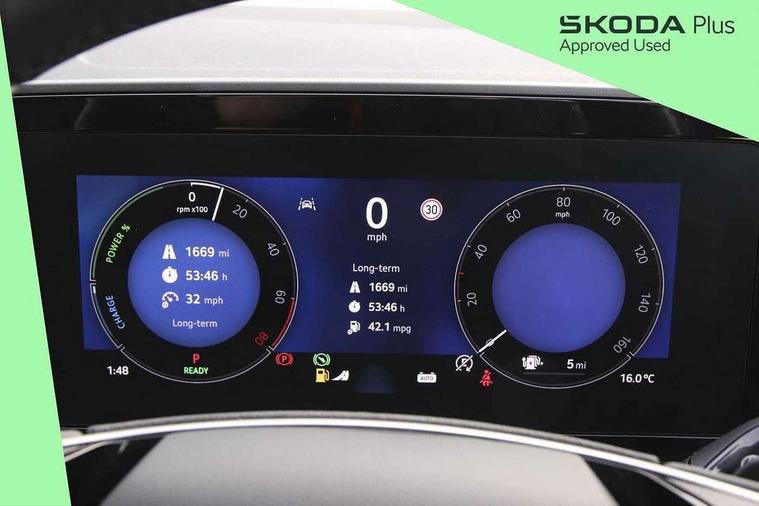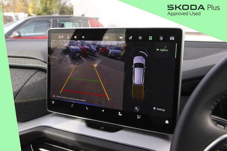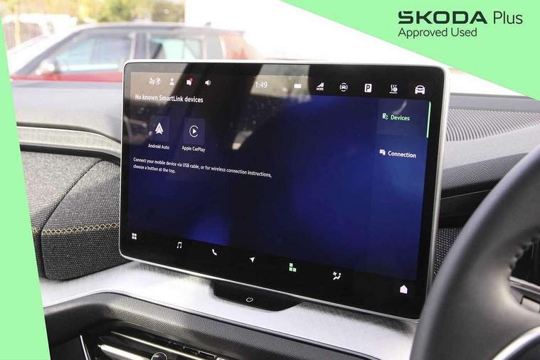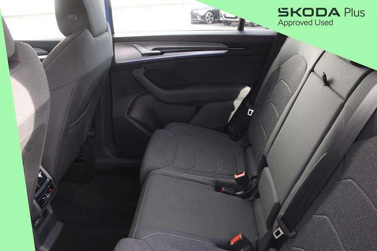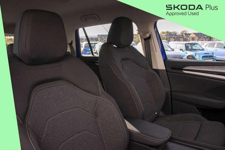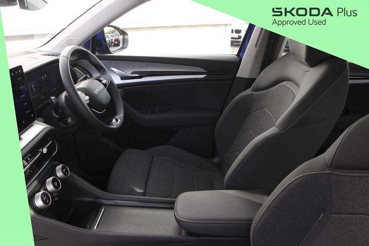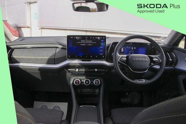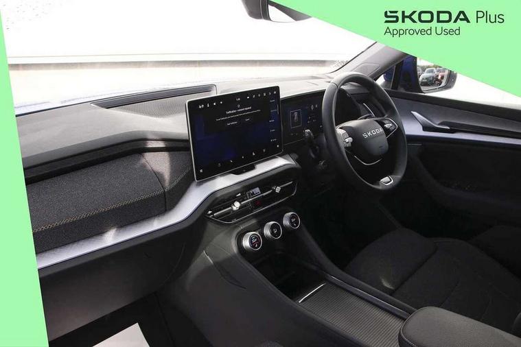 13" satellite navigation touchscreen display, Blind spot detection with door exit warning, Bluetooth system, ChatGPT functionality, Driver alert - Fatigue and drowsiness monitor, Dry display cleaner, Emergency call, Front and rear parking sensors, Front cross traffic assist, Lane assist, PAS, Rear traffic assist, Rear view camera, Tailgate unlocking from outside, Traffic sign recognition, USB C Port x 2 in front centre console, Virtual Cockpit - 10.25" digital display, Voice control system, Wireless charging for two smartphones (15W) with cooling function, Wireless SmartLink for Apple CarPlay and Android Auto, 32A charging cable, Stop/start function, 2x USB-C in the rear, 8 Speakers, DAB Digital radio, Aero front windscreen wipers with intermittent function, All weather light, Auto dimming rear view mirror, Black wheel arch surrounds, Body colour bumpers, Body colour door mirrors and handles, Cornering light and poor weather light, Electric folding /adjustable/separted heated/folding door mirrors, auto dimming with boarding sports and memory function, Electric front and rear windows, Exterior black decorative trims, Heat insulating glass in windshield, Heated rear window, Ice scraper in fuel tank cap, Invisible tailpipe, LED daytime running lights, LED front fog lamps, LED Headlights, LED rear fog light, LED rear lights, LED third brake light in rear spoiler, Light assistant with automatic headlight control and coming home feature, Logo projection in door mirrors, Rear roof spoiler, Rear side wing doors, Rear window wiper, Safety reflectors on front and rear doors, Unique dark chrome design logo on alloy wheels, Window control switches with black trim, Windscreen wipers with rain sensor, Without engine designation, 1.5l bottle holder points in all door, 1x centre rear reading light, 3 configurable smart dials with 32mm coloured display, 3 seat bench in 2nd row, 4 foldable roof handles with rear coat hooks, Ambient interior lighting - Dashboard, front-door stowage compartments, front and rear door panels and footwell lighting, Automatic gear selector on steering column, Chrome interior door handles, Driver/front passenger reading lights, Fabric headlining, Fixed bench 40:60:40 split folding backrests, Front and rear floor mats, Front centre armrest with jumbo box storage compartment, cup holder and 12V socket, Height adjustable front headrests, Isofix child seat fittings in outer rear seats and front passenger with top tether, iV badging on boot, Manual height adjustment for front passenger seats and thigh support extender, Manual lumbar support for front passenger seat, Manually adjustable steering column, Pollen filter, Rear centre armrest with cupholders, Rear seat boot backrest release, Single front passenger seat, Skoda lettering on steering wheel, Storage pocket including mobile phone pockets on the backs of the front seats, Sunvisors with illuminated vanity mirrors, Three rear height adjustable headrests, Ticket holder on A Pillar, Tri zone climate control, Umbrella in door panel x1 made from sustainable materials, Upper and lower glovebox with card holder and coin compartment, USB C port by rear view mirror for charging only (15W), Auto door release and activation of warning lights in the event of an accident, Driver and front passenger airbag with knee airbag and front passenger airbag deactivation, Electric child locks, Electronic parking brake, ESC (incl. ABS+EMD+MSR+ASR+EDL+HBA+DSR+RBS+ESBS+MCB+TSA+XDS), Front assist with braking reaction to vehicles, pedestrians and cyclists, Front disc brakes, Fuel cut off safety device, Height adjustable front 3 point seatbelts + pretensioners, Hill hold assist, Junction assist with automatic emergency braking, Rear disc brakes, Safety vest holder in door, Seat belt reminder for all seats, Three point rear seat belts, Two tone horn, Tyre pressure monitor, Alarm with interior monitoring and tilt sensor with safe function, Anti-theft wheel bolts, Immobiliser, Remote central locking with 2 keys, Breakdown kit, Tool kit,