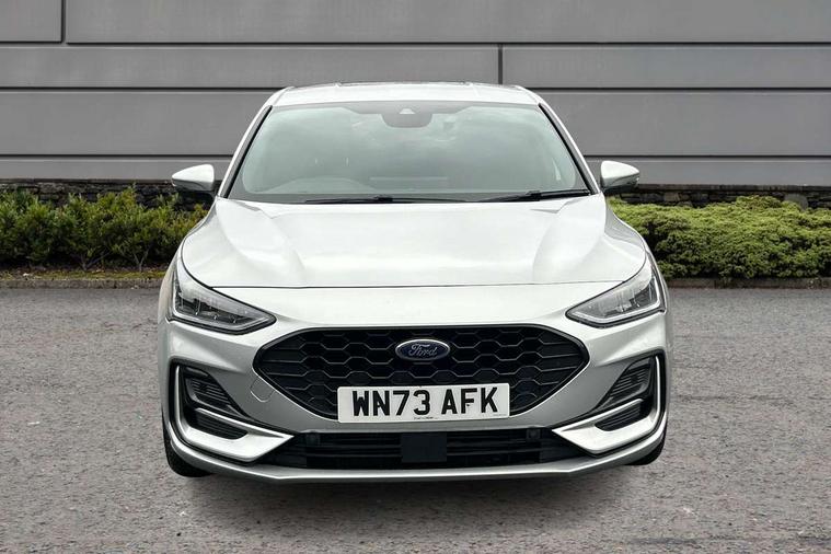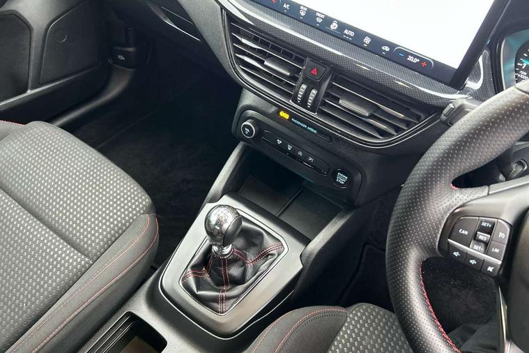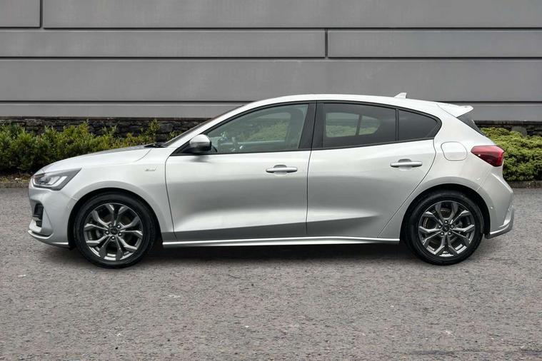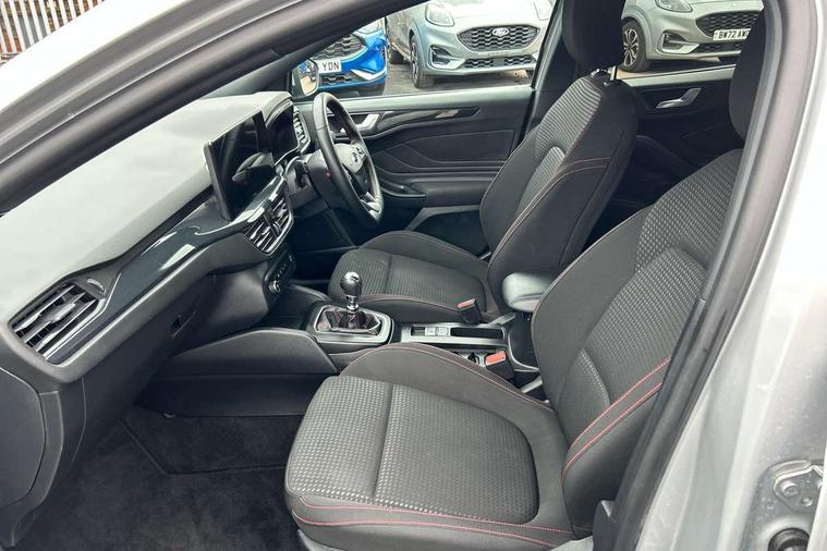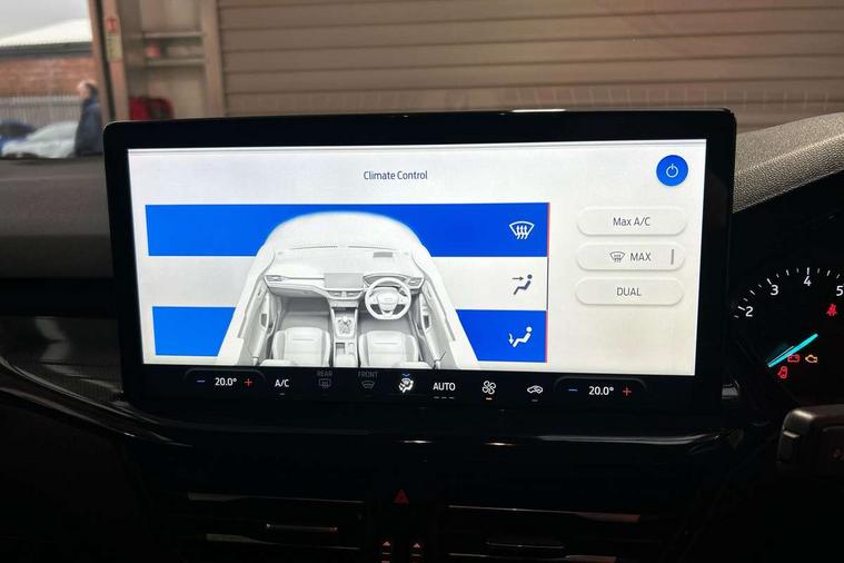 4.2" Colour TFT Ice blue illumination analogue cluster with trip computer, Bluetooth system, Digital clock, Easy fuel capless refuelling system, Eco mode, Ford SYNC 4 Navigation with 13.2'' touchscreen, DAB radio, Emergency Assistance, Apple Carplay & Android Auto, 6 speakers & FordPass Connect, Lane keeping system - lane keeping alert and lane keeping aid, PAS, Rev counter, Selectable drive mode, Service interval indicator, Sports tuned suspension, 2 USB ports, Auto headlamps (on/off), Body coloured door handles, Electrically operated front and rear windows with one touch opening and closing, Electrically operated heated power fold door mirrors with puddle lamp with side indicators, Front variable intermittent wipers with electric wash, Full fixed LED headlamps, Heated rear window, LED daytime running lamp, LED rear lamps, LED third brake light, Polished twin tailpipe, Privacy glass, Quickclear heated windscreen, Rain sensor, Rear side wing doors, Tailgate wash/wipe, Unique ST-Line grille, full bodystyling kit, and large body coloured rear spoiler, 3 rear headrests, 3 seat bench in 2nd row, Cloth upholstery, Dual zone electronic air temperature control, Height adjustable front headrests, Isofix child seat preparation, Reach + rake adjustable steering column, Single front passenger seat, 3x3 point rear seatbelts, ABS+Electronic Brake force Distribution, Auto hold function, Driver airbag, EDL traction control, Electronic parking brake, Electronic stability control, Front and rear seatbelt reminder, Front inertia reel height adjustable seatbelts with pre-tensioners, Front passenger airbag, Front side airbags, Passenger airbag deactivate switch, Post collision braking, Pre collision assist with autonomous emergency braking and pedestrian/cyclist detection, Remote/power child rear door locks, Side curtain airbags, Three rear inertia reel lap/diagonal seatbelts, Tyre pressure monitoring system, Keyless entry and keyless start, MyKey system, Remote central locking & engine immobiliser, Thatcham alarm with power door dead locks, 17" 5 spoke Rock mettalic finish alloy wheels with mini spare wheel,