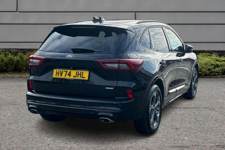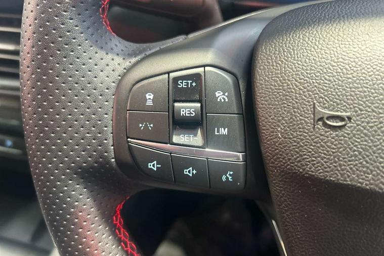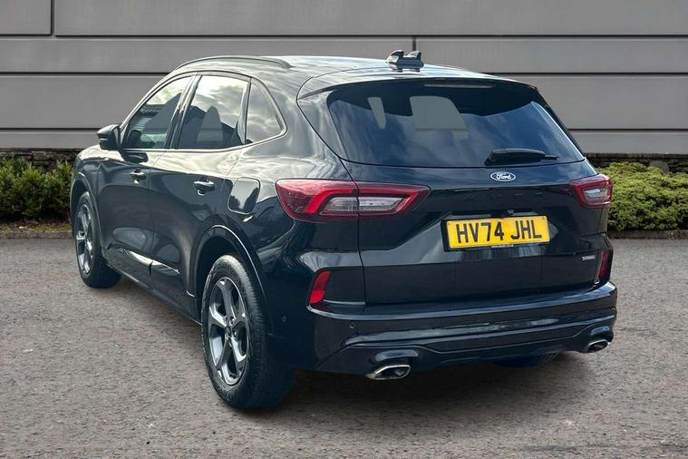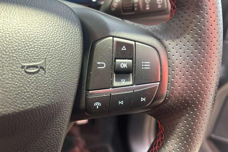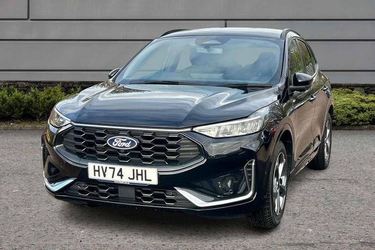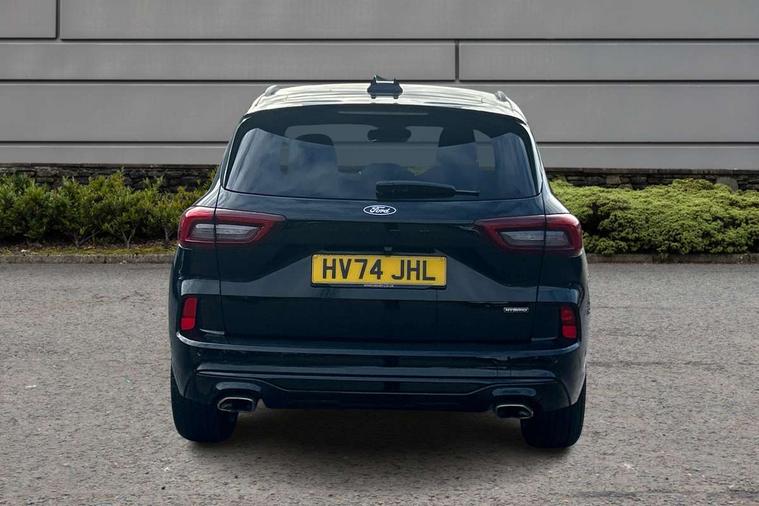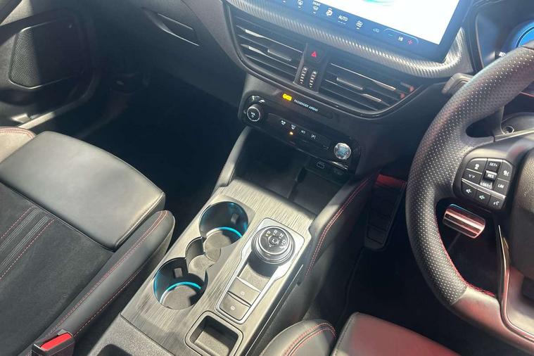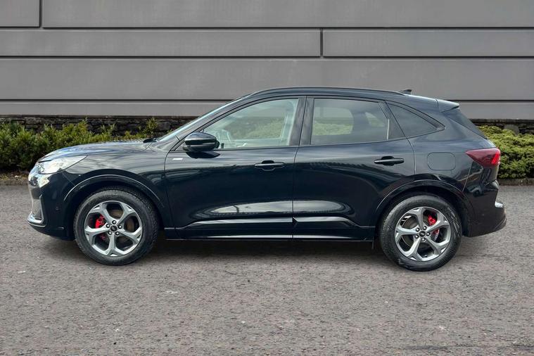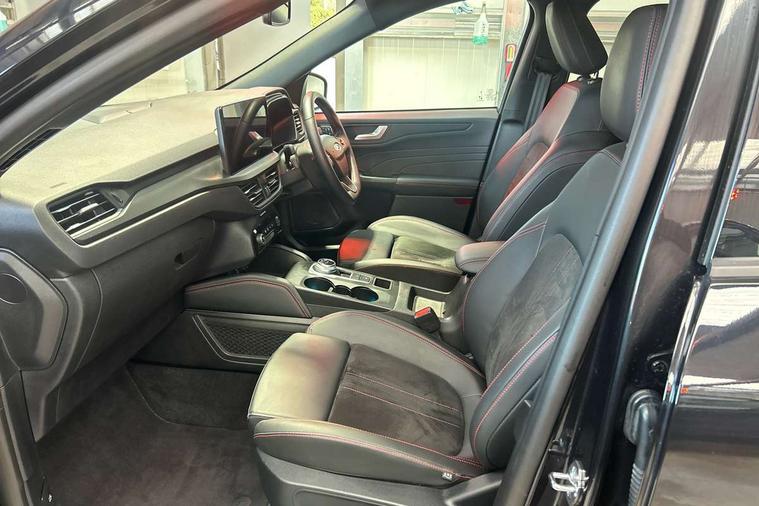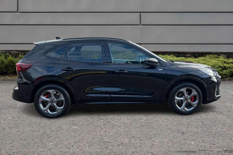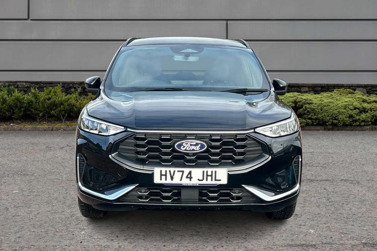 12.3" digital colour instrument cluster, 360 degree view camera, e-Call (emergency call), Ford easy fuel, Ford SYNC 4 Navigation with 13" touchscreen, DAB radio, emergency assistance, Andriod Auto/Apple CarPlay, 5G modem & Ford Pass connect, Front and rear parking sensors, Hands free power tailgate, Lane centering assist, Lane keeping aid with lane departure warning, Power assist steering, Selectable drive modes, Service interval indicator, Sports suspension, Twist beam rear suspension, B&O premium audio system with 10 speakers, subwoofer and 2 USB ports, Auto headlamps with high and low beam, Black roof rails, Body colour bumpers, Front LED fog lamps, Large rear spoiler, LED daytime running lights, LED rear lights, Pop out door edge protectors, Power front/rear windows with global close, Power heated folding door mirrors with puddle lights, memory function and camera, Quickclear heated windscreen, Rain sensing wipers, Rear privacy glass, Rear side wing doors, Rear wiper, ST-Line body styling kit, Third brake light, 12 way ergonomic power adjust driver's seat with memory (AGR certified), 12 way ergonomic power adjust passenger seat (AGR certified), 2nd row sliding seats, Electronic automatic temperature control (EATC), Front and rear head restraints, Partial premium touch sensico upholstery, Rear centre head restraint, Single front passenger seat, Sports seats, Driver assistance pack with intelligent adaptive cruise control - Kuga FHEV/PHEV, 3x3 point rear seatbelts, Airbags - front driver/passenger, front and rear curtain, Drivers knee airbag, Dynamic brake support, Electronic stability control (ESC) and ABS, Evasive steering assist, Ford MyKey Gen 2 safety system, Manual child proof rear door locks, Pre collision assist with autonomous emergency braking, Rear seat Occupancy alert, Red brake calipers, Tyre pressure monitoring system, Engine immobiliser, Keyless entry and Ford power start button (Keyless start), Locking wheel nuts, Remote powered central double locking doors, Thatcham category 1 alarm,