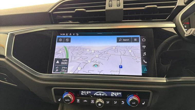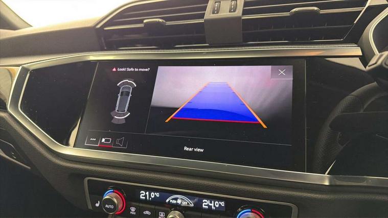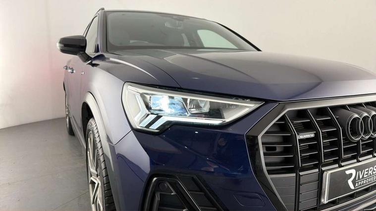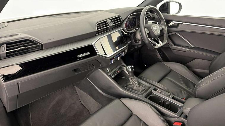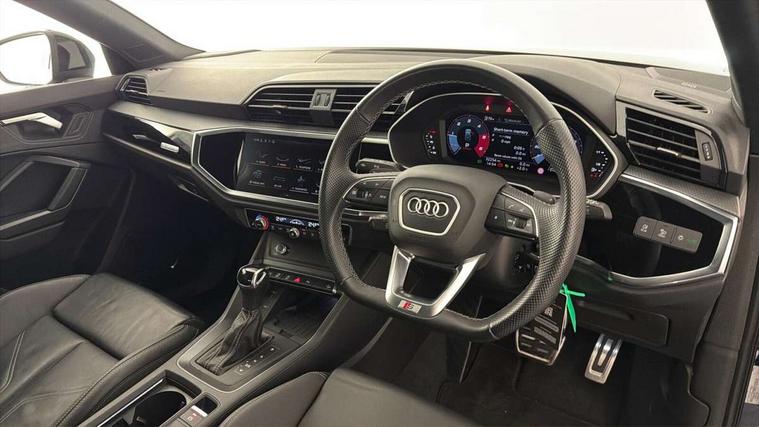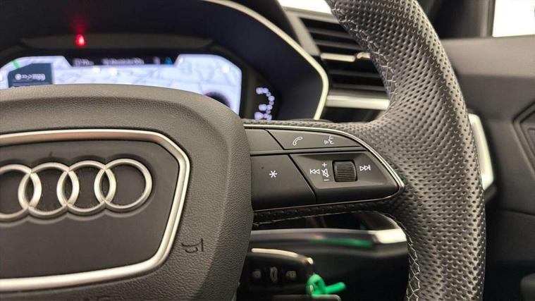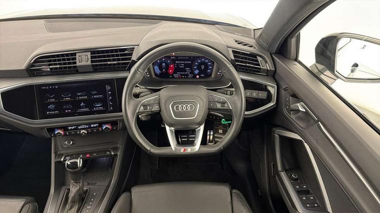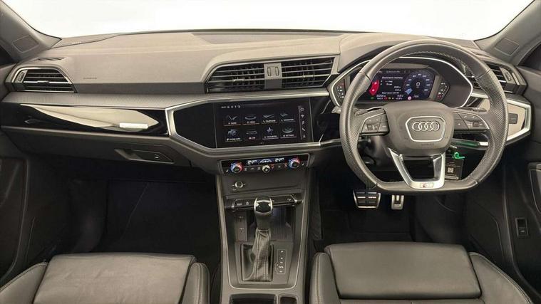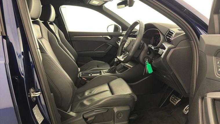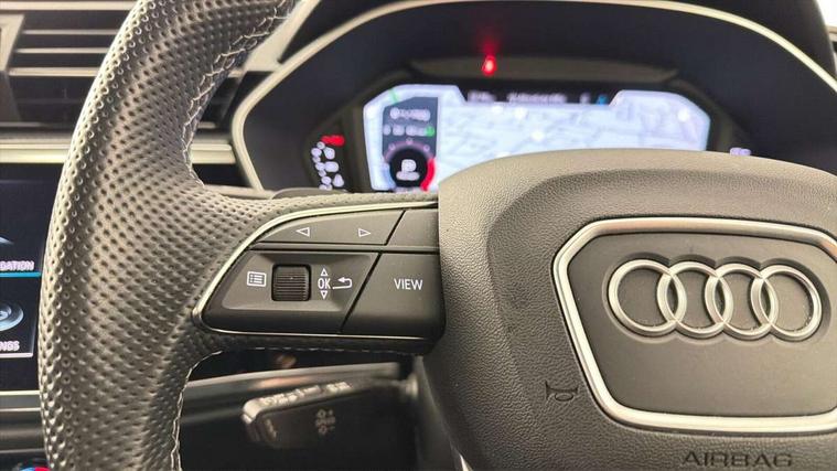 Amazon alexa Integration, Audi drive select, Audi lane departure warning, Audi smartphone interface includes wireless Apple carplay/Android Auto, Audi Virtual Cockpit - 10.25" display, Bluetooth interface, Camera based traffic sign recognition, Legal emergency call, MMI Navigation Plus with high resolution 10.1 inch touchscreen colour display, Power operated tailgate, Progressive steering, Service interval indicator, Start stop system with recuperation, Voice control system with natural language interaction, Diesel particulate filter, Sports suspension, 2 USB-C ports with charge and data functions, 6 passive loudspeakers, DAB digital radio module, Acoustic windscreen, Auto dimming frameless rear view mirror, Black roof rails, Electrically folding, adjustable and heated door mirrors with integrated LED side indicators and kerb view function for passenger side, Front and rear electric windows, Front fog lights, Grille vertical bars in aluminium silver/Matt, High gloss black finish B and C pillars, LED Dynamic rear indicators, LED headlights with LED daytime running lights, LED rear lights, LED third brake light, Privacy glass dark tinted rear and rear-side windows (from B-pillar backwards), Rain and light sensors, Rear diffuser grille in grained matt black, Rear diffuser strip in matt anthracite black, Rear side wing doors, Rear wiper, S line bumpers in contrasting Manhattan grey, Variable front intermittent wipers, 12V socket in rear centre console, 3 seat bench in 2nd row, 40:20:40 folding with manual adjustment for 60:40 forwards/backwards position and backrest angle, Adjustable rear seat bench/backrest with centre armrest and cupholder, Black cloth headlining, Dual zone electronic climate control, Front and rear black floor mats with contrast stitching in rock grey, Front and rear headrests, Front and rear roof module including reading lights, Front centre armrest, Glove compartment lighting, Height and reach adjustable steering wheel, Illuminated door sill trims with S logo, ISOFIX child seat mounting for front passenger with airbag deactivation and outer rear seat including top tether attachment point for outer rear seats, Luggage compartment light, Manual front seats with height adjustment, Perforated leather gearknob, Single front passenger seat, Stainless steel luggage compartment sill finisher, Stainless steel pedals, Ambient lighting pack - Q3, Black styling pack - Q3, Non smoking pack - Q3, 3x3 point rear seatbelts, 6 airbags - Driver, front passenger, curtain and side windows, Audi pre-sense front with pedestrain and cyclist recognition, Electrically operated child locks on rear doors, Electromechanical parking brake, Electronic stabilisation control including ABS, ASR and EDL, Front seatbelt reminder, Hill descent control, Hill hold assist, Pre sense basic, Seatbelt monitoring, Tyre pressure warning, Warning triangle and first aid kit, Anti theft alarm, Anti theft wheel bolts, Immobiliser, Remote central locking, Aluminium look interior elements, Detail dashboard around MMI touch colour display in glass look, black with surround in aluminium look, Leatherette door armrest, Piano black inlay, 19" 5 twin arm design diamond cut audi sport alloy wheels in matt grey look,