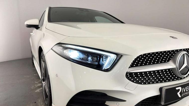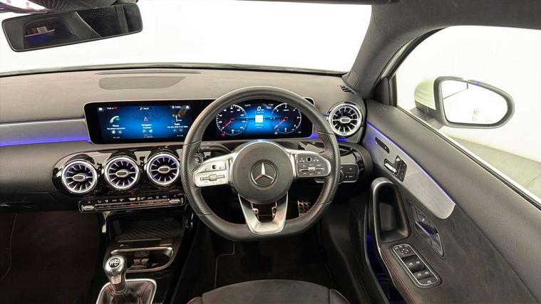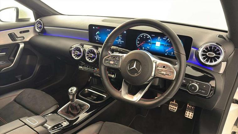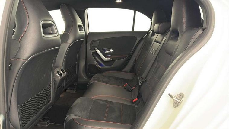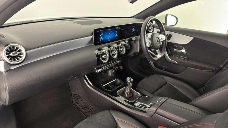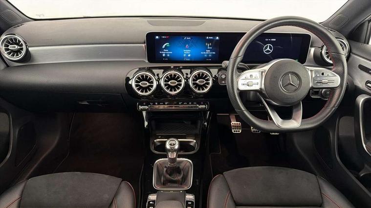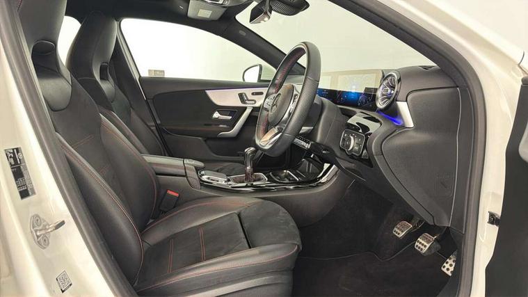 10.25" Digital instrument cluster display screen, 180 degree rear view camera with parking guidelines, Active lane keep assist, Active park assist with parktronic system including front and rear parking sensors, Attention assist, Brake pad wear indicator warning light, Cruise control + speed limiter, Direct steering, Dual bluetooth interfaces, DYNAMIC SELECT with a choice of driving modes (ECO, Comfort, Sport and Individual), ECO start/stop function, Fluid level warning indicator for fuel, oil, coolant and washer fluid, Hard-disk navigation, Hey Mercedes Voice activation, Lamp failure indicator, Mercedes me connect including emergency call system, accident recovery, breakdown and maintenance management, Outside temperature gauge, Owners manual in English, Radio aerial integrated into roof spoiler, Service indicator (ASSYST), Speed sensitive power steering, Trip computer, Lowered comfort suspension, 2 USB ports (type C) in rear stowage compartment and one in front of center console, DAB Digital radio, MBUX multimedia system with DAB digital radio and touchpad including satellite navigation, Mercedes-Benz advanced sound system - 225W, 4 Electric Front and Rear windows, Adaptive brake lights, AMG bodystyling - Front apron with splitter in chrome, rear apron with chrome trim and chrome visible trim elements in tailpipe, Body colour bumpers, Body colour door handles, Body colour side skirt, Body coloured door mirrors, Chrome beltline trim, Diamond radiator grille with chrome pins and silver louvre + chrome insert, Electric adjustable and heated door mirrors with integrated LED side indicators, Exhaust system - Twin visible tailpipes in polished stainless steel, Headlamp assist automatic headlamp activation, Heated glass rear windscreen + timer control, Illuminated front door sill panels with Mercedes-Benz lettering, LED tail lamp, LED third brake light, Multibeam LED with adaptive highbeam assist plus, Panoramic sliding sunroof, Privacy glass, Rain sensing windscreen wipers with two sensitivity settings, Rear fog lights, Rear wiper, Window line trim strip in chrome, 3 Spoke flat bottom leather multi function steering wheel with perforated leather in grip area, 40:20:40 split folding rear seats, Artico man-made leather/Microfibre Dinamica upholstery with red contrast stitching, Auto Mercedes-Benz child seat recognition sensor, Black air vents with surround in silver chrome, Black roof lining, Brushed stainless steel sports pedals with rubber studs, Controller on centre console with chrome surround, Electrically adjustable front memory seats including lumbar support, Floor mats with stitched edging and AMG lettering, Front centre armrest with storage compartment, Front seat backs luggage nets, Front seat cushion length adjustment, Heated front seats, Height/reach adjustable steering column, Interior lighting - 64 colour Ambient lighting, Rear armrest with 2 cupholders, Rear head restraints, Seat occupancy sensor for front passenger seat, Spectacles compartment for driver, Sports seats with integrated headrests, Sunvisors with illuminated vanity mirrors, Touchpad on center console, Twin front cupholders, Two zone thermotronic luxury automatic climate control, Light and sight pack - A Class Premium/Premium Plus, Mirror package - A Class, Seat comfort pack - A Class, 3 rear 3 point seatbelts, ABS with Brake Assist, Active bonnet, Active brake assist includes forward collision warning system with autonomous braking, Adaptive brake assist with hold function and hill start assist, Black seatbelts, Childproof locks manually operated for rear doors and electrically operated for rear power windows, Crash responsive emergency lighting, Driver and passenger head and side airbags, Drivers knee airbag, Dual stage driver/passenger airbags, Electronic parking brake, ESP curve dynamic assist, ESP with ASR, Front and rear seatbelt reminder, Front brake callipers with Mercedes Benz lettering, ISOFIX and top tether child seat fixing points in two outer rear seats, Tyre pressure monitoring system, Warning triangle and first aid kit, Window airbags, Alarm system/interior protection/immobiliser, Keyless entry lock/unlock, Keyless Go, Remote central locking and crash sensor with emergency opening function, 18" AMG 5 twin spoke light alloy wheels in titanium grey with highsheen finish, Summer tyres, Tirefit sealant kit,