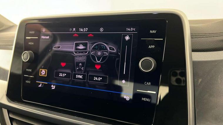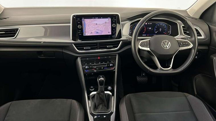10.25" Digital cockpit pro, Bluetooth mobile phone interface, Driver alert system with fatigue detection, Driver tips and journey analysis, Emergency call service, Lane keeping system Lane Assist, Modified key software - reduce switch off time for key status change to Long no motion, Online services, Park assist including front and rear parking sensors, Service interval indicator, Tailgate/trunk lid release from outside, Think blue trainer driver tips and journey analysis, Warning sound and light for front seatbelts unfastened, Wireless app connect, Battery regeneration during braking, Start/stop function with battery regeneration, Diversity antenna for FM reception, Music playback - MP3, WMA and AAC files, Premium USB cable in choice of either Apple or Android smartphone compatibility, SD card slot, Simultaneous pairing of 2 compatible mobile devices, Title and cover art display, We Connect and We Connect Plus functionality, 3rd brake light, Auto dimming interior rear view mirror, Automatic hazard lights activation under emergency braking, Automatic headlight control with LED separate daytime running lights with coming/leaving home function, Body colour sports bumpers with silver metallic underbody fascia, Dynamic headlight range control with self adjusting whilst driving, Extended roof spoiler, Exterior mirrors aspherical on driver side, convex on front passenger side, External USB type C socket and charging sockets, Front windscreen wiper with intermittent wipe and 4 position delay, Heated rear window, LED rear combination lamps, LED rear number plate lights, LED tail lamp rear comination lamps, Light mode for poor weather, rain, fog or snow, Power windows with comfort operation and circuit breaker, Rain sensor, Rear exhaust tailpipe, Rear fog light on one side and reversing lights on both sides, Rear side wing doors, Rear wash/wipe with intermittent wipe setting, Remote electrically foldable door mirrors, puddle lights and reverse activated passenger's door mirror, 12V power socket in centre console, 3 rear head restraints, 3 seat bench in 2nd row, 4 load lashing points in luggage compartment, Air care climatronic air conditoning system with active combination filter and 2-zone temperature control, Chrome plated radiator grille inserts, air vent surrounds and light switch surrounds, Door and side trim panel with leatherette insert, Drawer under drivers seat, Front + rear carpet mats, Front centre armrest, Front comfort sports seats, Front cupholders x 2, Front footwell illumination, Instrument lighting, white adjustable panel illumination, Interior ambient lighting and surround lighting, Interior light delay, Isofix child seat preparation, Leather gearshift handle, LED interior light with switch off delay/dimmer and 2 front/rear LED reading lights, Load-through provision with cup holder when folded down ('Unsplit rear seat bench, split folding backrest, with centre armrest), Luggage compartment lighting, Non-folding front passenger seat backrest, Single front passenger seat, Storage compartment in left and right luggage area, Storage compartment in rear doors, Storage compartments in driver and front passenger doors, Sunvisors with illuminated vanity mirrors, Variable boot floor, height adjustable and removable, Driver assistance pack without proactive passenger protection - T-Roc, 3 point height adj front seatbelts + pretensioners, 3 point seatbelts in outer rear with ECE label, ABS, Child locks on rear doors, Driver and front passenger airbag with front passenger airbag deactivation, Driver and front passenger safety-optimised head restraints, Drivers seatbelt reminder, Electronic parking brake, Electronic Stability Control (ESC) inc EDL (Electronic Differential Lock) and ASR (Traction Control), Front and rear passengers curtain airbag system including front side airbags, Front assist with city emergency braking and pedestrian monitoring, Front seat side impact airbags, Predictive pedestrian protection, Rear disc brakes, Single tone horn, Tyre pressure loss indicator, Volkswagen roadside assistance, Anti-theft alarm system with interior monitoring, backup horn, and towing protection, Remote central locking with SAFELOCK, radio remote control with 2 remote control folding keys, Trims for alloy wheels,
