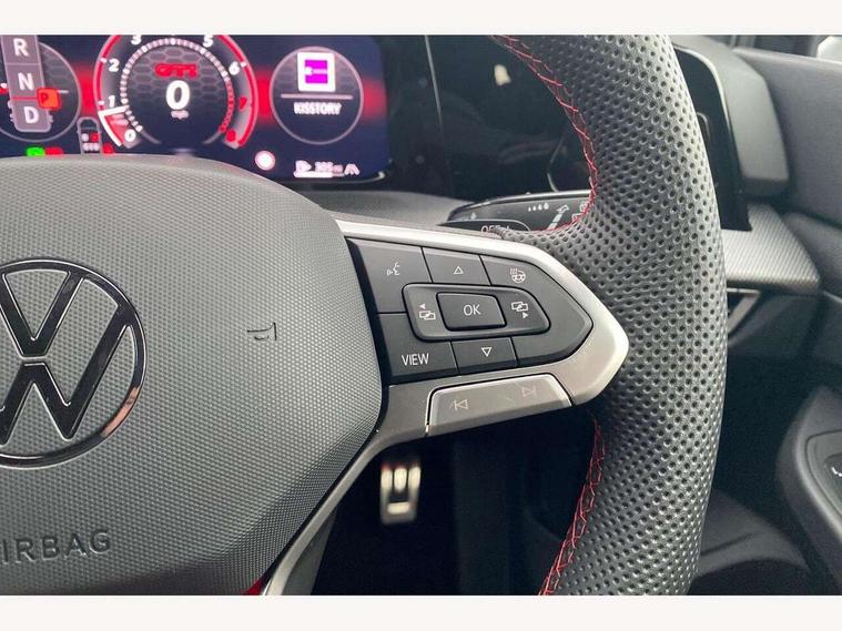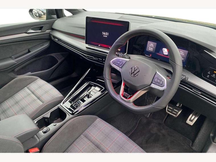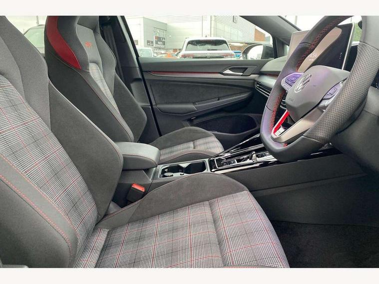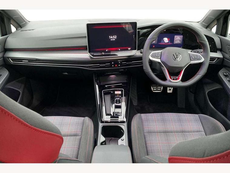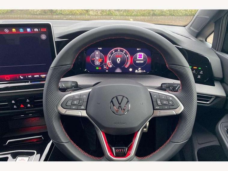 Activated carbon canister, Adaptive cruise control (ACC), Advanced driver attention and drowsiness monitor, Dynamic road sign display, E-Sim card for online connectivity, eCall emergency call system, Multi-color Digital cockpit pro, selection of different info profile possible, Multifunction front facing camera for distance control, Navigation system, Oncoming vehicle braking when turning including swerve support, Side assist blind spot lane change system, rear traffic alert and exit warning system, Speed limiter, Speedo, rev counter, electronic odometer, trip, service interval display, exterior temperature and fuel gauge, Traffic jam assist, Voice enhancer and voice control, Warning signal and warning light for front and rear seatbelts not fastened, We connect plus preparation, We connect preparation, Wireless app connect, Front differential lock, Petrol Particulate Filter, Start-stop system with battery regeneration (recuperation - energy recovery during braking), 2 USB C ports in front, 2 USB charging sockets on the centre console in the rear charging capacity upto 45W, Digital radio reception (DAB), Diversity antenna for FM reception, Gaming platform via car app, Infotainment system with 12.9" display, Mobile phone interface with inductive charging feature, 3rd brake light, Auto dimming rear view mirror, Automatic headlamp activation with Coming home and Leaving home feature, Body colour door handles, Body coloured bumpers, air intake in honeycomb structure, Exterior mirrors convex on the left and aspherical on the right, Front and rear electric windows, Front fog lamps and cornering light, Heat insulating windshield made of laminated glass, Illuminated lighting animation with wake up/goodbye scenario, LED separate daytime running light, Nameplate 'GTI' set, Rain sensor, Rear exhaust tailpipe, Rear fog light on one side and reversing lights on both sides, Rear side wing doors, Rear windscreen washer and wiper with interval delay, Remote electrically foldable door mirrors, puddle lights and reverse activated passenger's door mirror, Welcome light with surround lighting, 12V socket in front centre console, 12V socket in luggage compartment, 3 rear head restraints, 3 seat bench in 2nd row, 30 colour ambient lighting, illuminated center console storage compartment in front, Air care climatronic 3 Zone automatic climate control with rear air conditioning control panel, Aluminium gearshift handle, Brushed stainless steel pedals, Chrome plated radiator grille inserts, air vent surrounds and light switch surrounds, Entry lights, Front + rear black carpet mats, Front centre armrest, ISOFIX anchors for child seats on outer rear bench seats and on front passanger seat compatible for i-Size, Luggage compartment lighting, Rear cupholder and loadthough, Single front passenger seat, Soul black instrument panel, Soul black roof lining, Split folding backrest with centre armrest and unsplit rear seat bench, Sun visors with illuminated vanity mirrors, Driver assistance pack - Golf Estate/Hatchback Auto, Technology park and comfort pro package - Golf Hatchback, 3 point height adj front seatbelts + pretensioners, 3 rear three point seatbelts, ABS, Autonomous emergency braking front assist with pedestrian and cyclist monitoring, Child locks on rear doors, Driver and front passenger airbag with front passenger airbag deactivation, Electronic parking brake with auto hold, ESC (Electronic Stability Control), Extended pedestrian protection measures, Hill start assist, Rear disc brakes, Two tone horn, Tyre pressure loss indicator, Volkswagen roadside assistance, Anti theft wheel bolts, Preparation for alcohol interlock, Decorative inserts carbon grey for dashboard and front door trim panels, Sporty vehicle dynamics,