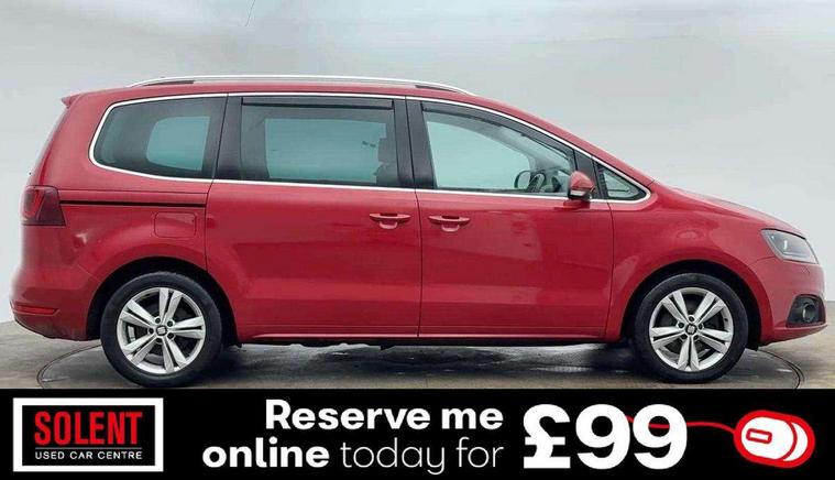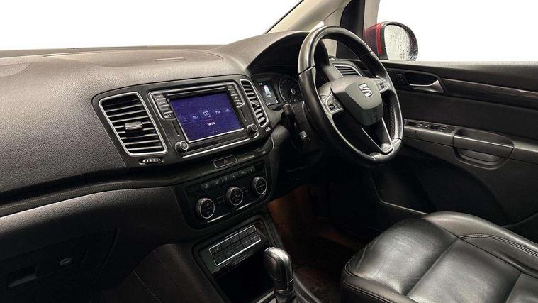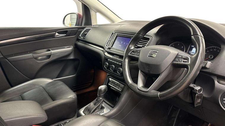 Cruise control, Driver alert system, Electric speed sensitive power steering, Front and rear parking sensors, Low fuel warning light, Multi function display, Outside temperature gauge, Stop/start system, Trip computer, Voice control system, Diesel particulate filter, Sports suspension, 6.5" touchscreen, 8 speakers, Auxiliary input socket, Bluetooth audio streaming, MDI with USB/iPod connection cables, MP3 compatible radio/single CD player, 'Guide me home' headlamps, Auto dimming rear view mirror, Automatic lights on sensor, Automatic rain sensing wipers, Body colour bumpers, Body colour door handles, Body colour door mirrors with integral indicators, Chrome roof rails, Chrome side window trim, Chromed centre radiator grille surround, Cornering front fog lights, Dark tinted rear glass, Electric folding door mirrors with puddle lamps, Electric headlight adjustment, Electric heated + adjustable door mirrors, Electric tailgate and sliding rear side doors, Electric tilt/slide panoramic sunroof, Front and rear electric windows, Heated washer nozzles, High beam assistant, LED tail lights, Rear wiper, Reverse activated kerb-view adjustment on passenger's door mirror, 12 way electric front seats, 230V AC inverter, 3 spoke leather steering wheel, 3 x 12V power sockets, 3 zone climate control, 4 cupholders, 4 Lashing eyes in boot, Adjustable front armrest with storage compartment, Adjustable head restraints, Comfort front sports seats, Dashboard storage with cover, Driver's seat memory, Easy entry seats, Electric sunshade for sunroof, Folding rear seats, Front seat and rear pockets, Front seat back fold out tables with cupholders, Front/rear door stowage bins, Front/rear floor mats, Front/rear reading lights, Heated front seats, Height/reach adjust steering wheel, Integrated sunblind for rear side windows, Isofix child seat preparation, Leather gear knob, Leather upholstery, Lockable/illuminated air conditioned glovebox, Multi function steering wheel, Overhead console with sunglasses holder, Rear air conditioning with separate controls, Reclining 2nd row seats, Removable load compartment cover, Steering column mounted gear shift paddles, Sunvisors with illuminated vanity mirrors, Under floor storage in 2nd row, Seat navigation pack with rear view camera - Alhambra, 3 point seatbelts on all seats, ABS, Auto hold function, Automatic post collision braking, Driver and passenger airbags, Drivers knee airbag, Electrically operated child locks on rear doors, Electronic parking brake, ESP+EBA, Front and rear curtain airbags, Front and rear seatbelt reminder, Front side airbags, Height adjustable front seatbelts with pre-tensioners and load limiters, Passenger airbag deactivate switch, Tiredness recognition system, Tyre pressure monitoring system, Electronic engine immobiliser, Locking wheel bolts, Remote central locking + deadlocks, Volumetric alarm with back up horn, Chrome effect dashboard facia, Metal Eye II door & dashboard decorative inserts, Self sealing tyres, Tyre repair kit,