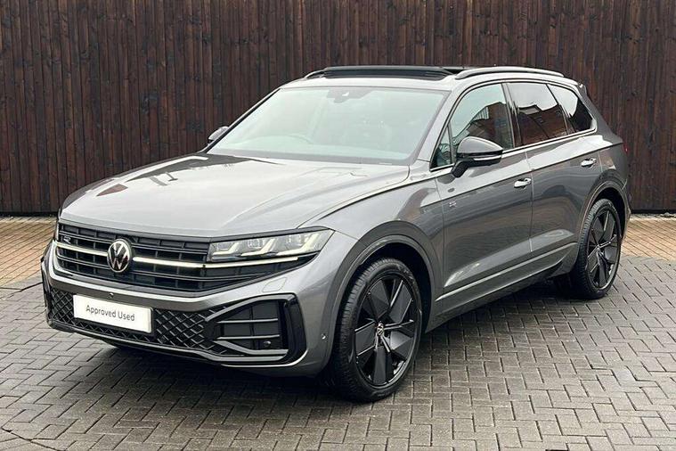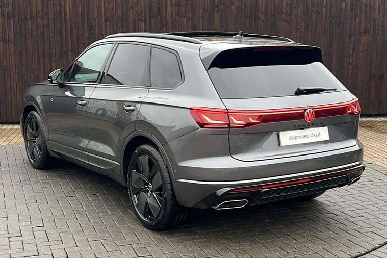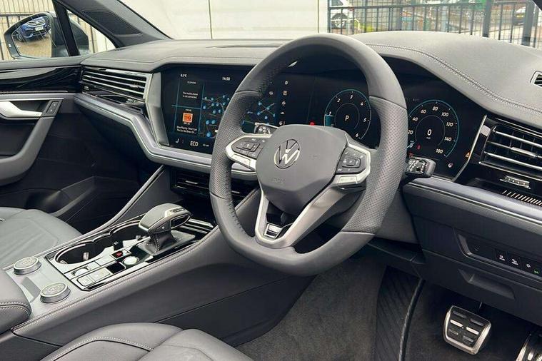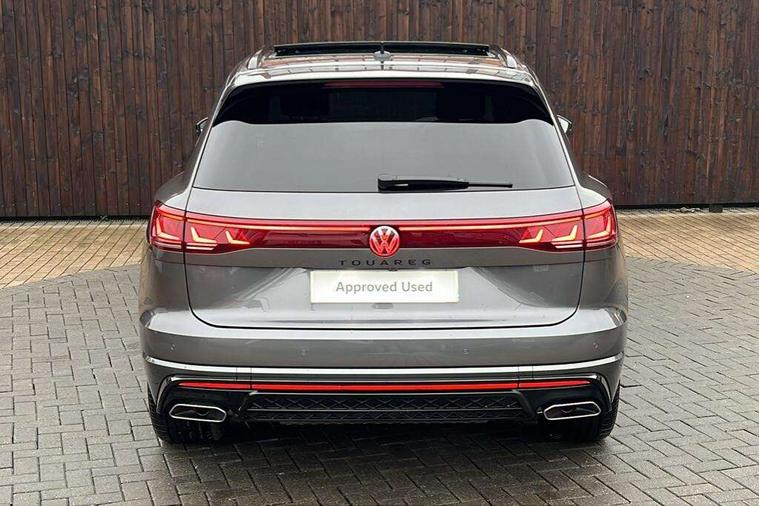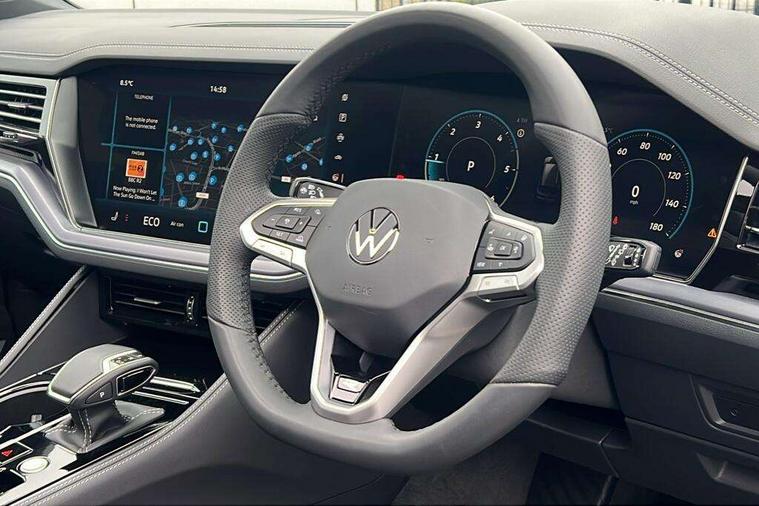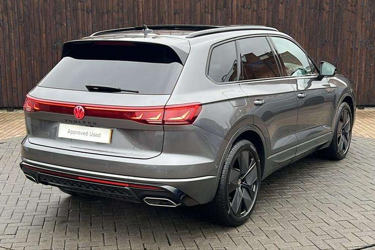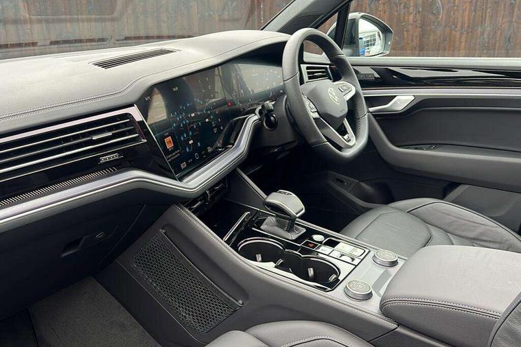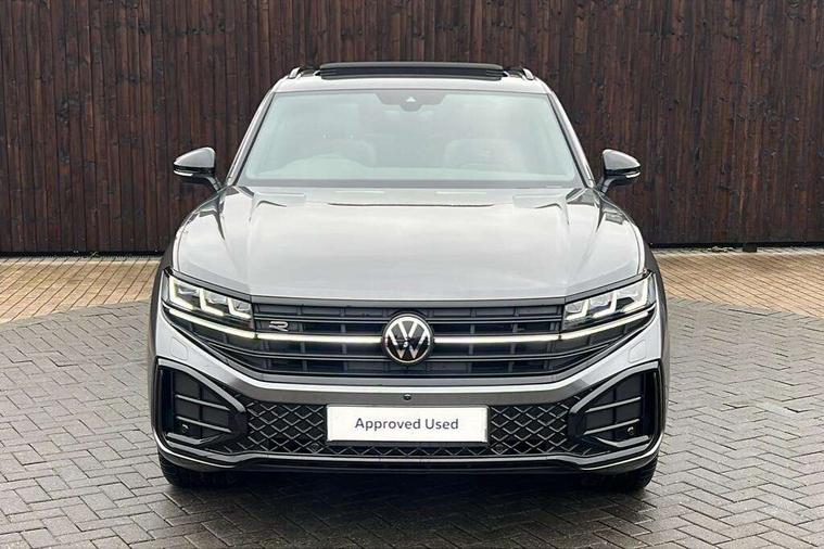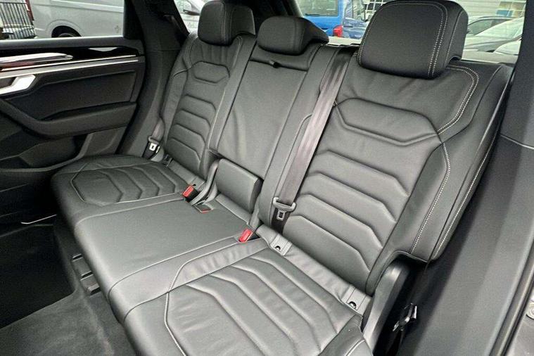 15" Screen Top infotainment system Premium (MIB3), Adaptive cruise control, Advanced driver attention and drowsiness monitor, Driver profile selection, Dynamic road sign display, E-Sim card for online connectivity, eCall emergency system, Innovision cockpit, Intelligent park assist, Mobile phone interface with inductive charging, Multi-colour Active Info display, Park Assist - Sensor controlled steering aid to assist parallel or bay parking, PAS, Warning signal and warning light for front and rear seatbelts not fastened, Wireless app connect, Adaptive chassis control, DAB Digital radio, Diversity antenna for AM/ FM reception, We Connect and We Connect Plus functionality, Automatic coming/leaving home lighting function, Automatic headlights, Black door mirrors, Black style comfort bumpers, Dynamic headlight range control with dynamic cornering light, Electric front tilt/slide panoramic sunroof and fixed rear sunroof, Electrically power adjustable, heated, folding, auto dimming, front passenger exterior door mirror lowering function, External USB type C socket and charging sockets, Gloss black roof rails, HD LED Matrix beam plus digital headlight projection with variable light distribution, Headlight washers, Highway light, LED 3rd brake light, LED daytime running lights, LED rear combination lamp with variable lighting functions and special styling, Poor weather light, Rain sensor, Rear exhaust tailpipe, Rear fog light with back up light on both sides, Rear light bar and illuminated logo, Rear side wing doors, Rear wiper, Stainless steel door sill protection, 12V socket in centre console, 3 rear headrests, 3 seat bench in 2nd row, 4 zone climate control, Airbag label on sun visor and B-pillar, Brushed stainless steel pedals, Double sun visors with illuminated vanity mirrors, Front + rear carpet mats, Front centre armrest, Leather wrapped multifunction sports steering wheel, heated, with touch control and shift paddles, Mechanical rear seat release, Power adjustable lumbar support in front, Power seats in front, right side with memory features and seat cushion depth adjustment, Rear seat backrest and split folding with center armrest, Single front passenger seat, Memory pack plus - Touareg, 3 point seatbelts, outer rear with ECE lable, ABS, Child locks on rear doors, Curtain airbags, Driver and front passenger safety-optimised head restraints, Driver/Front Passenger airbags, Extended pedestrian protection measures, Front assist, Front seat side impact airbags, Generative braking with start and stop system, Height adjustable 3 point front seatbelts with pre tensioners, Passenger airbag deactivate switch, Three 3 point rear seatbelts, Two tone horn, Tyre pressure loss indicator, Warning triangle and first aid kit, Alarm system with interior protection, Easy open and close sensor controlled luggage compartment opening and closing with remote unlocking, Keyless Access Keyless locking and starting system with SAFELOCK, Aluminium decorative inserts, Black decorative trims, Gloss black decorative inserts in centre console, Tool kit,