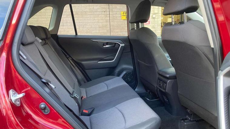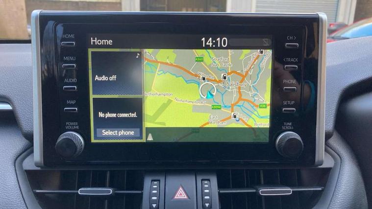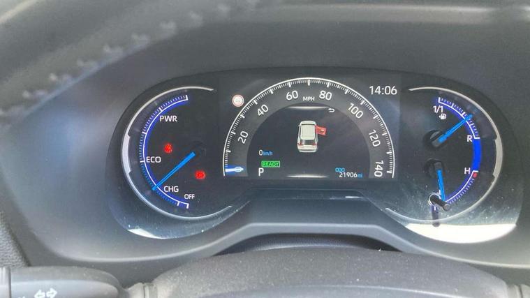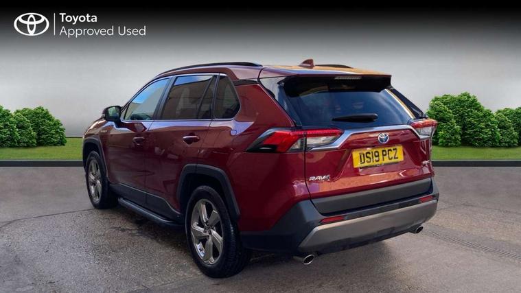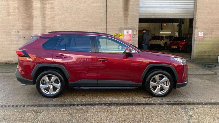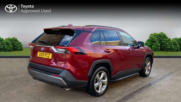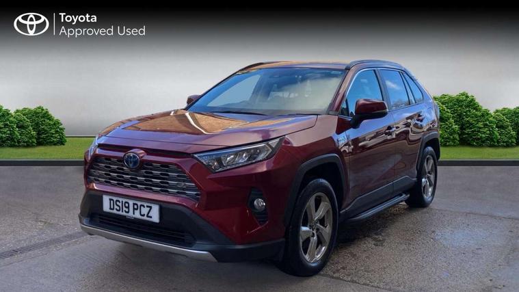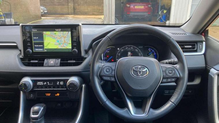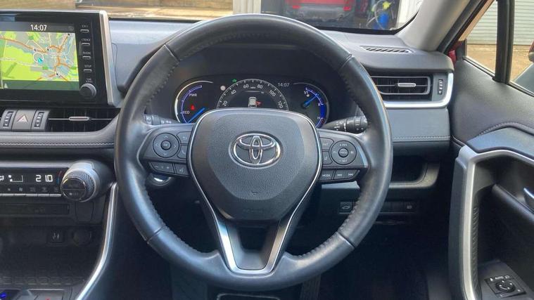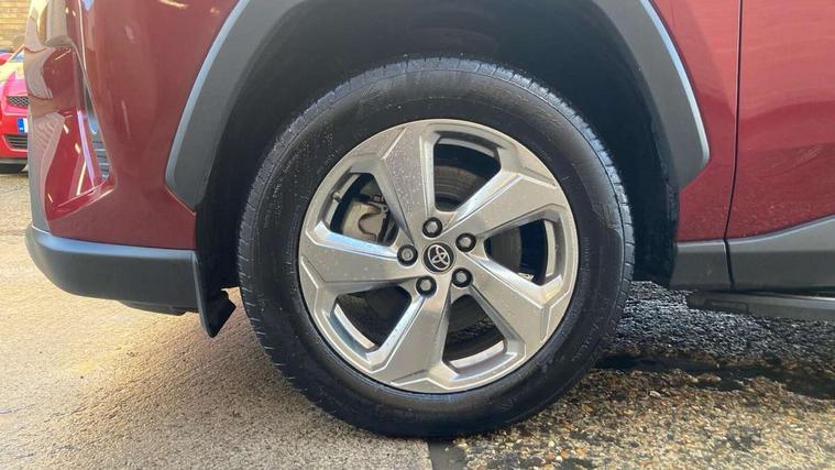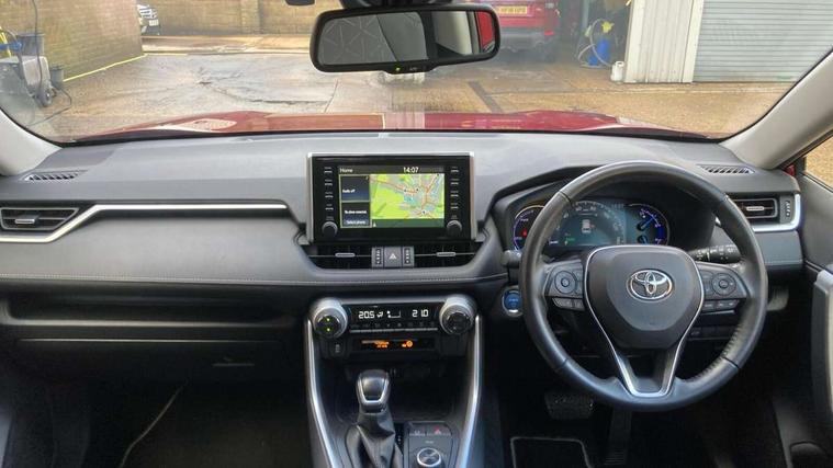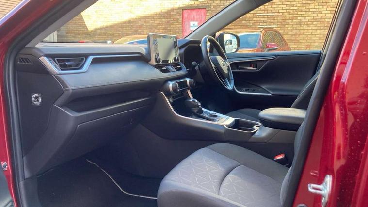 7" colour TFT display, Adaptive cruise control with lane trace assist, Adjustable speed limiter, Bluetooth system, Cyclist Detection, Drive mode selector, eCall emergency call system, ECO-driving indicator, Electric power steering, Hybrid system indicator, Lane departure warning system, Lights on warning, Night Time Pedestrian Detection, Pedestrial detection, Power boot opening and closing, Rear parking camera, Rear parking sensors, Remote boot door release in cabin, Tachometer, Touch 2 Go navigation system, Traffic sign recognition, Trip computer, Voice control system, Vehicle Stability Control (VSC), 6 speakers, 8" Multimedia display touch screen, Auxiliary socket for external MP3 player, DAB audio, Steering wheel mounted audio controls, Toyota touch media system, USB connection, Auto dimming interior mirror, Auto high beam, Automatic headlamp levelling, Automatic headlights, Automatically retractable door mirrors, Black roof rails, Body colour door handles, Body colour door mirrors, Body colour rear spoiler, Body coloured bumpers, Body coloured Shark-fin antenna, Electric adjustable door mirrors, Emergency brake-light signal (EBS), Follow me home headlights, Front fog lights, Headlight cleaners, Heated door mirrors, LED daytime running lights, LED High mounted stop lamp, LED rear lights, Meshed upper front grille, Parabola LED headlights, Power front windows, Power rear windows, Privacy glass, Rear screen wiper - intermittent, Rear windscreen defogger, Silver front under-run, Silver rear under-run, Trailer sway control, Turning signal integrated indicators in door mirrors, 3 rear headrests, 60/40 split fold rear seat back, Boot light, Clean air filter, Cloth upholstery, Driver and front passenger personal light, Driver and front passenger Whiplash Injury Lessening seats, Driver and passenger sunvisors with illuminated vanity mirrors, Dual sided deck board in boot, Dual zone automatic air conditioning, Floor mats, Folding rear centre armrest, Front and rear bottle holders, Front centre armrest, Front footwell lights, Front headrests, Front/rear roof mounted assist grips, Grey roof lining, Isofix child seat preparation, Leather gear shift with chrome surround, Manual telescopic and tilt 3-spoke leather steering wheel with Chrome insert, Manually height-adjustable sliding and reclining driver seat, Manually reclining and sliding front passenger seat, Pollen filter, Rear coat hooks, Rear door armrests, Rear passenger air vents, Reclining rear seats, Satin chrome interior door handles, Sunglasses holder, Parking pack - Rav4, 3x3 point rear seatbelts, ABS/EBD, Adjustable front driver and passenger seat belt extender, Brake assist function, Child proof door locks, Collision mitigation braking system, Driver/Front Passenger airbags, Driver/front passenger side airbags, Drivers knee airbag, Electronic parking brake, Electronic Stability Programme (ESP), Emergency brake light system (EBS), Front and rear curtain airbags, Front and rear seatbelt reminder, Hill start assist, Passenger airbag cut-off device, Seatbelt pretensioners with load limiters, Traction control, Tyre pressure warning, Alarm/immobiliser, Glass-breaking alarm sensors, Light - on and Key in reminder, Remote central locking, Smart entry + Smart start, Speed sensitive auto door locking, Tilt detection sensors, Piano black centre console with silver insert, Soft-touch black lower dashboard, Soft-touch black upper dashboard with silver insert, Full size spare wheel,