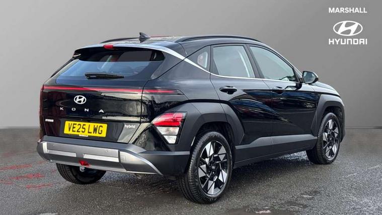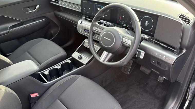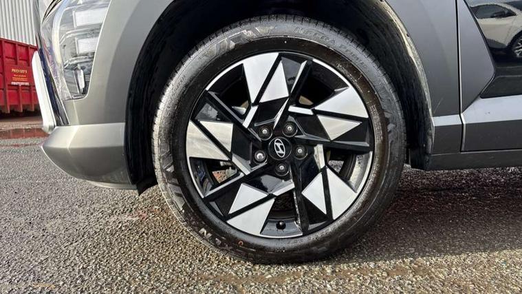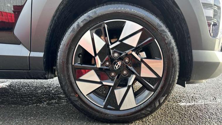 12.25" digital instrument cluster, 12.3" touchscreen centre console display satellite navigation with bluelink, live services and mapcare, Bluetooth connectivity with voice recognition, Driver status monitor (DSM), Driver supervision instrument cluster with 12.3" LCD display, eCall emergency call system, Feature on demand - Enabled, Forward collision avoidance assist (FCA 1.5) - Car, pededstrian, cycle and junction turning, Front parking sensor, HDA - Highway Drive Assist Level 1.5, Intelligent speed limit assist, Lane follow assist, Lane keep assist, Leading vehicle departure alert (LVDA), Parking system with rear camera and guidance system, PAS, Rear parking sensor, Rear view camera with dynamic guidelines, Roadside assistance, Smart cruise control with stop and go functionality, Wireless Smartphone Integration includes Apple CarPlay and Android auto, 2 front USB C and 2 rear USB C charging points, DAB Digital radio, Speakers - Front, rear and tweeters, Steering wheel audio, phone and cruise controls, Auto dimming rear view mirror, Automatic headlights with dusk sensor, Automatic windscreen wipers with rain sensor, Black painted wheel arch inserts, Body colour exterior door handles, Body coloured door mirrors, Door mirror LED indicator lights, Electric front windows with anti-trap mechanism and one touch control, Electric rear windows, Electrically adjustable and heated door mirrors, Full LED MFR headlights, LED daytime running lights, LED taillights, LED upper and lower rear lights, Power folding door mirrors, Rear roof spoiler with integrated LED brake light, Rear side wing doors, Rear skid plate - silver, Rear wiper, Roof rails, Tinted glass in front and rear doors, Windscreen auto defog function, 12V power outlet in front console, 2 zone climate control, 3 seat bench in 2nd row, Adjustable head restraints, Cloth upholstery, Driver and passenger front seat pockets, Driver's seat lumbar support, Driver/passenger manual seat height adjustment, Driver/passenger sunvisors and illuminated vanity mirrors, Floor mats, Height/reach adjustable steering column, Leather steering wheel, LED centre interior light, LED front interior light, Luggage compartment LED lighting, Luggage shelf, Metal paint effect interior door handles, Rear centre armrest with cupholders, Shift by wire SBW, Single front passenger seat, Vertical adjustment rear head restraints, Trailer wiring package - Kona, Airbag - front, front side, curtain and centre front airbag, Anti-lock brake system (ABS), Childproof rear door locks, Downhill brake control, Electric parking brake, Electronic stability control, Fixed 3 point for second row centre passenger seatbelt, Hill start assist control (HAC), Rear seat alert, Tyre pressure monitoring system, Alarm/immobiliser, Rear occupant alert, Remote central locking, Smart key with keyless entry and start/stop button, Five year annual vehicle health checks, 18" Alloy wheels, Temporary mobility kit (TMK),