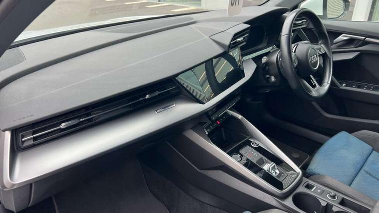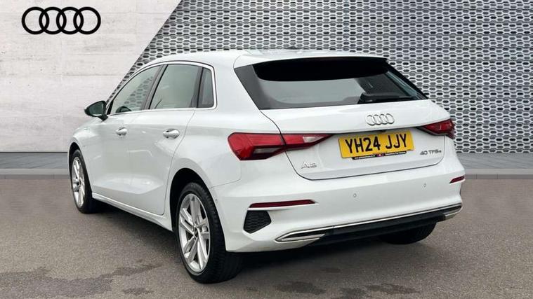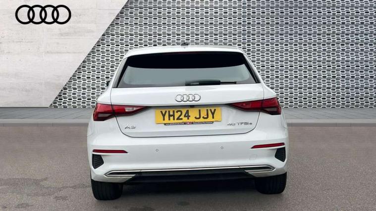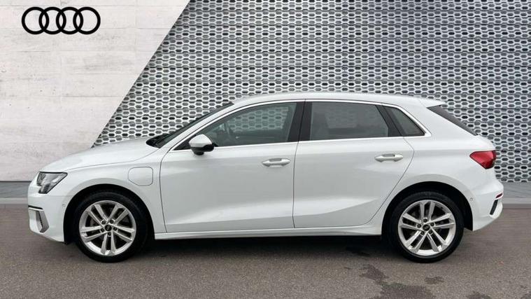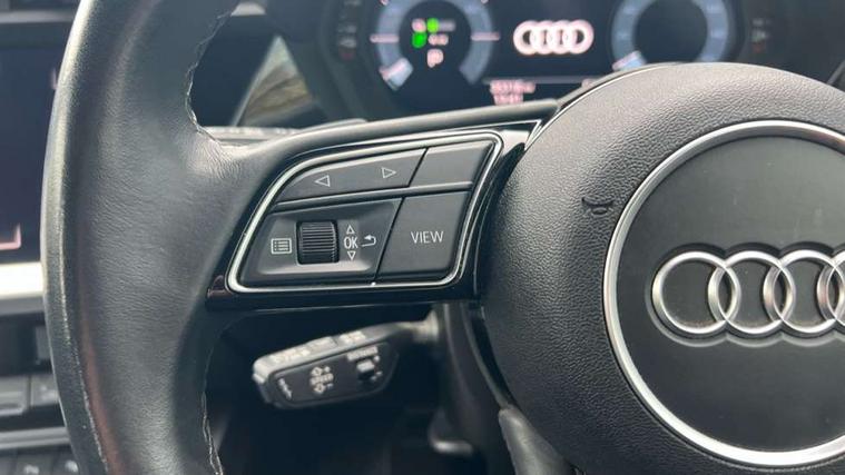 Audi drive select (Auto, Comfort, Dynamic, Efficiency and Individual), Audi smartphone interface, Audi Virtual Cockpit - 10.25" digital and colour instrument cluster, Automatic start/stop system with recuperation, Bluetooth interface, Camera based traffic sign recognition, Collision avoidance assistant, e-Call (emergency call), Electromechanical power speed sensitive steering, Lane departure warning system, MMI Navigation Plus with high resolution 10.1" colour touch screen display, Service indicator, Trip computer, Voice control system with natural language interaction, 3 pin 10 amp domestic charging cable, 3.6 kw On-board charger, Standard suspension, Type 2 mode 3 32 amp charging cable, Type 2 socket for AC charging, 2xUSB-C connection with data and charging functions, 6 passive loudspeakers, DAB Digital radio, 3rd brake light, Acoustic glass windscreen, Aluminium window trim, Auto dimming frameless rear view mirror, Body colour exterior mirrors, Body colour roof spoiler, Electrically adjustable/heated/folding/auto dimming door mirrors with integrated LED indications + kerb view function for passenger side, Front electric windows, LED daytime running lights, LED headlights and halogen rear lights, Light and rain sensors, Rear electric windows, Rear side wing doors, Rear window, rear door windows and rear side windows in clear glass, Rear wiper, 12V socket and storage compartment in front centre console, 3 seat bench in 2nd row, 3 spoke leather multifunction steering wheel with paddle shift, 4 way electrically adjustable lumbar support for driver and front passenger, 60/40 split folding rear seat bench, Dual zone electronic climate control, Front and rear headrests, Front centre armrest, Front door sill trims with aluminium inlay, Front/rear floor mats, Height and reach adjustable steering wheel, Interior lighting - Front and rear roof module including reading lights, glove compartment light and right hand side, Interior lighting - glove compartment light and right hand side, Luggage compartment floor covering, Manual boot compartment lid, Manually adjustable front seats, Routine cloth upholstery with front sports seats, Seat side bolsters, Single front passenger seat, Steel grey cloth headlining, Aluminium interior elements pack - A3 Sportback, LED interior lighting pack - A3 Sportback, Sport styling pack - A3 Sportback, 3x3 point rear seat belts, Driver and front passenger airbag with passenger airbag deactivation, Electronic Stabilisation Control (ESC) including ABS, ASR and EDL, First aid kit with warning triangle and 2 safety vests, Front side airbags with head airbags and interaction airbag, Pre-sense front with pedestrian and cyclist detection, Seatbelt monitoring, Tyre pressure loss indicator, Anti theft alarm, Anti-theft wheel bolts, Electronically operated child locks, Immobiliser, Remote control central locking, Inlays with silk effect paint in platinum grey, Tool kit, Tyre repair kit,