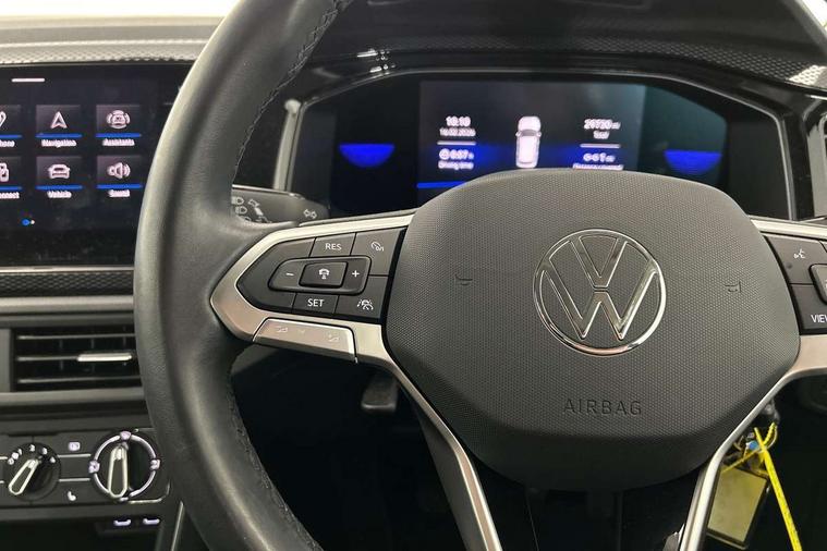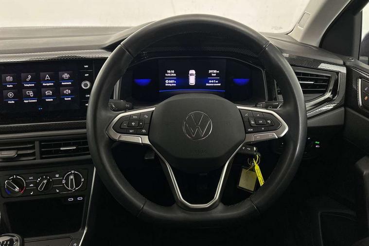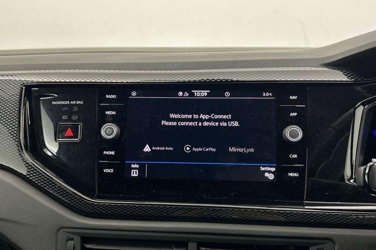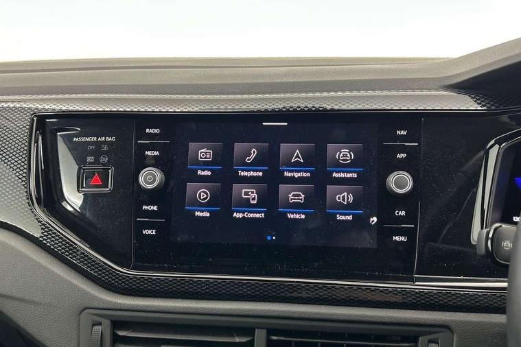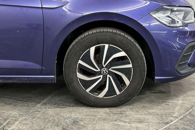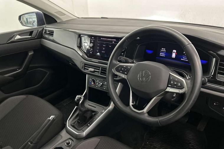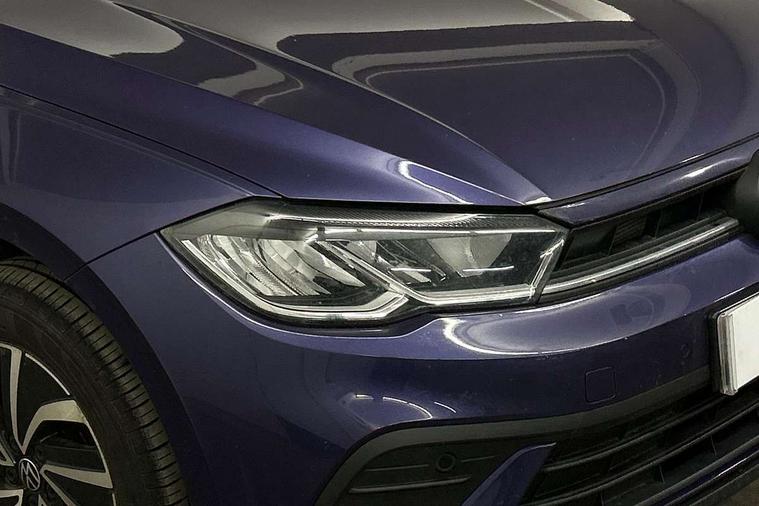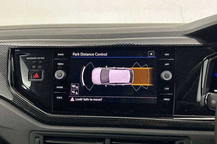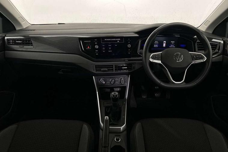 Adaptive cruise control without follow-to-stop and speed limiter, Bluetooth mobile phone interface, Driver alert system, Emergency call service, Front assist system, Power assisted speed sensitive steering, Preparation for We connect and We connect plus, Speedo and rev counter, electronic odometer, trip, service interval display and fuel gauge, Standard rear axle, Travel Assist - Lane keeping system and traffic jam assist, Travel assist including emergency assist, Trip computer, Warning signal and warning light for front and rear seatbelts not fastened, Washer fluid level indicator, Wireless app connect, Front wheel drive, Rear shock absorpion, Start-stop system with battery regeneration (recuperation - energy recovery during braking), DAB Digital radio, Diversity antenna for FM reception, Front and rear 6 speakers, Automatic dimming interior rear view mirror, Body colour bumpers, Body colour door handles, Body colour door mirrors, Electric front windows, Heat insulating darkened glass in side and rear windows, Heat insulating glass windscreen, Power folding adjustable/heated exterior mirrors and front passenger exterior mirror lowering function, Rain sensor, Rear electric windows, Rear fog light, Rear side wing doors, Rear windscreen washer and wiper with interval delay, Third brake light, 12V power socket in centre console, 2 front and 2 rear reading lights, 2 USB-C ports in the front, 2 USB-C charging sockets on the center console in the rear, 3 rear head restraints, 60/40 split folding rear seat and rear seat bench not split, Ceramique headliner, Chrome plated radiator grille inserts, air vent surrounds and light switch surrounds, Door and side trim panel, Driver and front passenger seat height adjustment, Driver/passenger sunvisors with illuminated vanity mirrors, Front centre armrest, Front seat backrest storage pockets, Front standard seats, Handbrake lever handle in leather, Hartley/Thomas cloth upholstery, Isofix child seat preparation easy-fit (for two outer rear seats, and front passenger seat) compatible with I-size, Leather trimmed gear knob, Luggage compartment cover, Luggage compartment floor, Luggage compartment lighting, Multifunction steering wheel, Single front passenger seat, Standard pedal cluster, Light and vision pack - Polo, 3 point height adj front seatbelts + pretensioners, 3x3 point rear seatbelts, ABS, Driver and front passenger airbag with front passenger airbag deactivation, Drivers and front passengers safety optimised head restraints, ESC (Electronic stability control) + EDL (Electronic Differntial lock) and ASR (Traction control), Extended and predictive pedestrian/ cyclist protection, Front curtain and side airbags with center airbag, Front disc brakes, Hill hold control, Manual child lock in rear doors, Rear drum brakes, Single tone horn, Tyre pressure loss indicator, Alarm with interior protection, Anti-theft alarm system with interior monitoring, backup horn, and towing protection, Anti-theft wheel bolts, Electronic engine immobiliser, Lava stone black gloss/matt decorative inserts in dash and front door panels, Low rolling resistance tyres,
