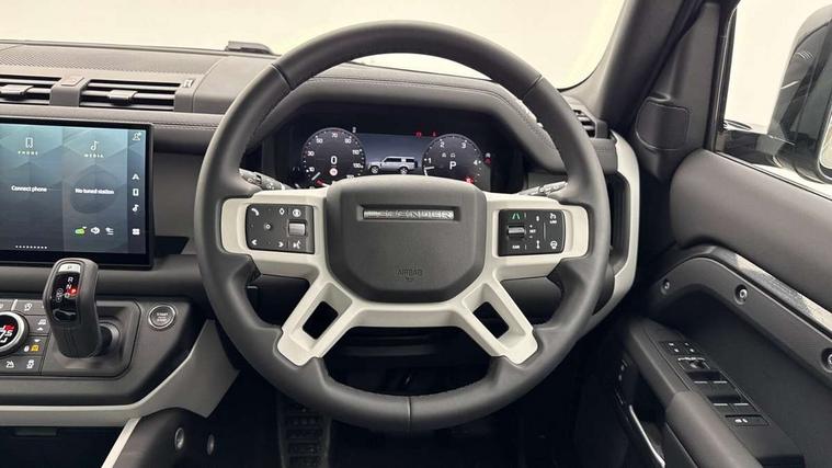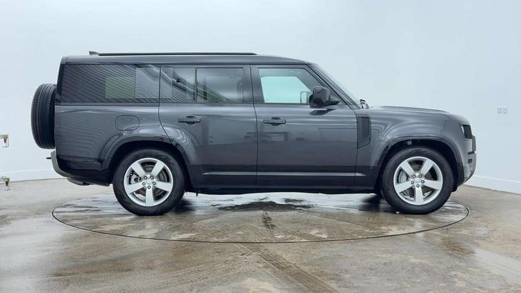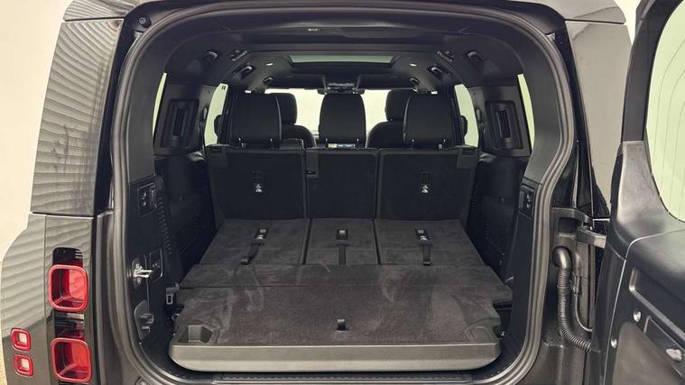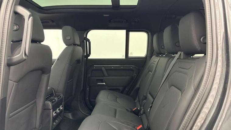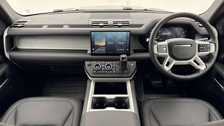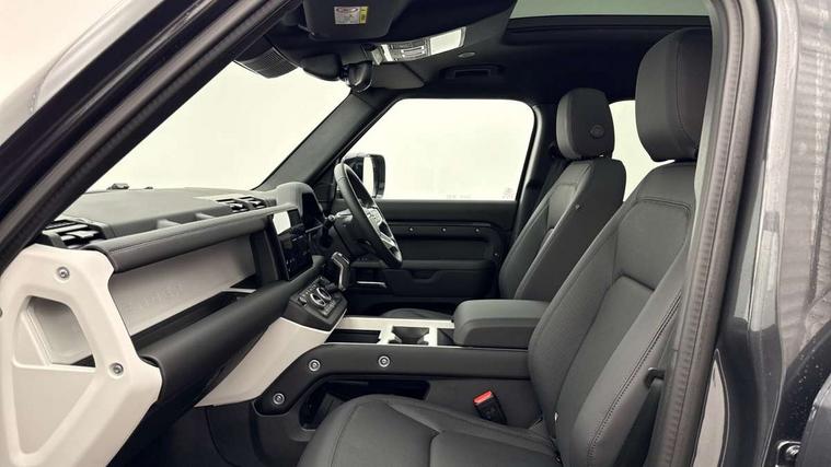 1 x USB-C (power only) & 1 x USB-C (power & data) in Row 1, 2 x USB-C in Row 2, 11.4" touchscreen, 2 x USB-C in Row 3, 360 degree parking aid, 3D Surround Camera with 360 View, 180 Rear View, Front Traffic Detection, Forward Vehicle Guidance, Tow Hitch Assist and clear sight Ground View, Adaptive cruise control, Android Auto, Apple CarPlay, Blind spot assist, Bluetooth system, Brake pad wear indicator, Clear exit monitor, Connected navigation pro, Driver condition monitor, Electric power assisted steering (EPAS), Interactive driver display, Lane keep assist, Push button start, Rear collision monitor, Rear traffic monitor, Traffic sign recognition with adaptive speed limiter, Trip computer, Wireless device charging, 8 speed automatic transmission, Adaptive dynamics, All wheel drive system, Electronic air suspension, Twin speed transfer box, DAB Radio (Digital Audio Broadcasting), Meridian 400w sound audio system with 11 speakers and subwoofer, Pivi pro connected, Automatic headlight levelling, Automatic headlights, Black exposed rear recovery eyes, Black roof rails, Body coloured bonnet, Centre high mounted stop light, Electric heated/power fold door mirrors with approach lights and auto dimming driver side, Electric windows with one touch open/close and anti-trap, Follow me home lighting, Heated rear window with timer, Heated windscreen, Illuminated metal treadplates with brand name script, LED tail lights, Privacy glass, Puddle lights, Rain sensing windscreen wipers, Rear fog lights, Rear side wing doors, Rear wiper, Side hinged tailgate, Sliding panoramic roof, Standard tail door, Trailer stability assist, 12V power socket in loadspace, 3 seat bench in 2nd row, 3 seat bench in third row, Air quality sensor, Cabin Air Purification plus, Centre console with armrest, Configurable cabin lighting, Durable rubber cabin flooring, Durable rubber loadspace flooring, Footwell lights, Front head restraints, Front passenger isofix child seat attachment, Heated steering wheel, Loadspace cover, Loadspace Hook, Multifunction steering wheel, Overhead stowage for sunglasses, Rear headrests, Rear ISOFIX, Rear reading lights, Single front passenger seat, Storage glovebox, Sunvisors with illuminated vanity mirrors, Twin front cupholders, Non-smoker package, Online pack with data plan - Defender, 5 x 3 point seatbelts, ABS, Brake hold function, Cornering brake control (CBC), Customer configurable autolock, Driver and passenger airbags, DSC - Dynamic Stability Control, EBD - Electronic brakeforce distribution, Electric parking brake (EPB), Emergency brake assist, Emergency braking, ESP + traction control, Front airbags with passenger seat occupant detector, HDC - Hill descent control, Hill launch assist, Low traction launch, Power operated child locks, Remote for (e-Call, Optimised assistance call, InControl app, Climate, beep and flash and door), RSC - Roll stability control, Seat belt reminder, TPMS (Tyre pressure monitoring system), Alarm, Immobiliser, Intrusion sensor, Keyless entry, Locking wheel nuts, Secure tracker pro, All season tyres,