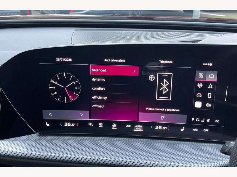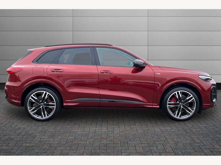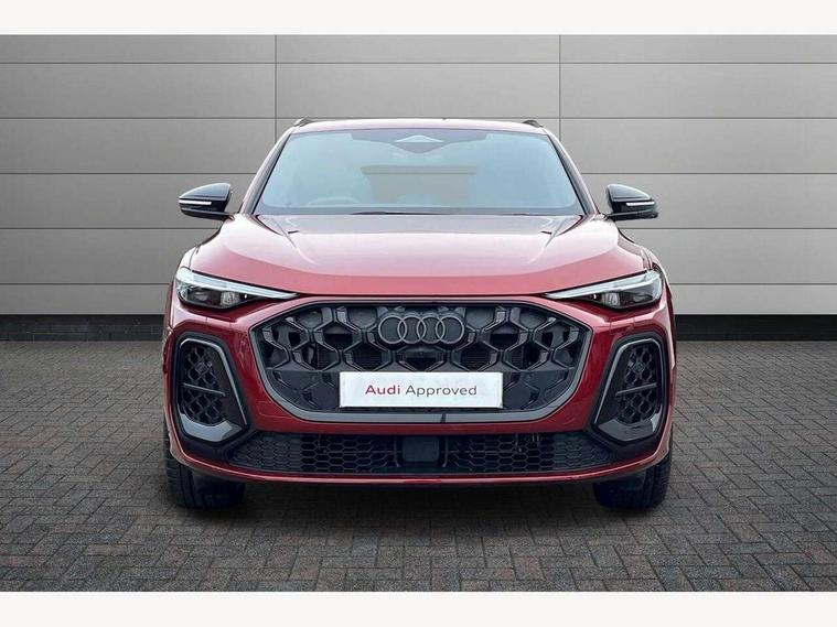 Adaptive cruise control, Advanced driver attention alert, Audi application store, Audi connect emergency call and service, Audi drive select, Audi smartphone interface, Audi virtual cockpit plus with 11.9" OLED colour display, Camera based traffic sign recognition, Fatigue monitor, Front cross traffic intersection assist, Lane change assistant with exit warning system, rear cross traffic alert and rear turn assist, Lane departure warning with emergency assist, MMI 10.9" front passenger touch display, MMI navigation plus with high resolution 14.5" OLED touchscreen colour display, Park assist plus, Parking system plus with 360 display, PAS, Reversing camera, Swerve assist and turn assist, Top view camera, Traffic sign based speed limiter, 2 USB-C ports in both the front and rear, Audi sound system impressive sound with 10 loudspeakers including centre speaker and subwoofer, 6-channel amplifier with a total output of 180 watts, DAB Digital radio, Smartphone compartment with wireless charging, Active digital light signatures - Six additional combinations of active daytime running light signature, Auto dimming rear view mirror, Black roof rails, Coming/leaving home lighting function, Electrically adjustable heated and folding + automatically dimming exterior mirrors, Exhaust tailpipes in dark chrome, Front and rear electric windows, Front door sill trims with aluminium inlays, illuminated with 'S' logo, Full body paint finish, Grill frame, inlay and front air inlets in matt anthracite chrome, Headlight cleaning system, Heated rear window, High beam assist, High gloss window surrounds, LED rear lights pro incl. dynamic rear indicators and illuminated light strip with animated coming and leaving home function, Logo projection light in exterior mirrors, Matrix LED headlights, Memory function for door mirrors, Privacy glass, Projection third brake light for rear window in LED, Radiator grille in phantom black, Rear and side windows with heat insulating glass, Rear honeycombe grille in matt black with inlay in matt anthracite chrome, Rear side wing doors, Rear wash/wipe, S Line badge on the front wings, Towbar preparation, Windscreen with acoustic glazing, 3 rear head restraints, 3 seat bench in 2nd row, 3 spoke leather steering wheel with multi-function buttons with touch control, flattened on top and bottom, with S badging and contrast stitching, 4 way electric lumbar support for driver and front passenger, 40:20:40 split folding rear seat bench with centre armrest and cup holders, Comfort centre armrest front, Deluxe 3 zone electronic climate control, Dinamica microfiber/leather upholstery, Electrically adjustable front seats with memory function for driver's side, Front and rear floor mats, Front sport seats with integrated head restraints, Headlining in black cloth, Heated front seats, i-Size child seat mounting on the front passenger side and outer rear seats, i-Size and top tether on the outer rear seats, Interior trim in aluminium look, Luggage compartment lid, electrically opening and closing, Manual steering column adjustment, Single front passenger seat, Softwrap in Dinamica, Stainless steel pedals and footrest, Steering wheel grips in perforated leather and shift paddles, Ambient lighting package plus - Q5, Black styling package plus - Q5, Storage and luggage compartment pack - Q5, 3x3 point rear seatbelts, ABS, Acoustic vehicle alerting system, Convenience key with safelock, Driver and front passenger airbag with passenger airbag deactivation, Electric child safety locks, First aid kit with warning triangle and high visibility vests, Front emergency brake assist, Front side airbags with head airbag system and front interaction airbag, Hill hold assist, Occupant detection in rear seat area, Proactive passenger protection system for front, sides and rear, Red brake calipers, Side airbags in front and rear with head airbag system and front interaction airbag, Tyre pressure loss indicator, Anti theft alarm, Anti-theft wheel bolts, Remote control key with SAFELOCK and keyless go, Accent surfaces and control buttons in gloss black, Black dashboard with contrast stitching, Steel grey seat stitching, Upper and lower interior elements in dinamica microfiber, Tyre repair kit,