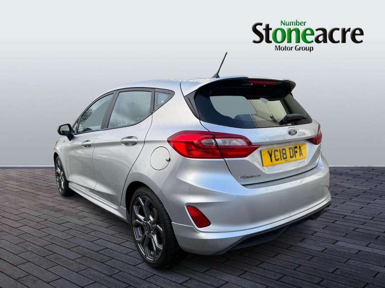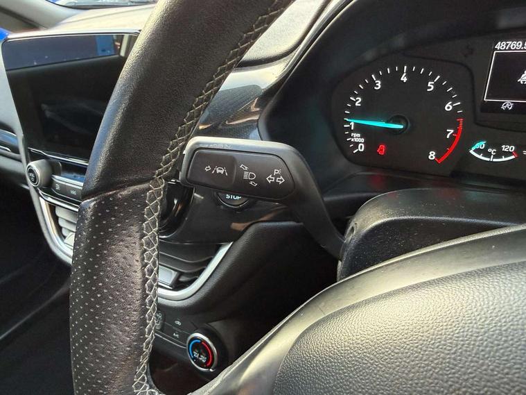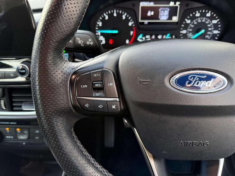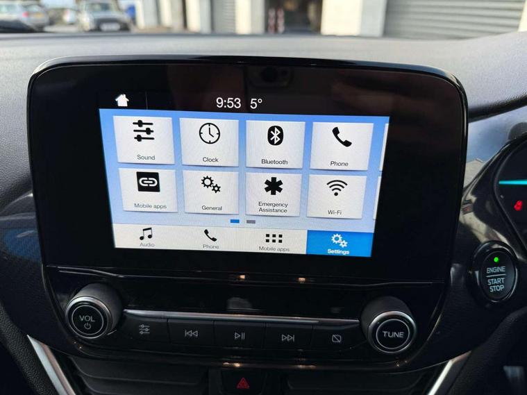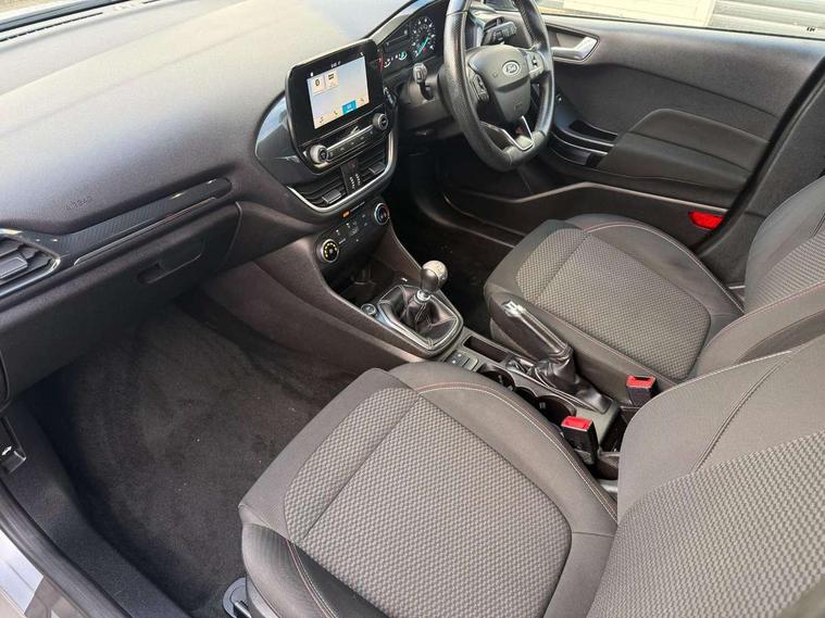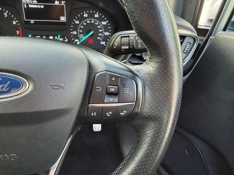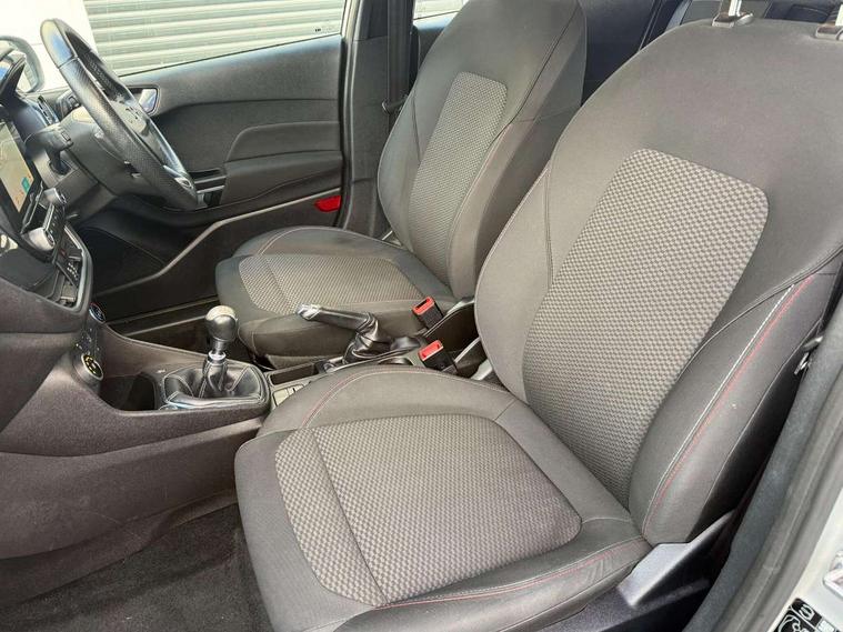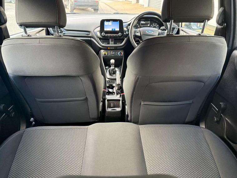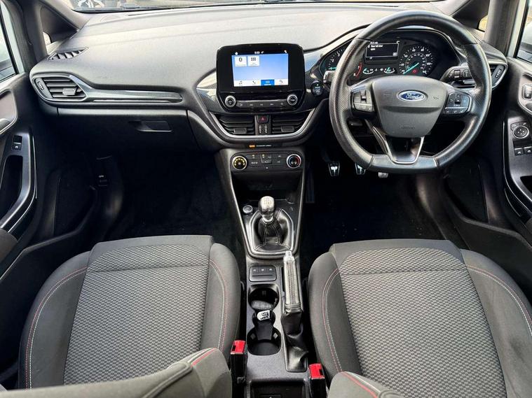 Bluetooth system, Electric power steering, Lane keep assist, Speed limiter, SYNC Emergency Assistance, Trip computer, Sports suspension, 2 USB ports, Auxiliary input socket, Ford SYNC 3 DAB radio, apple car play and android auto with voice control, Steering wheel mounted controls, USB connection, Automatic headlights, Body colour bumpers, Body colour door handles, Body colour electric adjustable heated door mirrors, Body colour large rear spoiler, Chrome door handles, Cornering front fog lights, Electric front windows/one touch facility, LED daytime running lights, Quickclear heated windscreen, Rear wiper, Tinted glass, 12V Accessory socket in centre console, 3 spoke flat bottomed leather steering wheel, 60/40 split folding rear seat, Adjustable head restraints, Ambient lighting, Black headlining, Boot carpet, Centre console with armrest, Chrome inner door handles, Cloth upholstery, Footwell illumination, Front and rear velour floor mats, Front map reading lights, Front seat and rear pockets, Height adjustable driver's seat, Illuminated cup holders, Illuminated glovebox, Leather gear knob, Leather trimmed handbrake handle, Load area light, Manual air conditioning, Overhead console with sunglasses holder, Pollen filter, Rake/reach adjustable steering wheel, Rear centre head restraint, Sports front seats, Sports pedals, 3 point seatbelts on all rear seats, ABS+EBA, Curtain airbags, Driver and passenger airbags, Drivers knee airbag, ESP + traction control, Front passenger airbag deactivation, Front side airbags, Hill start assist, Seatbelt warning, Tyre pressure monitoring system, Immobiliser, Keyless start with 'Ford Power' starter button, MyKey system, Remote central locking, Thatcham Cat.1 alarm,