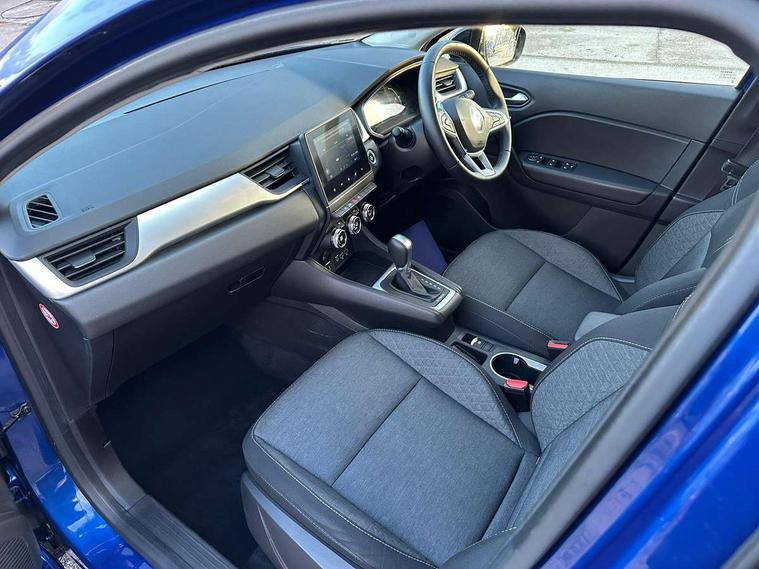 7" TFT Driver information display, Cruise control + speed limiter, eCall emergency call system, Eco mode, EV button to activate pure mode, Gear change indicator, Lane departure warning system, Lane keep assist, Rear parking sensor, Renault automatic emergency assist, Traffic sign recognition with over speed prevention, Trip computer, Variable assistance power steering, Wireless phone charger, EasyLink 7" touchscreen with navigation, bluetooth, DAB radio, USB ports, compatible with Apple carplay/Android auto, Automatic front wipers with rain sensors, Automatic headlights, Automatic high/low beam, Black side door protection, Body colour door handles, Body coloured bumpers, Body coloured door mirrors, C Shaped LED front and rear lighting signatures with 3D effect on the rear lights, Drivers one touch window with anti-pinch feature, Electric rear windows, Extra tinted glass in rear windows and tailgate, Full LED headlights, Grey front and rear skid plate, LED daytime running lights, LED front fog lights, LED high level brake lights, LED rear fog light, Rear side wing doors, Rear wing door, Rear wiper, Variable speed on front windscreen wipers, 12V Accessory socket, 3 rear headrests, 60/40 split and fixed base rear seat bench, Automatic climate control with one touch demist function, Centre console storage tray, Cloth upholstery, Front head restraints, Glovebox, Heating system with pollen filter, Height adjustable driver's seat, Height/reach adjust steering wheel, ISOFIX child seat fixing points on rear outermost seats, Middle console with armrest and storage, Rear air vents, Single front passenger seat, Sliding rear bench, Standard bulb in front roof lights, Synthetic leather steering wheel, 3 rear seatbelts, ABS+EBA, B Brake Mode - One pedal driving with increased regenerative braking, Driver and front passenger, side, head and curtain airbags, Driver height adjustable seat belt, Electric parking brake, Electronic stability control, Front and rear no seatbelt warning sound, Front dash warning indicator in case of heavy braking, Front driver and passenger side airbag deactivation, Hill start assist, Rear door and window child locking function for rear door, Tyre pressure warning light, Anti drill door locks and locking fuel cap, Central door locking, Deadlocking system, Hands free keycard with push button and start/stop function, RAID (Renault Anti-Intruder Device) automatic door locking, Black soft touch dashboard, 17" Bahamas alloy wheels,