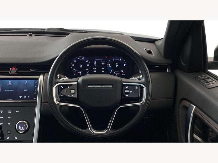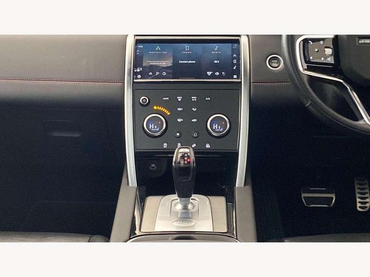 10" touch screen, 3D Surround Camera with 360 View, 180 Rear View, Front Traffic Detection, Forward Vehicle Guidance, Tow Hitch Assist and clear sight Ground View, Android Auto, Apple CarPlay, Blind spot assist, Clear exit monitor, Driver condition monitor, Front and rear parking aid, InControl remote premium, Interactive driver display, Lane keep assist, PAS, Pivi Pro connected navigation system with upgraded Infotainment, Powered tailgate/boot lid, Rear traffic monitor, Rear view camera, Service interval indicator, Traffic sign recognition with adaptive speed limiter, Trip computer, Wade Sensing, All terrain progress control, Coil suspension system, Diesel particulate filter, Terrain Response 2, Bluetooth connectivity including audio streaming, Digital Audio Broadcast radio-DAB, Steering wheel mounted audio controls, Automatic headlight levelling, Automatic headlights, Door mirror memory, Electric front/rear windows, Fixed panoramic sunroof with powered sunblind, Power fold, auto-dimming, heated door mirrors with approach lights, Rain sensing windscreen wipers, Rear fog lights, Rear side wing doors, Rear wiper, Bright metal pedals, Centre console with armrest, Front passenger isofix child seat attachment, Rear headrests, Satin chrome gearshift paddles, Sunvisors with illuminated vanity mirrors, Third row dual adjustable individual seats, Tilt/reach adjustable steering wheel, Black exterior pack - Discovery sport, Online pack - Discovery sport, 3 point seatbelts on all seats, ABS, Brake hold function, Collision mitigation braking system, Cornering brake control (CBC), Driver/Front Passenger airbags, Drivers knee airbag, Electronic brake force distribution, Electronic parking brake, Emergency brake assist, ESP + traction control, Hill descent control, Hill launch assist, Pedestrian airbag system, Rear seat ISOFIX, Side and curtain airbags for front and 2nd row seats, Trailer stability control, Tyre pressure monitoring system, Battery Back Up System (BBUS) with tilt sensor, Intrusion sensor, Locking wheel nuts, Centre stack rails in noble chrome,