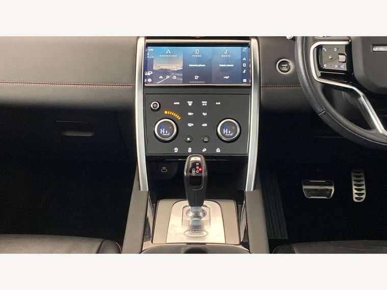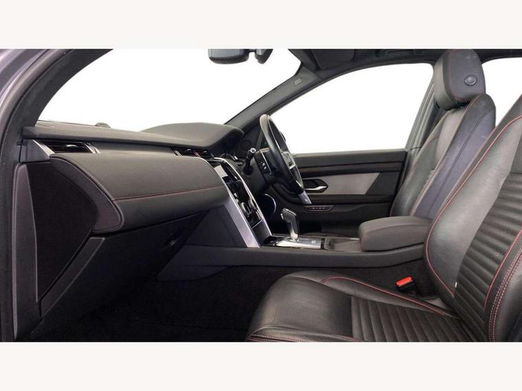 10" touch screen, 3D Surround Camera with 360 View, 180 Rear View, Front Traffic Detection, Forward Vehicle Guidance, Tow Hitch Assist and clear sight Ground View, Android Auto, Apple CarPlay, Blind spot assist, Clear exit monitor, Driver condition monitor, Front and rear parking aid, InControl remote premium, Interactive driver display, Lane keep assist, PAS, Pivi Pro connected navigation system with upgraded Infotainment, Powered tailgate/boot lid, Rear traffic monitor, Rear view camera, Service interval indicator, Traffic sign recognition with adaptive speed limiter, Trip computer, Wade Sensing, All terrain progress control, Coil suspension system, Diesel particulate filter, Terrain Response 2, Bluetooth connectivity including audio streaming, Digital Audio Broadcast radio-DAB, Steering wheel mounted audio controls, Automatic headlight levelling, Automatic headlights, Door mirror memory, Electric front/rear windows, Fixed panoramic sunroof with powered sunblind, Power fold, auto-dimming, heated door mirrors with approach lights, Rain sensing windscreen wipers, Rear fog lights, Rear side wing doors, Rear wiper, Bright metal pedals, Centre console with armrest, Front passenger isofix child seat attachment, Rear headrests, Satin chrome gearshift paddles, Sunvisors with illuminated vanity mirrors, Third row dual adjustable individual seats, Tilt/reach adjustable steering wheel, Black exterior pack - Discovery sport, Online pack - Discovery sport, 3 point seatbelts on all seats, ABS, Brake hold function, Collision mitigation braking system, Cornering brake control (CBC), Driver/Front Passenger airbags, Drivers knee airbag, Electronic brake force distribution, Electronic parking brake, Emergency brake assist, ESP + traction control, Hill descent control, Hill launch assist, Pedestrian airbag system, Rear seat ISOFIX, Side and curtain airbags for front and 2nd row seats, Trailer stability control, Tyre pressure monitoring system, Battery Back Up System (BBUS) with tilt sensor, Intrusion sensor, Locking wheel nuts, Centre stack rails in noble chrome,