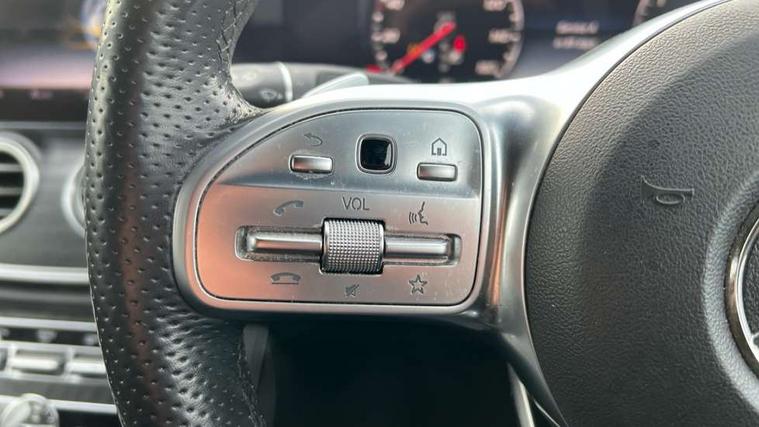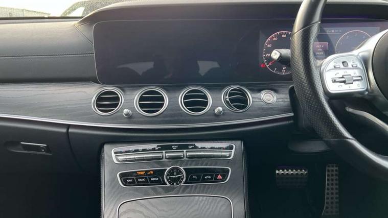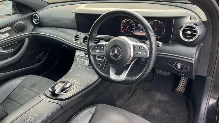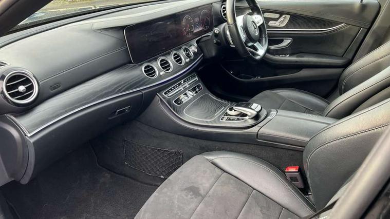 Active parking assist and 360 camera, Analogue clock, Attention assist, Blind spot assist, Boot release from drivers seat, Brake wear warning light, COMAND online HDD navigation with media interface with 12.3 inch colour display, WLAN/Wi-Fi hotspot, Car-to-X Communication, Cruise control with variable speed limiter, Direct steer speed sensitive steering, DYNAMIC SELECT with a choice of driving modes (ECO, Comfort, Sport, Sport+ and Individual), Mercedes connect me, Multi function trip computer, Outside temperature display, Remote boot release, Service indicator (ASSYST), Smartphone integration via Android Auto/Apple CarPlay, Media Interface, USB and Bluetooth interface, Status display for rear seat belts in instrument cluster, Stop/start system, Touchpad with control wheel, Traffic sign assist, Wireless charging, 25 litre AdBlue tank, 66 litre fuel tank, 8m charging cable for household socket, 8m charging cable for wall box/charging stations, Agility control sports suspension with selective damping system and lowered by 15mm, Diesel particulate filter, Incorrect fuelling protection, 2 USB ports in centre console, 2 USB ports in the rear, DAB Digital radio, Adaptive brake lights, Aerial integrated in rear window, AMG bodystyling front and rear aprons and side skirts in polished aluminium, Body colour bumpers, Body colour door handles, Body colour door mirrors, Charging access point below offside rear light, Electric windows with one touch opening/closing and obstruction sensors, Electrically adjustable and heated door mirrors, Front LED fog lights with cornering function, LED rear lights, MULTIBEAM Intelligent Light System with Adaptive Highbeam Assist, Polished aluminium waistline, Pre-installation for roof rail systems, Privacy glass (rear side windows and rear screen), Radiator grille with integral star and 2 louvres in matt iridium silver with chrome trim, Rain sensor windscreen wipers, Rear wiper, Top surround of side windows in polished aluminium, Visible twin exhaust tailpipe in bumper, 3 spoke flat bottom AMG steering wheel with trimmed in black nappa leather, 40:20:40 split folding rear bench seat, Artico man-made leather/Microfibre Dinamica upholstery, Auto dual-zone climate control system, Auto Mercedes-Benz child seat recognition sensor, Chrome door pins, Courtesy lights in rear grab handles with reading light functionality, Electric height/reach adjustable steering column, Floor mats with AMG lettering, Four way partially front electric seat adjustment, Front and rear door pockets, Front centre armrest with storage compartment, Front door sills with illuminated Mercedes lettering, Glasses compartment in overhead control panel, Head restraints for driver and front passenger (four-way adjustability) and in rear (two-way), Heated front seats, Interior lighting - 64 colour Ambient lighting, Interior rear light/integral reading lights, Lockable/illuminated air conditioned glovebox, Silver door pins, Sports pedals in brushed stainless steel with black rubber studs, Steering column electrically adjustable for height and reach, Steering wheel multifunction with gearshift paddles, Steering wheel touch control buttons for audio and onboard settings, Storage compartment with 12V socket in centre console, Sunvisors with illuminated vanity mirrors, Memory pack - E Class, Mirror pack - E Class, Parking package including 360 degree camera - E Class, Seat comfort pack - E Class, Stowage pack - E Class, 3x3 point rear seatbelts, Active bonnet, Active brake assist, Adaptive brake system with HOLD function and brake drying in the wet, Anti-lock braking system (ABS), Black seat belts, Childproof locks manually operated for rear doors and electrically operated for rear power windows, Driver and passenger side/thorax airbags, Driver/front passenger airbag, Drivers knee airbag, Electronic parking brake, Electronic Stability Programme, Hill hold assist, Hill start assist, ISOFIX child seat attachment points two outer rear seats, Perforated front brake discs with "Mercedes-Benz" lettering, Pre-Safe anticipatory safety system, Seat occupancy sensor, Seatbelt warning, Tyre pressure monitoring system, Warning triangle and first aid kit, Window airbags, Alarm system/interior protection/immobiliser, Central locking with interior switch, automatic locking and crash sensor with emergency opening function, Chrome surround in electric key, Keyless start, Black open pore ash wood dashboard and door trim + Centre console in black open pored ash wood, Contrast stitching, 18" AMG 5 spoke light alloy wheels painted in titanium grey with high sheen finish,