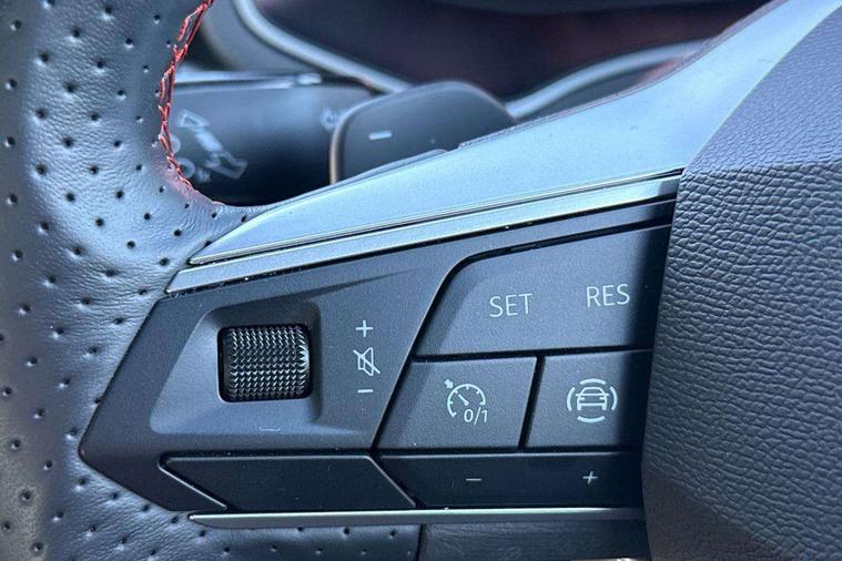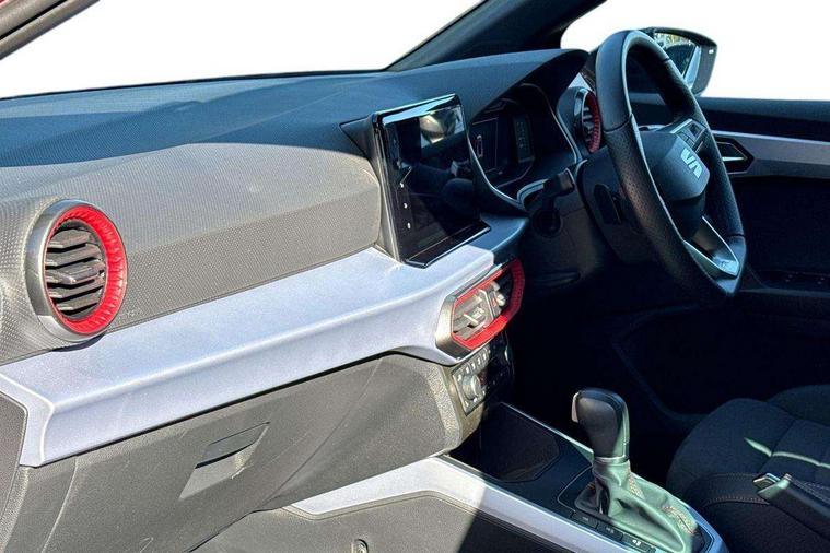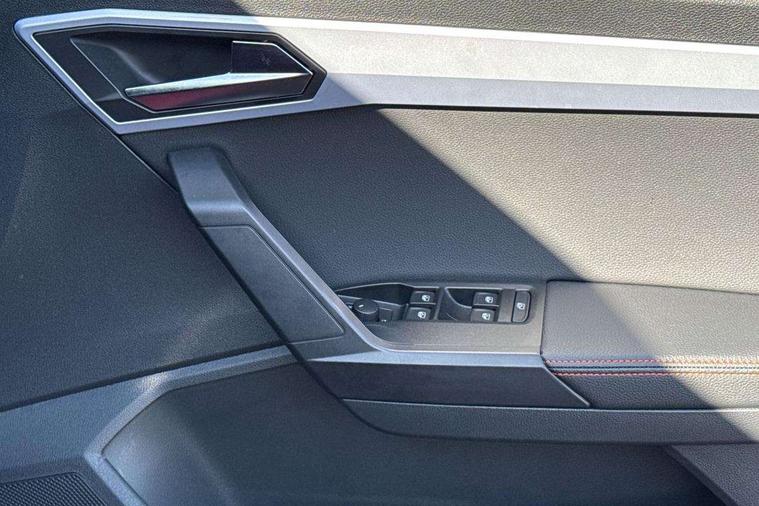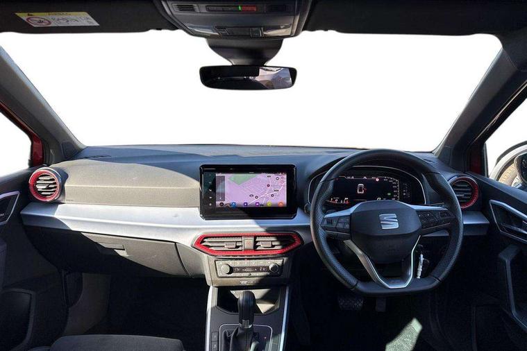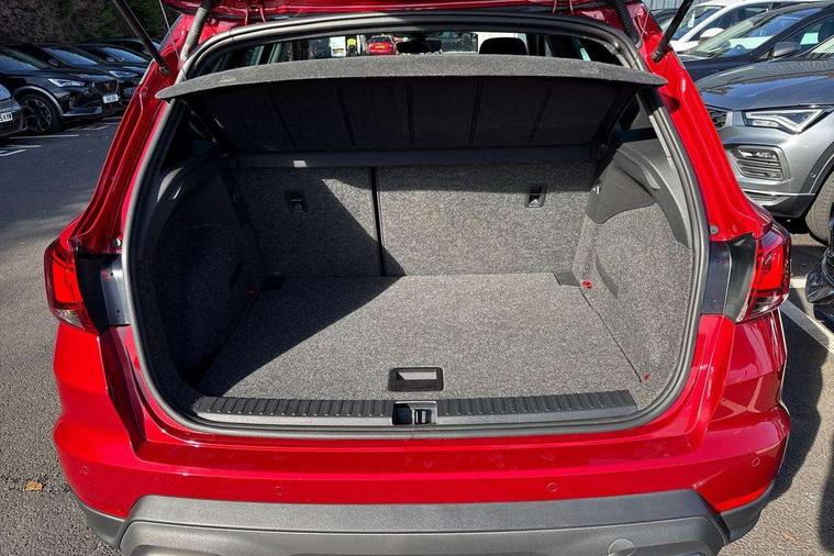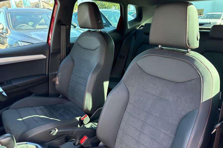 'Lights On' Reminder warning buzzer, 10" Digital cockpit, Digital clock, E-call, Electric speed sensitive power steering, Full link smartphone integration with mirror link, wireless apple carplay, Google android auto + USB Type C cable for apple and android devices, Lane keeping system, Low fuel warning light, Outside temperature display, RPM counter, SEAT Drive profile - Four different models normal-sport-eco-individual, steering response, throttle response and gear shifts mode, Trip computer, Wireless phone charger, 6 speakers, 9.2" colour touchscreen with navigation system, voice control and USB port (type c), Bluetooth interface for hands free and audio streaming, DAB digital radio and AM/FM radio, Steering wheel mounted audio controls, Anti theft roof antenna, Auto dimming interior rear view mirror, Automatic activation of hazard warning lights, Body coloured bumpers, Body coloured door handle inserts, Chrome roof rails and window surrounds, Dark tinted rear windows, Electric front/rear windows, Electrically adjustable, heated and folding door mirrors, Front fog lights with cornering function and rear fog light, FULL LED automatic headlights with dynamic headlight range control, coming and leaving home, LED daytime running lights, LED rear tail lights and licence plate lights, Protective side mouldings, Rain sensing wipers, Rear side wing doors, Rear spoiler, Rear window wash/wipe, Roof colour door mirrors, Third brake light, Twin exhaust pipe styling hidden exhaust pipe, Visible VIN plate, 2 cupholders, 3 seat bench in 2nd row, 60/40 split folding rear seat, Aircare filter, Black interior roof, Double boot floor, Driver sunvisor with covered mirror + card holder, Dual zone climate control, Front comfort seats, Front courtesy light with front reading lights, Front seat back storage pockets, Gear shift indicator, Heated front seats, Height adjustable front seats, Height/reach adjustable steering column, Illuminated air vent surrounds, Illuminated boot, Instrument lighting with brightness control, Interior ambient lighting, Interior light in footwell, central console and door panel, ISOFIX points in outer rear seats with top tether anchorage points, Microsuede cloth upholstery, Passenger sunvisor with vanity mirror, Perforated flat bottomed leather steering wheel/gear knob/handbrake with red stitching and FR logo, Potentiometer, Single front passenger seat, Steering wheel mounted gearshift paddles, Two front and three rear height adjustable headrests, Interior chrome pack - Arona, Safe and driving pack (S) - Arona, 3 point seatbelts on all rear seats, ABS, Active front headrests, Child locks on rear doors, Driver and front passenger airbags with front passenger airbag de activation, front side and curtain airbags, Emergency Brake Assist (EBA) and front assist, Front and rear seatbelt reminder, Hill hold control, Multi-Collision braking, Tiredness recognition system, Traction control, Tyre pressure monitoring system, Alarm with back up horn with tow away protection, Deadlock, Electronic engine immobiliser, Locking wheel bolts, Remote central locking, Titan black dashboard, 18" Performance Cosmo grey matt alloy wheels,