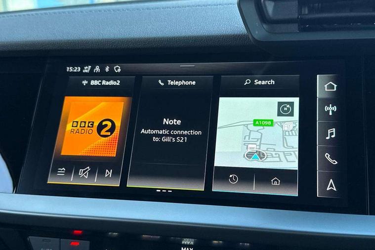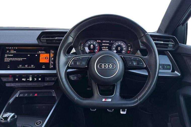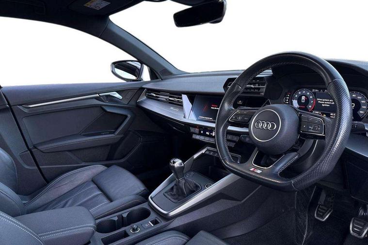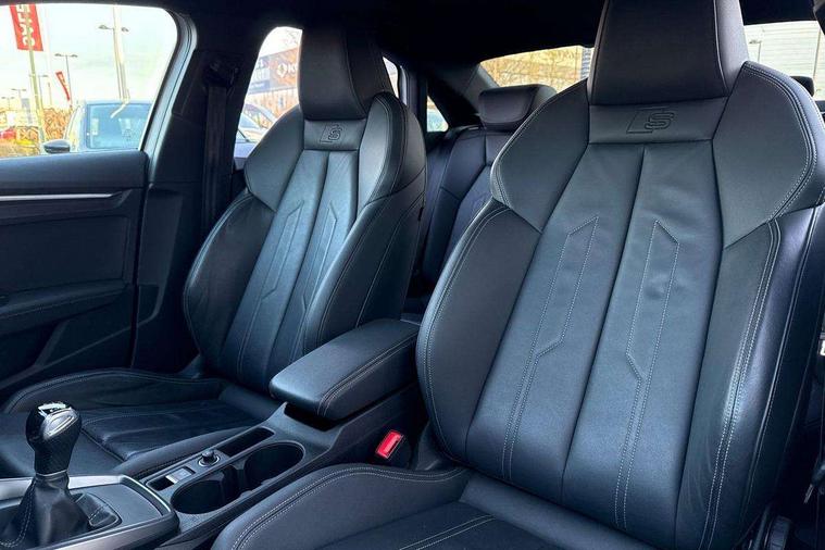 Apple CarPlay, Audi connect safety and service (e-call), Audi drive select, Audi lane departure warning, Audi side assist, Audi smartphone interface, Audi Virtual Cockpit - 10.25" display, Bluetooth interface, Camera based traffic sign recognition, Cruise control + speed limiter, MMI Navigation Plus with high resolution 10.1 inch touchscreen colour display, Power opening/closing tailgate, Progressive steering, Rear parking sensors, Service interval indicator, Start stop system with recuperation, Voice control system with natural language interaction, Sports suspension, 1 x USB type C and 1 USB type A charging points, 6 speakers, DAB digital radio module, Acoustic windscreen, Aluminium roof rails, Aluminium window trim, Auto dimming frameless rear view mirror, Body coloured bumpers, Electrically folding, adjustable and heated door mirrors with integrated LED side indicators and kerb view function for passenger side, Front and rear electric windows, Front fog lights, Front side air inlets in matt platinum grey, Front spoiler blade in matt platinum grey, Grille vertical bars in aluminium silver/Matt, High gloss black finish B and C pillars, LED headlights with LED daytime running lights and dynamic rear indicator, LED rear lights, Privacy glass, Rain and light sensors, Rear diffuser strip in matt titanium black, S Line badge on wings, S Line front and rear bumpers, Side skirt insert in matt Platinium grey, Silver chrome grille surround, Titanium black radiator grille, 12V socket in rear centre console, 40:20:40 split folding rear bench seat, 60:40 forwards/backwards position and backrest angle, Adjustable rear seat bench/backrest with centre armrest and cupholder, Aluminium door sill trims, Black cloth headlining, Dual zone electronic climate control, Front and rear black floor mats with contrast stitching in rock grey, Front and rear headrests, Front and rear roof module including reading lights, Front centre armrest with storage compartment and angle adjustment, Glove compartment lighting, Height and reach adjustable steering wheel, Illuminated door sill trims with S logo, ISOFIX child seat mounting and Top Tether with front passenger airbag deactivation, Luggage compartment light, Manual front seats with height adjustment, Perforated leather gearknob, Stainless steel luggage compartment sill finisher, Stainless steel pedals, Non smoking pack - Q3, 3x3 point rear seatbelts, 6 airbags - Driver, front passenger, curtain and side windows, Electrically operated child locks on rear doors, Electromechanical parking brake, Electronic stabilisation control including ABS, ASR and EDL, Hill descent control, Hill hold assist, Pre sense basic, Seatbelt monitoring, Tyre pressure warning, Warning triangle and first aid kit, Anti theft alarm, Anti theft wheel bolts, Audi pre-sense front with pedestrain and cyclist recognition, Remote central locking, Dark matt brushed aluminium inlay, Leatherette door armrest, MMI touch colour display in gloss black with aluminium surround,