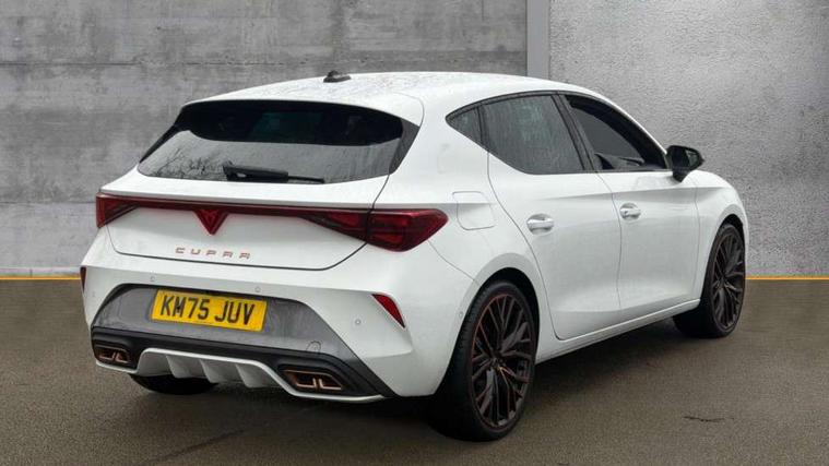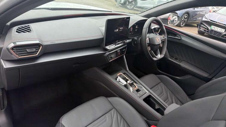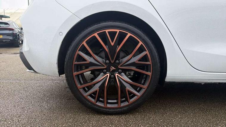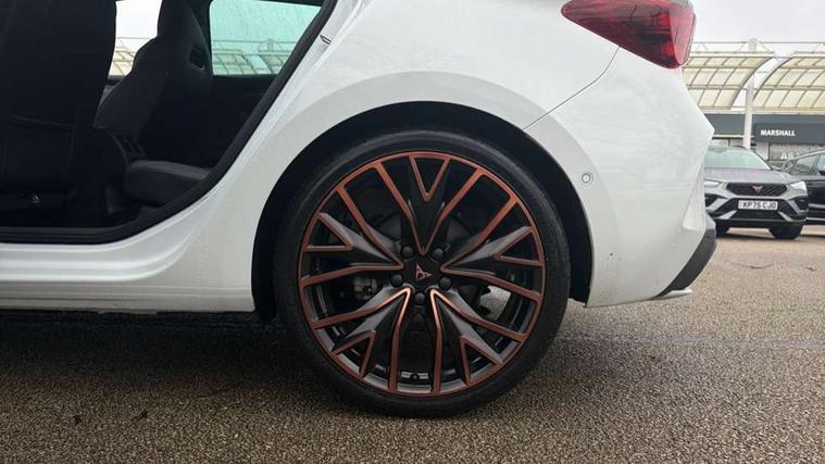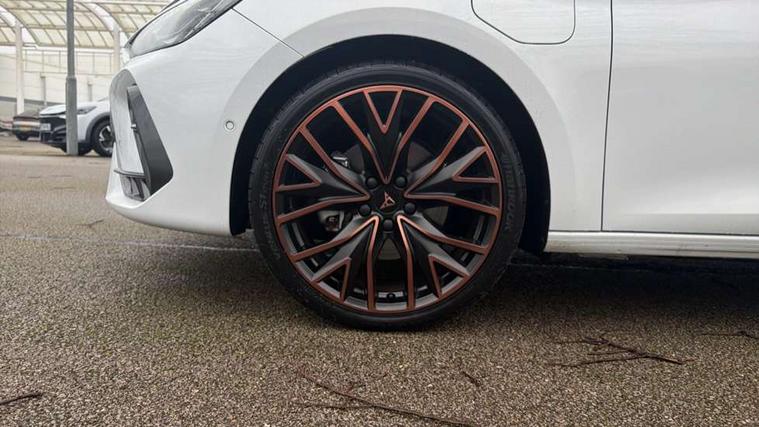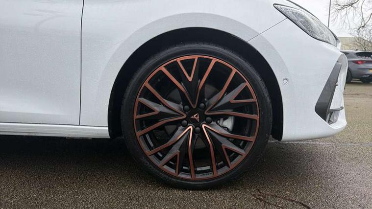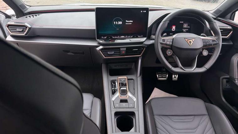 Adaptive cruise control with follow-to-stop and speed limiter, CUPRA drive profile selection with (Comfort/Performance/Individual), throttle response and gearshift mode, Digital cockpit, Driver alert system, Dynamic road sign display, E-call, Front and rear parking sensors, Front assist with forward collision warning braking reaction to vehicles, pedestrians and cyclists, Front cross traffic assist, Full link smartphone integration with Mirror Link, wireless Apple CarPlay and wired Google Android Auto, Intelligent park assist, Lane change assist with emergency assist, Lockable tailgate, Rear view camera, RPM, trip computer, outside temp gauge, instrument light brightness, low fuel warning light, lights on reminder, gearshift indicator, Service interval indicator, Side and exit assist, Start/stop system with regenerative braking, Wireless phone charger, 10 amp mode 2 charging cable, 16 amp mode 3 charging cable, Auxiliary input socket, Auto dimming rear view mirror, Body colour door handles, Body coloured bumpers, Cupra sports bumpers, Dark tinted rear windows, Electric front/rear windows, Electrically adjustable, heated and folding door mirrors, High beam assist, LED front fog lamps with cornering function, LED headlights with dynamic turn signals, tail lights, rear fog lights with rear coast to coast lighting, LED rear fog lamp, Rain sensing wipers, Rear diffuser with copper simulated exhaust pipes, Rear side wing doors, Rear wash/wipe, Separate daytime running light with automatic headlight control and coming home feature, Third brake light, Welcome light with logo projector in door mirrors, 12v power supply in centre console, 3 seat bench in 2nd row, 5 headrests, 60/40 split rear bench seat with armrest, Ambient lighting (glovebox, footwell, ambient lighting multicoloured), Black headlining, Cupra sports pedals, CUPRA Supersports, heated steering wheel with satellite buttons, Electrically adjustable driver seat and lumbar support with memory function + manually adjustable passenger seat, Folding boot cover, Four x USB Type C ports (2 in front and 2 in rear), Front and rear reading lights X 4, Front centre armrest, Heated front seats, Height/reach adjust steering wheel, Illuminated interior front door sills, Interior wraparound lighting, ISOFIX points in outer rear seats with top tether anchorage points, Leather upholstery, Single front passenger seat, Storage pockets on rear of front seats, Sunvisors with illuminated mirror, Three zone climate control, Dynamic and comfort pack - Leon Cupra, Media system plus with 12.9" display + navigation pack - Leon Cupra, 3 point seatbelts on all rear seats, ABS, Brake control system - ESC and brake booster, Child proof door locks, Cupra black brake calipers, Disc brakes in front, Driver and front passenger airbags with front passenger airbag de-activation, front side and curtain airbags, Electronic parking brake, Hill hold control, Pre-crash front and rear seat belt tensioner, window closure and hazard lights, Rear disc brakes, Seat belt reminder for front and rear seats, Tiredness recognition system, Tyre pressure monitoring system, Anti theft alarm system with interior monitoring in cab, backup horn and towing protection, KESSY Advanced - Keyless start, keyless entry, Locking wheel bolts, Chrome and copper interior detailing, Breakdown kit, Tool kit,