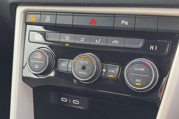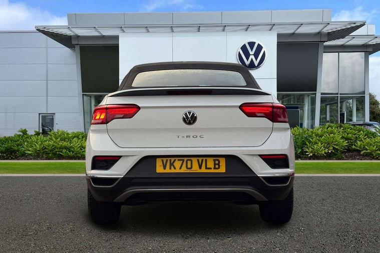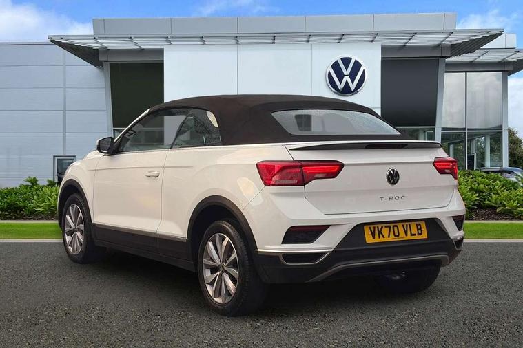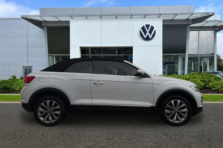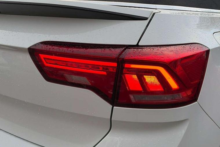 8" colour touch screen, Adaptive cruise control, Bluetooth telephone and audio connection for compatible devices, Brake pad wear indicator, Car information display, Driver alert system with fatigue detection, Driver profile selection including ECO function, Driver tips and journey analysis, Dynamic road sign display, Emergency call service, Front assist, radar sensor controlled distance monitor, city emergency braking + predictive pedestrian protection, Lane assist with warning text instrument cluster, Mobile phone interface, Modified key software - reduce switch off time for key status change to Long no motion, Multifunction computer with visual gear change recommendation for fuel consumption, Navigation system discover media including streaming and internet, Online services, Power assisted speed sensitive steering, Service interval indicator, Start/stop system with brake energy recovery, Wired and wireless app connect, Standard suspension, Bluetooth - Simultaneous pairing of 2 compatible mobile devices, DAB Digital radio, Diversity antenna for FM reception, Front USB type C Interface 2X and USB charging socket, Music playback - MP3, WMA and AAC files, SMS functionality - read, compose and send SMS messages using touch-screen display, Title and cover art display, WeConnect plus, Auto dimming interior rear view mirror, Automatic hazard lights activation under emergency braking, Automatic headlamp activation with manual coming home and automatic leaving function, Black door handles, Body colour bumpers, Body colour rear roof spoiler, Chrome effect left and right trapezoid exhaust tailpipe fascia surround, Chrome trim on upper and lower radiator grille, Dusk sensor, Electrically power adjustable, heated, folding, auto dimming, front passenger exterior door mirror lowering function, Front and rear electric windows, High level 3rd brake light, LED rear number plate lights, LED tail lamp rear comination lamps, Power operated canvas convertible top, Rain sensor, Rear fog lamp, Volkswagen roundel, Windscreen wiper with intermittent wipe light, 12V socket in centre console storage area, 2 front reading lights, 50/50 rear seat bench split folding rear seat backrests, Chrome plated radiator grille inserts, air vent surrounds and light switch surrounds in interior, Climate control - 2 zone electronic air conditioning with automatic air recirculation and allergy filter, Entry aid easy entry (Front folding seats), Front + rear carpet mats, Front centre armrest, Front comfort seats with manual height adjustment, Front cupholders x 2, Front seat back storage pockets, Glove Compartment with light, Height/reach adjust steering wheel, Illuminated vanity mirrors in sun visors with air bag label on sun visor and b-pillar, Instrument lighting, white adjustable panel illumination, Interior light delay, Interior light in footwell, Interior white ambient lighting and surround lighting, Isofix easy fit child seat preparation for 2 outer rear seats, Leather wrapped multifunction steering wheel, Luggage compartment lighting, Rear head restraints, Standard pedal cluster, Storage compartments in driver and front passenger doors, 2 x 3-point rear seatbelts, ABS, Autonomous emergency braking, Driver and front passenger safety-optimised head restraints, Driver/Front Passenger airbags, Drivers seatbelt reminder, Electronic parking brake with auto hold, Electronic stability control (ESC) includes ASR, EDL, EDTC and trailer stabilisation function, Front passenger airbag deactivation, Front side airbags, Pedestrian monitoring, Rigid safety cell with front and rear crumple zones, Single tone horn, Three point height adjust front seatbelts + pretensioners, Tyre pressure monitor, Ventilated front and rear disc brakes, Volkswagen roadside assistance, Alarm with interior protection and deactivation via infotainment system, Electronic engine immobiliser, Dashboard unicolour out of hard material including decorative insert 1st line different colours chooseable,