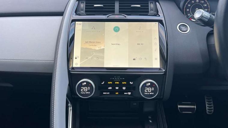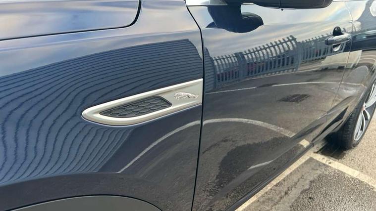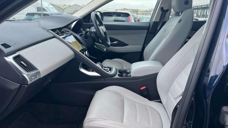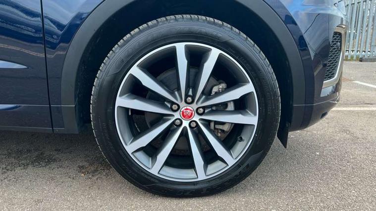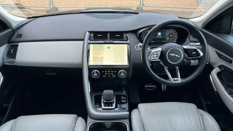 11.4" touchscreen with central ICP, 12.3" full digital instrument panel, Adaptive cruise control, Android Auto, Apple car play, Blind spot assist, Driver condition monitor, Eco driving style assistant, Electric power assisted steering, Emergency services call system, Front and rear parking aid, InControl remote, Jaguar drive control with adaptive surface response, Jaguar Toggle sport shift selector, Lane keep assist, Outside temperature gauge, Pivi pro connected infotainment system with smart settings and navigation pro, Push button start, Rear collision monitor, Rear traffic monitor, Speed proportional steering, Traffic sign recognition with adaptive speed limiter, Trip computer, Voice control system, 7 kW onboard charger, Configurable dynamics, Electric rear axle drive, Home charging cable Mode 2, Large fuel tank, Passive suspension, Public charging cable Mode 3, AM/FM DVD MP3 radio, Bluetooth connectivity including audio streaming, DAB digital audio broadcast, Dynamic volume control, 3 flash lane change indicators, Approach Illumination, Auto high beam assist, Automatic headlights, Body colour door handles, Body colour door mirrors, Body colour front and rear lower bumper main moulding and lower side cladding, Body colour upper spoiler, Body coloured side sills, Centre high-mounted stop light, Dark satin grille tips, Electric front/rear windows with one touch/auto up/down, Electric heated/power fold memory door mirrors with approach lights and auto dimming driver side, Embossed leaper for grained and windsor leather, Heated washer jets, Heated windscreen, Jaguar script and leaper, LED tail lights, LED third brake light, Narvik black antenna pod and side pillar finisher, R Dynamic badge, R Dynamic body colour bumpers, Rain sensor windscreen wipers, Rear fog lights, Rear side wing doors, Rear wash wiper, Satin black grained front outer grille, low grill mesh and low bumper valence, side fender vent mesh and finisher, rear tow eye cover and grille mesh, Twin exhaust tailpipe, Variable front intermittent wipers, 3 rear head restraints, 3 seat bench in 2nd row, 40:20:40 rear seat fold, Bright metal pedals, Carpet mats, Centre console with armrest, Enhanced ambient lighting, Hooks loadspace, ISOFIX on outer rear seats, Loadspace cover, Loadspace light, Loadspace storage net, Luggage tie-downs in loadspace, Manual height/reach adjust steering wheel, Multifunction steering wheel, Overhead lighting console, Passive front head restraints, Power sockets, R-Dynamic branded leather steering wheel, Rear air vents, Rear bench seats, Satin chrome gearshift paddles, Single front passenger seat, Sunvisors with illuminated vanity mirrors, Twin front cupholders, Two zone climate control, Windsor leather upholstery + sport seats, 3x3 point rear seatbelts, ABS, All surface progress control (ASPC), Child locks on rear doors, Customer configurable autolock, DSC - Dynamic Stability Control, Electronic brake force distribution, Electronic parking brake, Emergency brake assist, Emergency braking, Front airbags with passenger seat occupant detector, Front and rear curtain airbags, Front and rear seatbelt reminder, Front passenger airbag deactivation, Front seatbelt pretensioners, Front side airbags, Height adjustable front seatbelts, Hill start assist, Low friction launch, Power child locks, Torque vectoring brake, Tyre pressure monitoring system, Intrusion sensor and alarm, Keyless entry, Locking wheel nuts, Remote central locking,