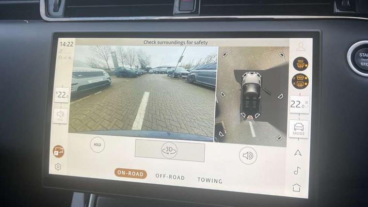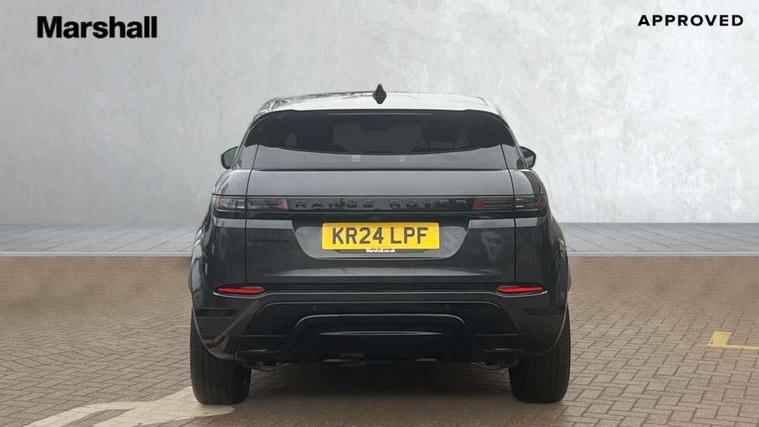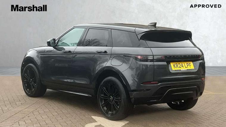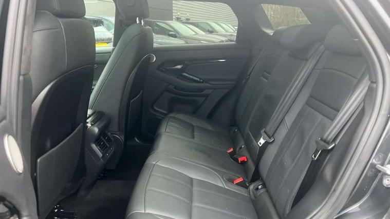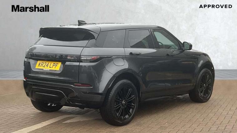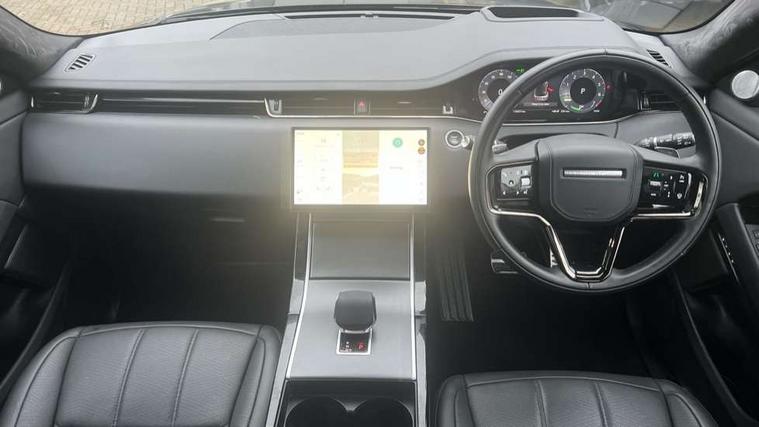11.4" touch screen, 3D 360 degree surround camera with wade sensing, Adaptive cruise control, Android Auto, Apple car play, Blind spot assist, Bluetooth connectivity, Brake pad wear indicator warning light, Driver condition monitor, eCall emergency system, Eco mode, Electronic power assisted steering (EPAS), Front and rear parking aid, Head up Display, InControl remote, Interactive driver display, Land Rover InControl apps, Lane keep assist, Pivi pro connected includes diamond pivi variant, smart settings, connected navigation pro, nuance speech licence, Powered tailgate/boot lid, Rear collision monitor, Rear traffic monitor, Traffic sign recognition with adaptive speed limiter, Voice control system, Wireless device charging, All terrain progress control, Configurable dynamics, Electric rear axle drive, Home charging cable, Large fuel tank, Passive suspension, Public charging cable, Terrain Response 2, Digital Audio Broadcast radio-DAB, Steering wheel mounted controls, Acoustic laminated windscreen, Auto headlights, Automatic headlight levelling, ClearSight interior rear view mirror, Electric windows with one touch open/close and anti trap, Flush deployable exterior door handles, Front and rear recovery eyes, Front fog lights, Heated rear window with timer, Heated washer jets, Heated windscreen, Pixel LED headlights with signature DRL and LED tail Lights, Power fold, auto-dimming, heated door mirrors with approach lights and auto dimming driver side, Rain sensing windscreen wipers, Range rover branding illuminated metal tread plates in loadspace and row 1 with brand name script and metal in row 2, Rear animated directional indicators, Rear fog lights, Rear side wing doors, Rear wiper, Side repeater indicators in mirror, Sliding panoramic roof with powered sunblind, Tailgate spoiler, Third brake light, Winter wiper park position, 14 way driver memory electric front seats with 2 way manual headrests + 4 way lumbar support, bolsters, 40:20:40 split folding rear seats with centre headrest and armrest, Ambient interior lighting, Bright metal pedals, Cabin Air Purification plus, Configurable cabin lighting, Customer configurable single point entry, Electrically adjustable steering column with memory function and easy entry/exit, Front and rear cupholders, Heated and cooled front seats, Heated rear seats, Heated steering wheel, Isofix system on outer rear seats, Overhead lighting console, Overhead stowage for sunglasses, Passive front head restraints, Premium carpet mats, Rear air vents, Rear head restraints, Satin chrome gearshift paddles, Single passenger seat, Sunvisors with illuminated vanity mirrors, Twin sliding front centre armrest, Online pack with data plan - Evoque, Power socket pack 2 - Evoque, 3 rear 3 point seatbelts, Anti-lock braking system (ABS), Brake hold function, Customer configurable autolock, DSC - Dynamic Stability Control, Electronic brake force distribution, Electronic parking brake, Electronic traction control, Emergency braking, Front and rear seatbelt reminder, Hill descent control, Hill launch assist, Low traction launch, Occupant protection assist, Passenger seat occupant detector, Power operated child locks, Roll stability control, Six airbags - Driver and passenger airbags/driver knee airbag/front side airbag and curtain airbags, Torque vectoring brake, Tyre pressure monitoring system, Alarm, Immobiliser, Intrusion sensor, Keyless entry, Locking wheel nuts, All season tyres,
