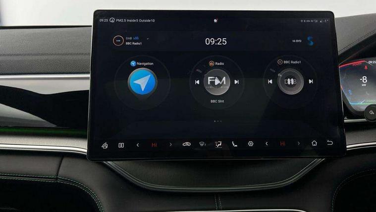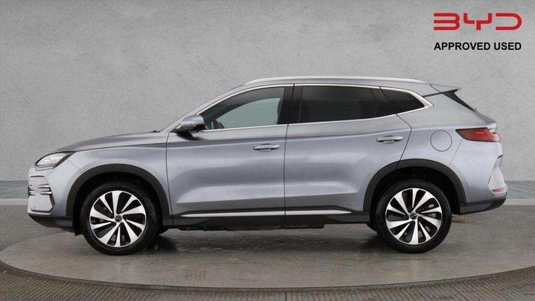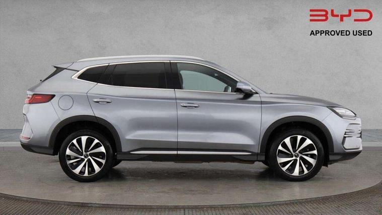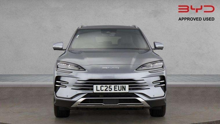 12.3" TFT full LCD instrument panel, 360 camera, Adaptive Cruise Control (ACC) and Intelligent Cruise Control (ICC), Automatic vehicle hold, Blind spot detection, BYD voice control assistant "Hi, BYD", Controller Deceleration Parking (CDP), Drive mode select (Eco, normal, sport, snow), e-Call (emergency call), Electric tailgate release, Emergency Lane Keeping Assist (ELKA), Forward collision warning, Front and rear parking sensors, Front cross traffic alert and front cross traffic brake, Head up Display, Indirect driver fatigue management, Intelligent Speed Limit Control (ISLC), Keyless system entry and start, Lane change assist, Lane Departure Assistant (LDA) and Lane Departure Warning (LDW), Lane departure prevention, PAS, Predictive collision warning, Rear collision warning, Rear cross traffic alert and rear cross traffic brake, Rollover Control System (RMI), Smartphone wireless charging, 2 x 15W, Traffic sign recognition (TSR), Vehicle-to-Load (V2L) function, 11kW on board charger, Mode 3 Type 2 charging cable (3 phase), V2L (Vehicle to load) power strip - Type F, 15.6" Electrically rotatable touchscreen, FM/DAB+ radio, Front USB ports, 1 x 18W Type C, 1 x 60W Type C, Infinity sound system with 10 speakers, Rear USB ports, 2 x 18W Type C, Aluminium roof rails, Auto dimming interior rear view mirror, Auto headlamps (on/off), Dynamic welcome lights, Electric folding and heated door mirrors, Emergency tow hook, Exterior mirror footlights, Follow me home headlights (The headlights turned on in advance and delayed off function), Front windscreen, UV protection, thermal insulation and sound proofing, High beam assist, LED 3rd brake light, LED daytime running lights, LED Headlights, LED taillights, One touch electric front/rear windows with pinch protection, Panoramic sunroof with anti-pinch sensor and electrically adjustable sunshade, Rain sensor windscreen wipers, Rear fog lights, Rear side wing doors, Rear window and rear windscreen with tinted glass, Rear wiper, 12V power outlet, 3 seat bench in 2nd row, 8 way electrically adjustable drivers seat, Adjustable rear headrests, Boot parcel shelf, Driver and passenger sunvisors with illuminated vanity mirrors, Driver seat memory function, Front centre armrest with 2 cupholders, Front LED reading lights, Front passenger seat with 4-way electric adjustment, Front seat footlights, Heat pump, Heated front seats, Heated steering wheel, Integrated headrest in front seats, ISOFIX and i-Size for front passenger and outer rear seats, LED front door lights, Nylon floor mats, PM2.5 air filter, PM2.5 air purification system, Rear air vents, Rear armrest with 2 cupholders, Rear side LED reading lights, Rhythm-reactive multi-colour ambient lighting, Single front passenger seat, Split folding rear seats - 40/60, Vegan leather multifunction steering wheel, Vegan leather upholstery, Ventilated front seats, 3x3 point rear seatbelts, ABS/EBD, Automatic emergency braking system, Brake override system (BOS), Child presence detection, Comfort stop, Door open warning, Driver airbag, Electric parking brake, Force limiting pre-tensioned front seat belts, Front centre airbag, Front passenger airbag, Front passenger airbag deactivation, Front side airbags, Hill descent control, Hill hold control, Hydraulic Brake Assist (HBA), Hydraulic brake boost, Mechanical child safety lock, Rear middle seat force limiting seat belt, Rear seat belt pretensioners, Reflective vest, Side curtain airbags, Traction control system (TCS), Tyre pressure monitoring system (TPMS), Vehicle Dynamics Control System (VDC), Warning triangle, 2 x Smart keys, Anti theft alarm system, Automatic door locking, 19" Bi-colour alloy wheels, Tyre nut covers remover, Tyre repair kit,