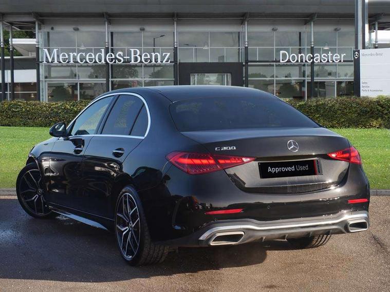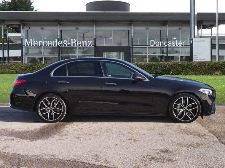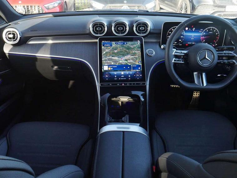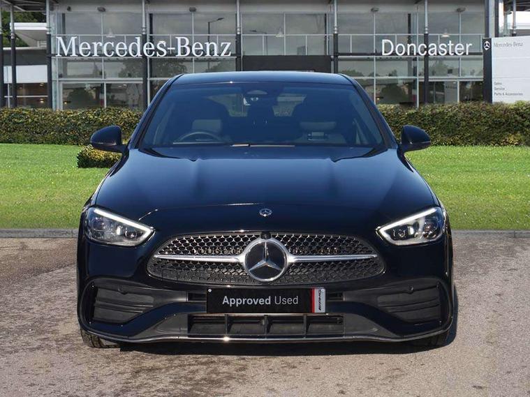 11.9" high resolution multimedia colour display, 12.3" digital instrument cluster display, Active blind spot assist, Active brake assist plus, Active lane keeping assist, Attention assist, Cruise control with speedtronic variable speed limiter, DYNAMIC SELECT with a choice of driving modes (Comfort, ECO, Sport, Sport+, Individual), E-call, Extended MBUX functions, Finger print sensor, Fluorescent jacket for driver, MBUX augmented reality for navigation, MBUX navigation premium, MBUX voice control activated by keywords "Hey Mercedes", Mercedes connect me, Mercedes me remote services, Outside temperature gauge, Pre-installation for digital key transfer, Remote boot release, Service indicator (ASSYST), Smartphone integration, Speed limit assist, Sports direct steer speed sensitive steering, Status display for rear seat belts in instrument cluster, Traffic sign assist, Wireless charging system for mobile devices, 66l fuel tank with increased capacity, 9G TRONIC 9 speed automatic transmission, Agility control sports suspension and lowered by 15 mm, Petrol Particulate Filter, Sporty engine sound system, DAB Digital radio, MBUX multimedia system, Adaptive brake lights, Adaptive high beam assist plus, AMG body styling front apron, rear apron and side skirts, AMG front bumper with sporty air intakes and chrome elements, AMG rear bumper with high gloss chrome elements, AMG side skirts in vehicle colour, B-pillar trim in glossy black, Body coloured bumpers, Body coloured door mirrors, Chrome beltline trim, Daytime running lights, Digital light LED headlamps, Electric windows with one touch opening/closing and obstruction sensors, Electrically adjustable and heated door mirrors, Green tinted glass, Heat insulating dark tinted glass, Illuminated front door sill panels, LED Indicators, LED tail lights, LED third brake light, Noise acoustic glass, Powerdomes on bonnet, Privacy glass, Radiator diamond grille with integrated Mercedes Benz star and louvre silver with chrome pins, Radio aerial integrated into rear window, Rain sensor with automatic windscreen wiper activation, Rear boot, Rear side wing doors, Two visible exhaust pipes integrated into rear bumper, 3 seat bench in 2nd row, 3 spoke flattened bottom AMG multifunction steering wheel in black nappa leather with chrome inserts and perforated leather in grip area, 40:20:40 split folding rear bench seat, Ambient lighting premium, AMG sports seats, Artico man-made leather upholstery, Audio and onboard settings control on multifunction steering wheel, Auto Mercedes-Benz child seat recognition sensor, Black air vents with silver chrome elements, Black floor mats with AMG lettering, Black roof liner, Door trim elements high gloss black with silver chrome surroundings and switches, Double cupholder in centre console, Electrically height/reach adjustable steering column, Folding rear seat backrest, Front and rear head restraints, Front centre armrest with storage compartment, Gearshift paddles on steering wheel, Heated front seats, Illuminated door sills with Mercedes Benz lettering, Illuminated glove compartment stowage, Overhead control unit in high gloss black, Rear top tether child seat ISOFIX attachment, Single front passenger seat, Sports pedals with stainless steel surfaces and rubber studs, Sunvisors with illuminated vanity mirrors, THERMATIC 2 zone automatic climate control, Interior lighting package - C Class, Memory package - C Class, Mirror pack - C Class, Parking package with 360 degree camera - C Class, Seat comfort pack - C Class, Stowage space pack - C Class, USB package plus - C Class, 3 rear 3 point seatbelts, Active bonnet pedestrian safety measure which detects an impact and raises bonnet, Adaptive brake system with HOLD function and brake drying in the wet, Anti-lock braking system (ABS), Black seat belts, Brake calipers with Mercedes-Benz lettering + perforated front brake discs, Child proof door locks, Drivers knee airbag, Drivers pelvis airbag, Dual stage driver/passenger airbags, Electric parking brake, Electronic Stability Programme (ESP), Front centre airbag between driver and front passenger seats, Front side airbags, Larger brake discs on front axle, Rear seatbelt warning indicator, Sports braking system, Tyre pressure monitoring system, Warning triangle and first aid kit, Window airbags for driver, front passenger and rear passenger, Central locking with interior switch, automatic locking and crash sensor with emergency opening function, Chrome surround in electric key, Dashcam, Keyless Go, URBAN GUARD vehicle protection (Thatcham Category 1) consisting of break-in, anti-theft alarm system (ATA), interior monitoring and tow-away protection, Artico man-made leather dashboard with contrast stitching, Centre console trim in metal weave, 19" AMG multi spoke light alloy wheels painted himalayas grey with high sheen finish, Noise reduced tyre with foam absorber, Summer tyres, TIREFIT with tyre inflation compressor,