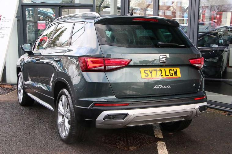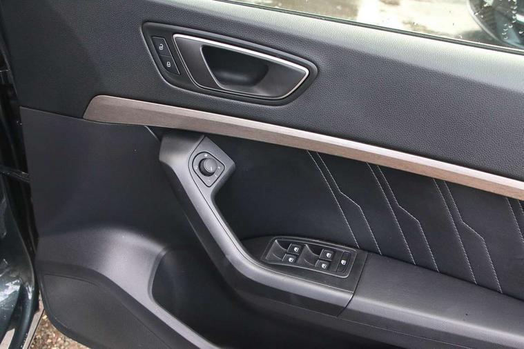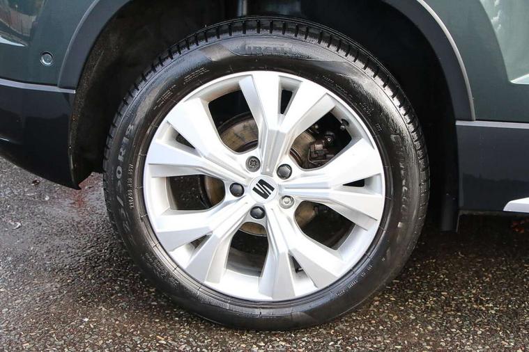 Colour multi-function on board computer display, E-call, Outside temperature gauge, Progressive power assisted steering, Rear view camera, SEAT drive profile with driving experience button - Normal, Sport, Eco, Individual, off-road and snow modes, gearshift, steering and throttle response, Self parking functionality (includes front and rear parking sensors), Trip computer, Wireless full link smartphone integration, Wireless phone charger, Steering wheel mounted audio/phone controls, Black simulated exhaust pipes, Black wheel arch surrounds, Body colour bumpers, Chrome front grille frame, Chrome roof rails, Chrome side window trim, Dark tinted rear windows, Daytime running lights, Door mirrors with welcome light silhouette, Dynamic headlight range control with self adjusting whilst driving, Electric adjustable/heated/folding door mirrors, Front and rear electric windows, Front grille hot stamping, Full LED headlamps with lens and LED front fog lamps with cornering function, Heated windscreen, Illuminated aluminium front door sill, LED rear tail lights with dynamic indicators, Rear fog lights, Rear side wing doors, Rear wash/wipe, Reflex silver side mouldings, Third brake light, 12V socket in front, 3 seat bench in 2nd row, 60/40 split folding rear seat, Drawer under right front seat, Dual zone climate control, Front and rear head restraints, Front centre armrest, Front seat back storage pockets, Height adjustable driver and passenger seat with lumbar adjustment, ISOFIX points in outer rear seats with top tether anchorage points, Leather steering wheel and gear knob, Microsuede upholstery with front comfort seats, Rear armrest and easy back seat release mechanism from boot, Single front passenger seat, Steering wheel mounted gearshift paddles, Convenience pack - Ateca, Interior lighting pack - Ateca, Navigation system pack with DAB - Ateca, Safe and driving pack with lane assist - Ateca, 3x3 point rear seatbelts, ABS, Traction control system (TCS), Electronic stability control (ESC) and Electronic differential lock system (XDS), Airbags - Driver and front passenger airbag with deactivation, front side, two curtain and driver's knee airbags, Electric parking brake with auto hold function, Front and rear seatbelt reminder, Hill hold control, Manual rear child locks, Tiredness recognition system, Traction control, Tyre pressure monitoring system, Alarm, Keyless entry, Locking wheel bolts, Chrome interior detailing, 18" Brillaint silver alloy wheels,