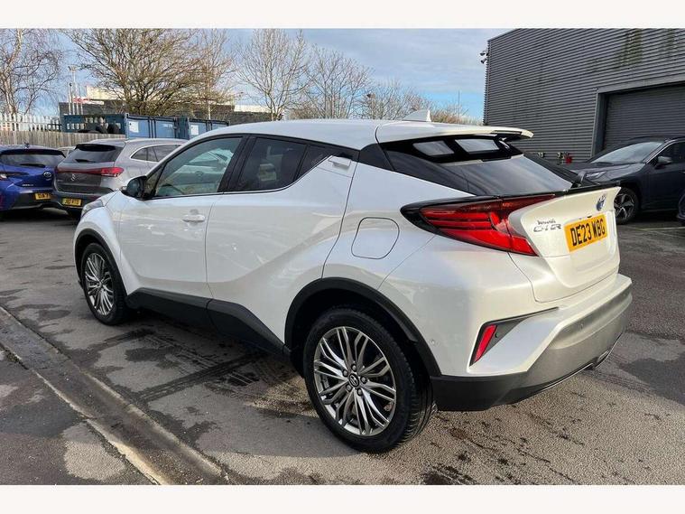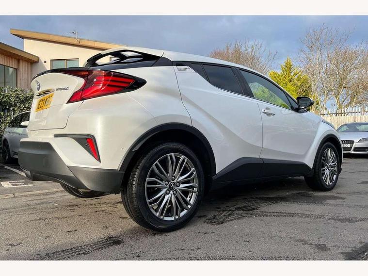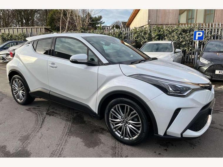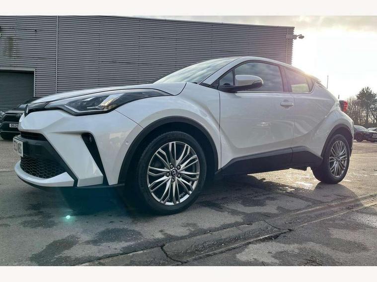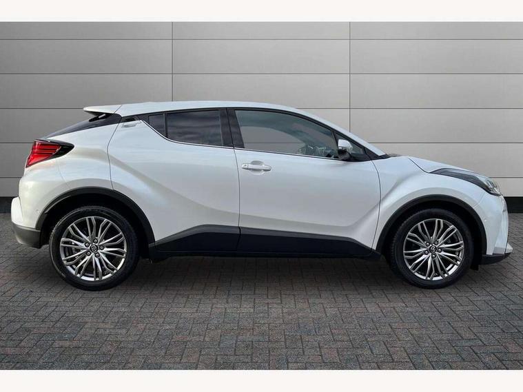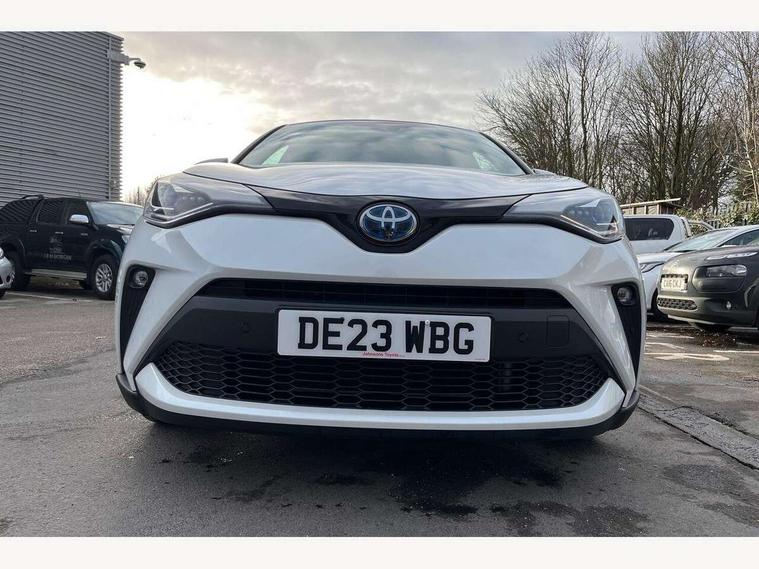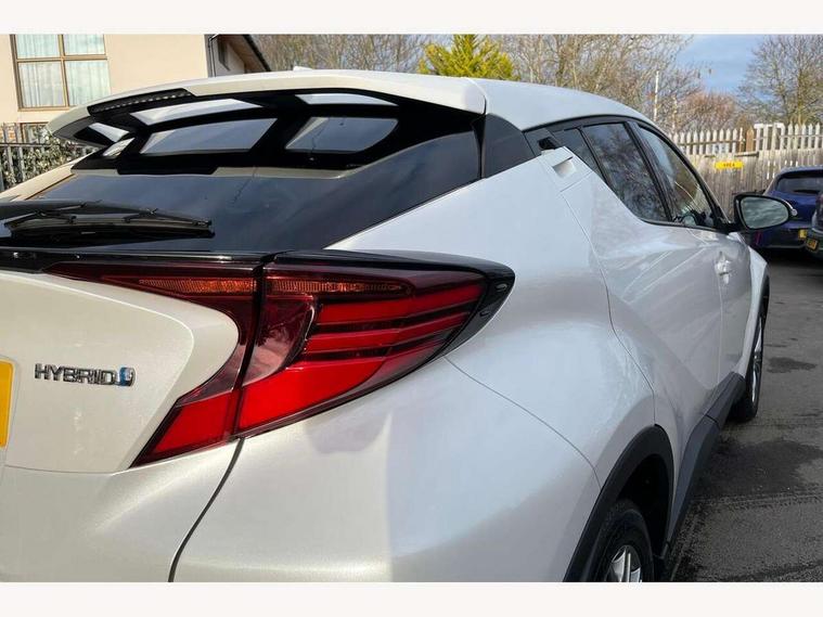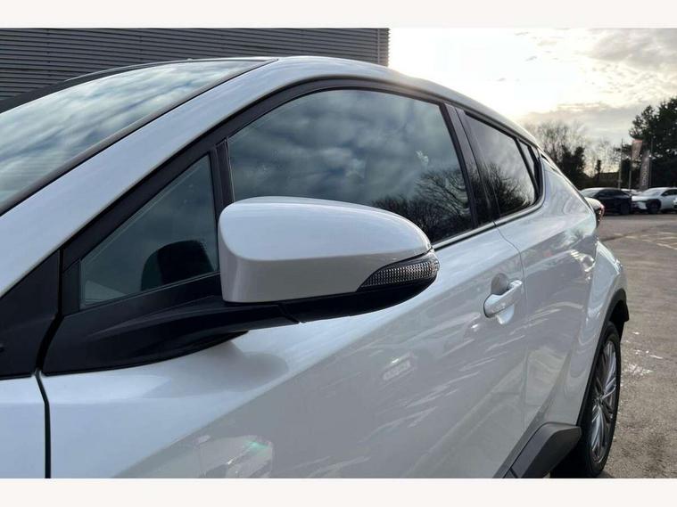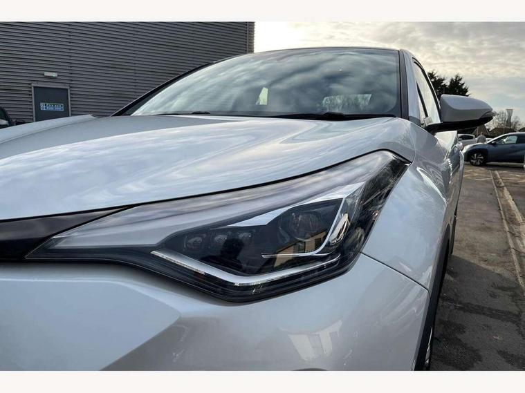 4.2" coloured TFT screen for multi-information display, Adaptive cruise control, Apple car play and Android auto, Bluetooth connectivity, E-call, Electric power steering, Hybrid system indicator, Lane departure alert with steering control, Lane trace assist, Push button tailgate release, Remote boot door release in cabin, Remote boot door release in key, Reversing camera, Road sign assist - RSA, Simple Intelligent parking assist, Smart voice assist, Touch 2 Go navigation system, Trip computer, Voice recognition, Wireless smartphone integration, Vehicle Stability Control (VSC), 6 speakers, AM/FM radio, DAB Radio (Digital Audio Broadcasting), Toyota touch 2 multimedia system with 8" display, USB connector, Wi-fi connectivity, Adaptive front light system, Adaptive LED Headlights, Anti-jam protection on power windows, Auto high beam, Auto up and down function on all power windows, Automatic headlight levelling, Automatic headlights, Automatic headlights cut-off, Black and body coloured rear bumper, Black lower front grille, Black upper front grille, Body colour door handles, Body colour door mirrors, Body colour front spoiler lip, Body coloured front bumper, Boot door release with push button, Electric heated door mirrors, Follow me home headlights, Front and rear power windows, Headlight cut off reminder, Honeycomb lower front grille, LED daytime running lights, LED fog lights, LED front light guide, LED High mounted stop light, LED rear brake lights, LED rear combination lights, Noise reduction layer on front windows and windscreen, Power adjustable door mirrors, Privacy glass, Rain sensor, Rear sequential indicators, Rear side wing doors, Rear spoiler, Rear tailgate, Rear window defogger, Rear window wiper, Shark fin antenna, UV-filter on driver and passenger windows, UV-filter on rear windows, Variable front intermittent wipers, 12v power outlet - front, 3 rear headrests, 3 seat bench in 2nd row, 3 spoke leather steering wheel, 60/40 split folding 2nd row rear seats, Adjustable rear headrests, Adjustable speed limiter switch on steering wheel, Assist grips front and centre pillar, Audio and telephone switches on steering wheel, Black front door assist grips, Blue ambient lighting on front cup holders, Blue ambient lighting on front doors, Boot light, Chrome interior door handles, Driver and front passenger personal light, Driver and front passenger Whiplash Injury Lessening seats, Driver and passenger seatback pockets, Dual zone automatic air conditioning, Floor mats, Front cupholders, Front head restraints, Front sports seats, Glovebox with internal light, Hard tonneau cover, Heated driver and front passenger seats, Heated steering wheel, Hooks for luggage holding net, Humidifying Nanoe air purifier, Illuminated entry system, Isofix attachments on outer rear seats, Leather gearshift, Light on driver sun visor, Light on passenger sun visor, Manual telescopic steering wheel, Manual tilt steering wheel, Microphone on front personal light, Mirror on driver sun visor, Mirror on passenger sun visor, Multimedia switches on steering wheel, Pollen filter, Power adjustable lumbar support on driver seat, Power tilting cushion on driver seat, Shopping bag hooks, Single front passenger seat, Slow opening on lower glovebox, Voice recognition switch on steering wheel, Leather pack - C-HR, Tech with parking sensor pack - C-HR, 16 Disk front wheel brake, 3x3 point rear seatbelts, ABS+EBD+Brake assist, Electronic parking brake, Front and rear seatbelt reminder, Front passenger airbag on/off switch, Hill start assist control (HAC), Pre collision system with pedestrian detection, Pre-tensioners and force limiters, Rear door child safety locks, SRS Airbags - Driver + Front passenger, front side, front and rear curtain and driver's knee airbags, Toyota safety sense, Tyre pressure monitoring system, Tyre pressure warning system, Acoustic vehicle alert system (AVAS), Glass-breaking alarm sensors, Immobiliser, Intrusion alarm, Intrusion sensor, Motion sensor alarm, Power door locks, Power passenger window lock, Remote central locking, Black lower dashboard, Dark brown upper dashboard, Piano black console, Silver deco line on upper dashboard, Tyre repair kit,