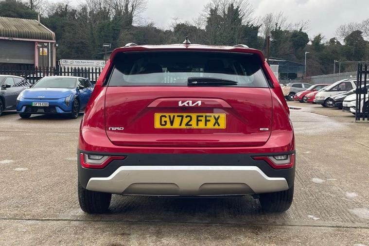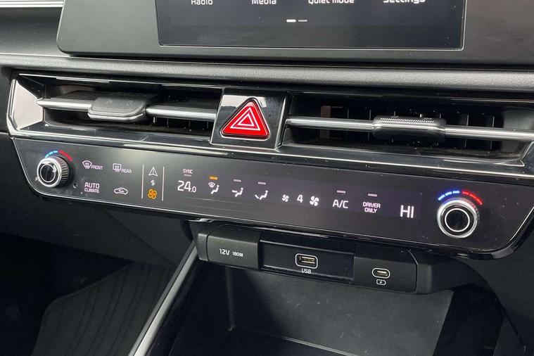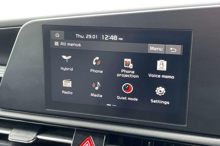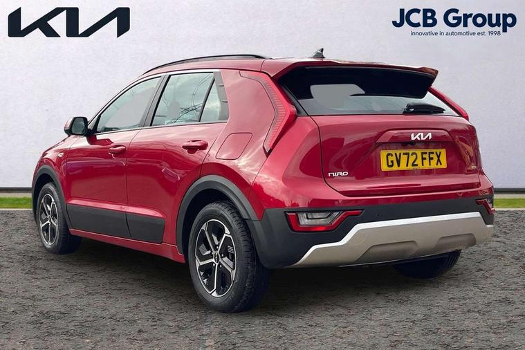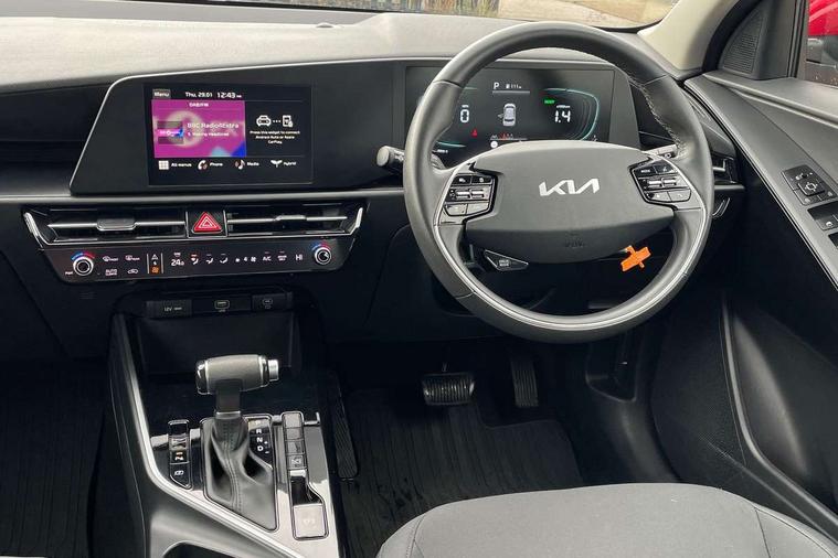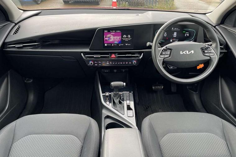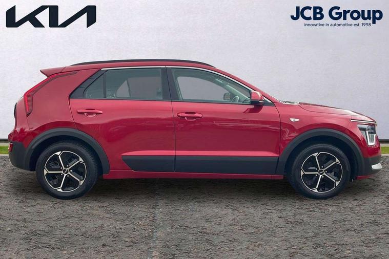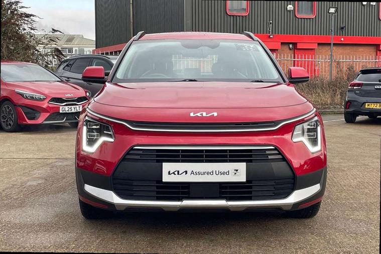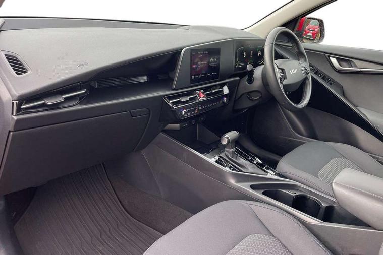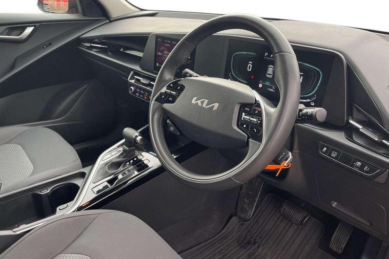 4.2" supervision colour cluster display, 8" touch screen, Adaptive smart cruise control function (SCC) with stop and go, Apple car play/Android Auto with voice control, Drive mode select (Eco, sport), E-call, Emergency stop signalling system, Forward Collision-Avoidance Assist (FCA) 1.5 - City/Pedestrian/Cyclist/Junction turning, Lane Following Assist (LFA), Lane keep assist, Motor driven power steering, Rear parking sensors, Reversing camera with dynamic guide lines, Speed limit assist, Tailgate, Trip computer with distance/fuel consumption/average speed, Sports H-Matic Automatic, 'Shark fin' mobile antenna, 2 type C USB ports on front seats, 2 USB ports in centre console including 1 type C, 6 speakers, Bluetooth with music streaming, DAB Digital radio, Steering wheel mounted controls, Acoustic windshield, All round electric windows with drivers auto up/down function, Auto dimming rear view mirror, Automatic defog system, Automatic headlight control system, Black beltline mouldings, Black embossed cladding, Body colour bumpers, Body colour door mirrors, Body colour exterior door handles, Dual LED headlights (low and high projection), Electric heated door mirrors, Front and rear silver skid plates, Heated rear window with timer, LED daytime running lights, LED rear combination lights, LED third brake light, Manual folding door mirrors, Rain sensor, Rear fog lights, Rear side wing doors, Rear spoiler, Rear wiper, Roof rails, Solar glass rear windows and tailgate, Solar glass windscreen, Welcome and follow-me home light functionality, Windscreen Washer Level Warning, 12V socket in front, 12V socket in luggage compartment, 3 seat bench in 2nd row, 60/40 split/folding 2nd row of seats, All-round height adjustable headrests, Artificial leather centre console storage box, Artificial leather steering wheel, Bulb overhead console, 2nd row and luggage lamp, Centre console cupholder, Cloth upholstery, Driver seat manual adjustment, Driver/passenger sunvisors with illuminated vanity mirrors, Dual zone automatic air conditioning, Front and rear door storage, H-Matic gear selection, Illuminated glovebox, Interior door lock/unlock function, ISOFIX Child seat top tethers and anchor fixings, Luggage area load cover, Luggage board, Metal paint interior door handles, Passenger seat height adjuster, Rear armrest, Single front passenger seat, Tilt/telescopic adjustable steering wheel, Towing pack - Niro, 3 point seatbelts on all seats, ABS, Automatic unlocking of doors in case of impact, Centre side front airbags, Curtain and side airbags, Drivers knee airbag, Dual shell horn, Electric parking brake with auto hold function, Electronic stability control, Front passenger airbag deactivation, Height adjustable front seatbelts, Hill start assist control (HAC), Manual rear child locks, Rear seat alert system, Traction control, Tyre pressure monitoring system, Alarm system and engine immobiliser, Deadlocks, Locking wheel nuts, Remote central door locking with fold away key, Visible vehicle identification number, Warranty - 7 Years/ 100, 000 miles, Graphite paint centre fascia, 16" alloy wheels, Tyre mobility kit,