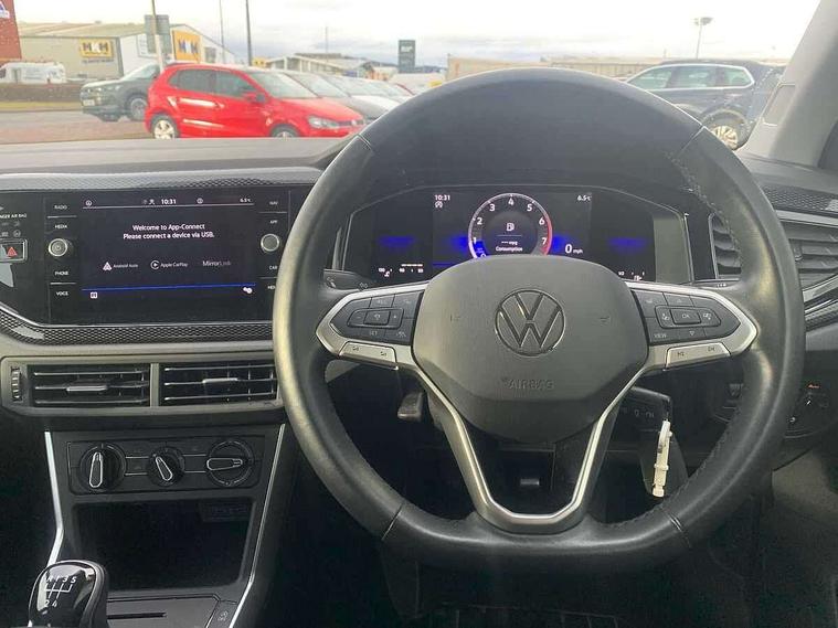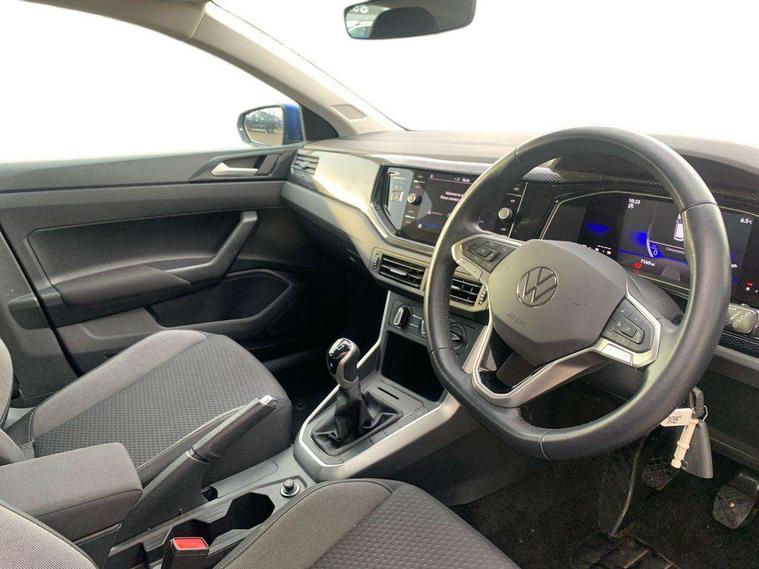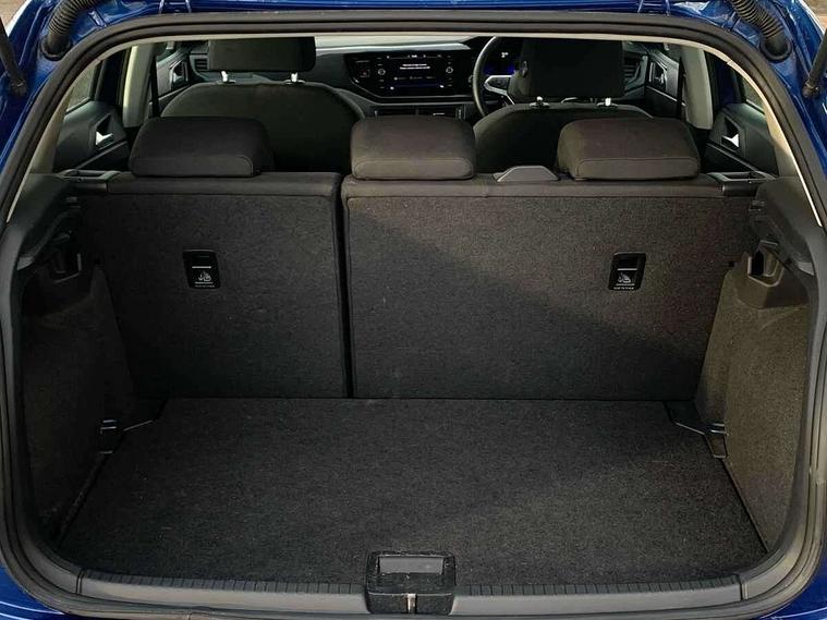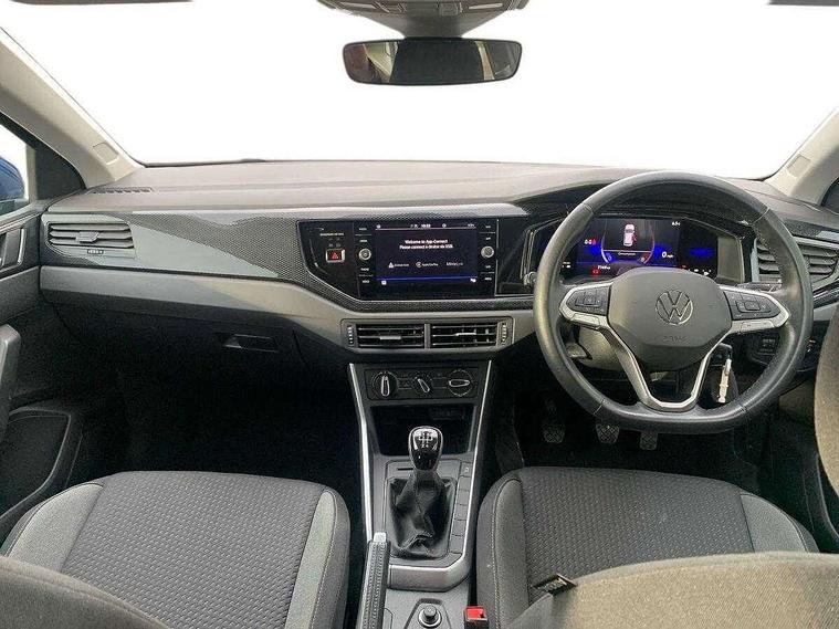 Adaptive cruise control without follow-to-stop and speed limiter, Bluetooth mobile phone interface, Driver alert system, Emergency call service, Front assist system, Power assisted speed sensitive steering, Preparation for We connect and We connect plus, Speedo and rev counter, electronic odometer, trip, service interval display and fuel gauge, Standard rear axle, Travel Assist - Lane keeping system and traffic jam assist, Travel assist including emergency assist, Trip computer, Warning signal and warning light for front and rear seatbelts not fastened, Washer fluid level indicator, Wireless app connect, Front wheel drive, Rear shock absorpion, Start-stop system with battery regeneration (recuperation - energy recovery during braking), DAB Digital radio, Diversity antenna for FM reception, Automatic dimming interior rear view mirror, Body colour bumpers, Body colour door handles, Body colour door mirrors, Electric front windows, Heat insulating darkened glass in side and rear windows, Heat insulating glass windscreen, Power folding adjustable/heated exterior mirrors and front passenger exterior mirror lowering function, Rain sensor, Rear electric windows, Rear fog light, Rear side wing doors, Rear windscreen washer and wiper with interval delay, Third brake light, 12V power socket in centre console, 2 front and 2 rear reading lights, 2 USB-C ports in the front, 2 USB-C charging sockets on the center console in the rear, 3 rear head restraints, 60/40 split folding rear seat and rear seat bench not split, Ceramique headliner, Chrome plated radiator grille inserts, air vent surrounds and light switch surrounds, Door and side trim panel, Driver and front passenger seat height adjustment, Driver/passenger sunvisors with illuminated vanity mirrors, Front centre armrest, Front seat backrest storage pockets, Front standard seats, Handbrake lever handle in leather, Hartley/Thomas cloth upholstery, Isofix child seat preparation easy-fit (for two outer rear seats, and front passenger seat) compatible with I-size, Leather trimmed gear knob, Luggage compartment cover, Luggage compartment floor, Luggage compartment lighting, Multifunction steering wheel, Single front passenger seat, Standard pedal cluster, Light and vision pack - Polo, 3 point height adj front seatbelts + pretensioners, 3x3 point rear seatbelts, ABS, Driver and front passenger airbag with front passenger airbag deactivation, Drivers and front passengers safety optimised head restraints, ESC (Electronic stability control) + EDL (Electronic Differntial lock) and ASR (Traction control), Extended and predictive pedestrian/ cyclist protection, Front curtain and side airbags with center airbag, Front disc brakes, Hill hold control, Manual child lock in rear doors, Rear drum brakes, Single tone horn, Tyre pressure loss indicator, Alarm with interior protection, Anti-theft alarm system with interior monitoring, backup horn, and towing protection, Anti-theft wheel bolts, Electronic engine immobiliser, Lava stone black gloss/matt decorative inserts in dash and front door panels, Low rolling resistance tyres,