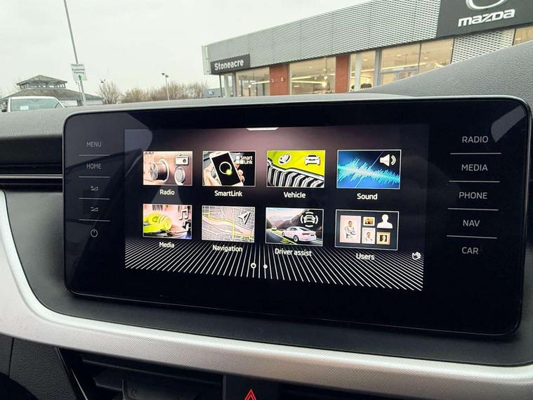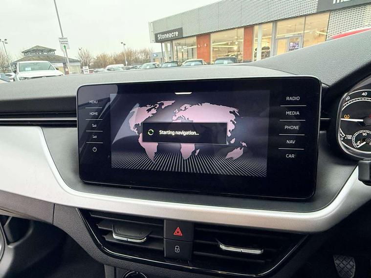 Amundsen satellite navigation with 9.2" glass colour touchscreen display, web radio, voice control and traffic sign recognition, Bluetooth system, E-call, Front assist system, Gesture control, PAS, Service indicator, Speed limiter, Wireless SmartLink for apple car play, android auto and mirrorlink, 8 Speakers, Auxiliary input socket, DAB Digital radio, Body colour bumpers, Body colour door mirrors and handles, Chrome grille surround, Dimming rear view mirror with black surround, Electrically adjustable and heated door mirrors, Front and rear electric windows, Headlight range control, Heated rear window, LED rear lights - low functionality, LED third brake light, Light sensors, Privacy glass, Rain sensor, Rear fog lights, Rear side wing doors, Rear wiper, 12V Accessory socket in centre console, 3 seat bench in 2nd row, Chrome inner door handles, Cloth upholstery, Front head restraints, Glove compartment with illumination, Height adjustable driver and front passenger seats - manual, Ice scraper, Isofix child seat fittings on outer rear seats, ISOFIX on front passenger seat, Manual lumbar support for front seats, Rake/reach adjustable steering wheel, Reading lights, Single front passenger seat, Sun visors with illumination on front passenger, Textile floor mats, Third rear headrest, Top tether for front passenger seat, Umbrella in driver's door, 3x3 point rear seatbelts, Airbags - driver and front passenger, ESP, Front passenger airbag deactivation switch, Front side airbags with curtain airbags, Hill hold control, Manual parking brake, Manual rear child locks, One tone horn, Rear disc brakes, Seatbelt reminder for driver an co-driver, Traction control, Tyre pressure monitor, Anti-theft alarm system with interior monitoring, backup horn, towing protection and remote central locking with SAFE system, Anti-theft wheel bolts, Electronic engine immobilizer, Silver haptic decorative insert on the dashboard with hot stamping in glossy black,
