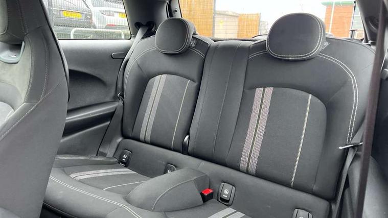 Compatible mobile phone bluetooth with audio streaming, Instrument cluster, Mini E-call, MINI TeleServices, On board computer, Service interval indicator, Performance Control, Steptronic sport transmission with double clutch and steering wheel paddles, 6.5" touchscreen with LED ring, FM tuner and DAB digital radio, Automatic headlight activation switch, Bonnet scoop, Chrome border honeycomb structure radiator grille with S badge, Chrome plated fuel cap, Dynamic brake lights, Electric front+rear windows, Heated rear window, Heated windscreen washer jets, John Cooper Works - aerodynamic kit (front and rear apron, spoiler), front and rear sport bumpers and part-painted side sills with door sill finishers, John Cooper Works rear spoiler, LED headlight with closed ring and daytime driving lights, Metal door sill strips with Cooper S imprint, Model logo Cooper S on right of tailgate, Rain sensor window wipers, Rear fog lights, Rear LED lights with union jack design, Rear window wiper, Side scuttle panel with integrated indicator, Sun/heat protection glass, Two central exhaust tailpipes with chrome finisher, White indicator lenses, 12V Accessory socket in centre console, 4 lashing eyes in luggage compartment, 60/40 split folding rear seat, Anthracite headlining, Chrome interior highlights, Cupholders, Front and rear isofix with front passenger airbag deactivation, Glove compartment, Height and length steering column adjustment, Interior lighting with 12 basic colours selectable via toggle switch in roof, John Cooper Works leather steering wheel with contrasting stitching in Chilli Red with John Cooper Works logo, John Cooper Works Logo in seat, Leather gearshift lever and handbrake gaiters, LED reading lights, vanity mirror lights, front foot well light and spotlight on front seats, Manual air conditioning, Mechanical seat adjustment, driver seat height adjust, forward/back and front seats backrest, Mini logo projection on floor from drivers exterior mirror, Multifunction steering wheel, Storage compartments in doors, Storage pocket on back of front seats, Sunvisors with vanity mirrors, 3 point seatbelts on all four seats, 6 Airbags - front, side, head and seat belt tensioners, Anti-lock braking system (ABS), DSC - Dynamic Stability Control, Front and rear disc brakes, Hill start assist, Two tone horn, Tyre pressure monitoring system, Alarm system with tilt sensor, monitoring doors, bonnet interior and tailgate, Electronic vehicle immobiliser, Start/stop toggle with keyless go, Tool kit,