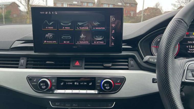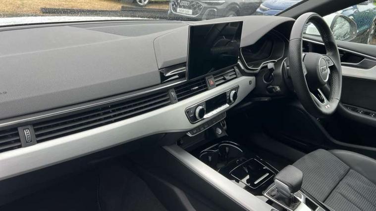 Audi connect safety and service (e-call), Audi connect with Amazon Alexa Integration, Audi drive select (Auto, Comfort, Dynamic, Efficiency and Individual), Audi parking system plus with front and rear sensors, Audi smartphone interface, Audi virtual cockpit - 12.3" full colour digital instrument cluster, vehicle/engine speed, Radio/media information+Driver assistance systems, Automatic start-stop system with coasting functionality and efficiency programme, Bluetooth interface, Electro-mechanical power steering, Email, calendar and text messages displayed via MMI, MMI nav+ with MMI touch - 10.1" high resolution MMI display, touch sensitive, 3D map, route/country info, dynamic route guide, personal route assist, Power operated tailgate, Rear view camera, Service interval indicator, Voice control system, Diesel particulate filter, Sports suspension lowered by 23mm, 8 passive loudspeakers, CD player, DAB digital radio reception, Two additional USB ports for rear passenger in rear centre console, Two SDXC card slots, Audi matrix LED headlights with LED rear lights + dynamic front and rear indicators, Auto dimming door mirrors, Auto dimming rear view mirror, Body colour bumpers, Body colour door handles, Body colour front spoiler lip, Body colour side sill trim, Body coloured door mirrors, Electric adjustable heated door mirrors, Electric folding door mirrors, Electric front windows, Front fog lights, Honeycomb structure radiator grille in grained matt black, Kerb-view function for passenger side, LED daytime running lights, LED side indicator lights integrated into door mirrors, LED third brake light, Matt aluminium silver tailpipe trim, Privacy glass, Rain and light sensors, Rear side wing doors, S line badges on front wings, S line front and rear bumpers with side skirts, S Line rear diffuser in matt titanium black with trim strip in matt aluminium silver, Side air inlets in grained matt black with matt aluminium silver inlay, Variable front intermittent wipers, Windscreen with acoustic glazing, 3 seat bench in 2nd row, 4 way electric lumbar support for driver and front passenger, 40/20/40 split folding 3 seater rear bench seat, Adjustable steering column, Black cloth headlining, Black perforated leather gearknob, Contrast stitching on seats, steering wheel and gear lever gaiter, Deluxe 3 zone electronic climate control, Front centre armrest, Front head restraints, Front/rear floor mats, Heated front seats, Illuminated door sill trim with S logo, ISOFIX child seat mounting and top tether, Luggage compartment mat, Manual seat adjustment, Rear centre armrest, Rear headrests, Single front passenger seat, Stainless steel pedals, Sunvisors with vanity mirrors, LED interior light pack - A5/RS5, 3x3 point rear seatbelts, 6 airbags - Driver, front passenger, curtain and side airbags, Electromechanical parking brake, Electronic Stabilisation Control (ESC) including ABS, ASR and EDL, Front passenger airbag deactivation, Height adjustable front seatbelts, Hill hold assist, Manual child lock in rear doors, Multi collision brake assist, Pop-up bonnet for pedestrian protection, Pre sense city, Seatbelt monitoring, Tyre pressure warning, Variable restraint system, Warning triangle and first aid kit, Anti theft alarm system, Anti theft wheel bolts, Immobiliser, Keyless Go, Remote central locking, Matt brushed aluminium inlays, Tool kit, Tyre repair kit,