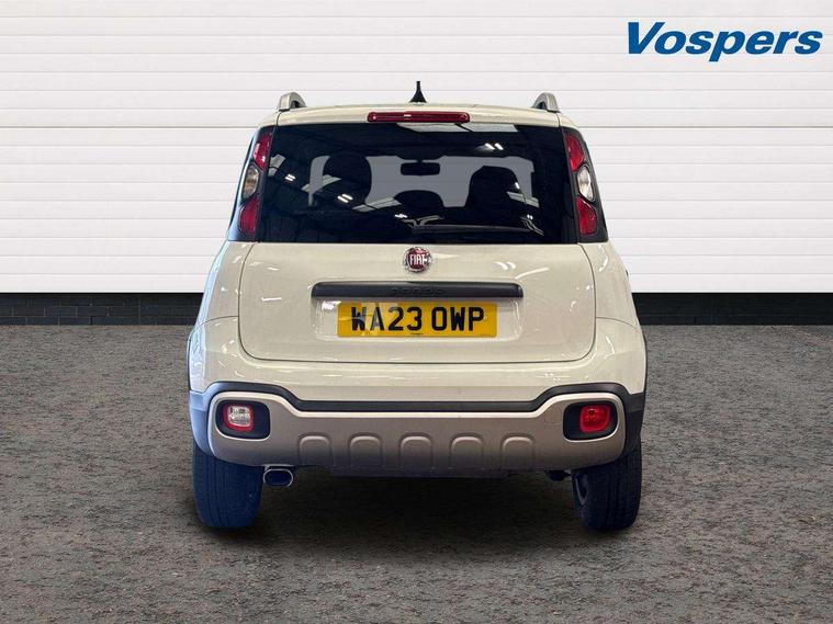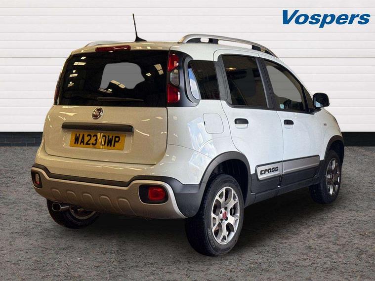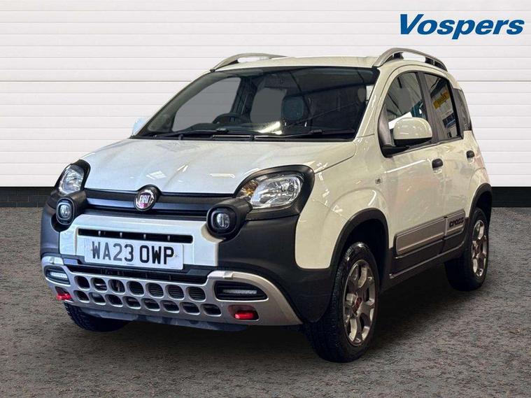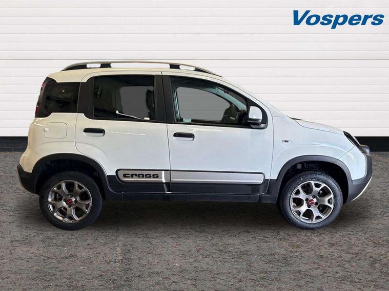 7" touchscreen with Apple car play and Android auto, All terrain selector switch with 3 modes (Auto, Off-road, Hill Descent Control), All wheel drive (including ELD system), Dual drive PAS, Emergency services call system, Outside temperature display, Outside temperature sensor, Rear parking sensor, Stop/start system, Tailgate, Trip computer, Larger 120 Amp alternator, Rear differential gear locking, 4 speakers, Bluetooth radio with Smartphone cradle, USB and DAB, Steering wheel audio controls, Black bodyside mouldings, Black door handles, Black side skirts, Body colour door mirrors, Chrome exhaust tailpipe, Cross body coloured bumpers and skid plate, Cross styling, Dusk and rain sensors, Electric adjustable heated door mirrors, Electric front windows, Front fog lights, Front tow hooks in brilliant red, Heated rear window+rear wash/wipe, LED daytime running lights, LED Headlights, Rear side wing doors, Thermal windows, Third brake light, Ultrashine silver roof rails, Ultrashine silver side mouldings with cross logo, Variable front intermittent wipers, 12V power sockets, 3 rear headrests, 40/60 split-folding 3 rear seat, Auto climate control, Bi-colour Cloth/Eco leather upholstery, Driver's sun visor with vanity mirror, Front spot light with timer, Height adjustable driver's seat, Height adjustable steering wheel, High centre console, Isofix attachments on outer rear seats, Leather gear knob, Passenger sunvisor with vanity mirror, Single front passenger seat, Comfort kit - Panda, 3 rear seatbelts, ABS/EBD, Anti-whiplash front headrests, Brake assist function, Child locks on rear doors, Default brake calipers, Driver and passenger airbags, ESC with ASR + hill holder, Front passenger airbag deactivation, Front seatbelt pretensioners, Hill descent control, Seat belt reminder, Tyre pressure monitoring system, Window airbags, Immobiliser, Remote control central door locking, Antracite dashboard, Hot black eco leather door panels, 15" Style alloy wheels, Summer tyres,