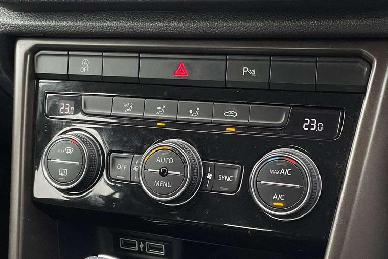 2 USB connection charging sockets, Adaptive cruise control, App-Connect, Automatic start/stop system, Bluetooth telephone and audio connection for compatible devices, Car information display, Front assist, radar sensor controlled distance monitor, city emergency braking + predictive pedestrian protection, Lane assist, Multifunction computer with visual gear change recommendation for fuel consumption, Power assisted speed sensitive steering, Service interval indicator, Think blue trainer driver tips and journey analysis, Warning sound and light for doors and tailgate open, Warning sound and light for front seatbelts unfastened, Battery regeneration during braking, Bluetooth - Simultaneous pairing of 2 compatible mobile devices, DAB Digital radio, Multi device interface (MDI) with USB connection, Music playback - MP3, WMA and AAC files, Premium USB cable in choice of either Apple or Android smartphone compatibility, SD card slot, SMS functionality - read, compose and send SMS messages using touch-screen display, Title and cover art display, Auto dimming interior rear view mirror, Automatic hazard lights activation under emergency braking, Black grained lower door protectors, Black grained wheel arches, Body colour bumpers with silver metallic underbody fascia, Body colour door handles, Chrome trim on upper and lower radiator grille, Door mirror integrated indicators, Dusk sensor, Electrically foldable, adjustable and heated door mirrors with puddle lights and reverse activated kerb-view adjustment on passenger's door mirror, Front and rear electric windows, Front windscreen wiper with intermittent wipe and 4 position delay, Fully galvanised body, Heated rear window, High level 3rd brake light, LED rear number plate lights, Manual coming/automatic leaving home lighting function, Rain sensor, Rear windscreen washer and wiper with interval delay, 12V socket in centre console storage area, 2 front reading lights, 3 rear head restraints, 4 load lashing points in luggage compartment, Climate control - 2 zone electronic air conditioning with automatic air recirculation and allergy filter, Drawer under drivers seat, Front centre armrest with storage compartment, longitudinal and height adjustable and two rear air vents, Front cupholders x 2, Front seat back storage pockets, Glovebox, Height adjustable front seats, Height/reach adjust steering wheel, Illuminated vanity mirrors, Instrument lighting, white adjustable panel illumination, Interior light delay, Isofix easy fit child seat preparation for 2 outer rear seats, Load through provision with single cup holder when folded down, Luggage compartment cover, removable, Luggage compartment lighting, Split folding rear seat backrests with centre armrest, Storage compartment in left and right luggage area, Storage compartment in rear doors, Storage compartments in driver and front passenger doors, 3 rear three point seatbelts, ABS, Driver and front passenger safety-optimised head restraints, Electronic parking brake with auto hold, ESC with EDL, ASR, EDTC and trailer stabilisation function, Front and rear curtain airbags, driver and front passenger airbags with passenger deactivation switch and front side impact airbags, Rigid safety cell with front and rear crumple zones, Three point height adjust front seatbelts + pretensioners, Tyre pressure loss indicator, Ventilated front and rear disc brakes, Volkswagen roadside assistance, Alarm with remote central locking and interior protection, Electronic engine immobiliser, Remote central locking with 2 remote folding keys, Dark oak brown decorative inserts in dash and door panel,