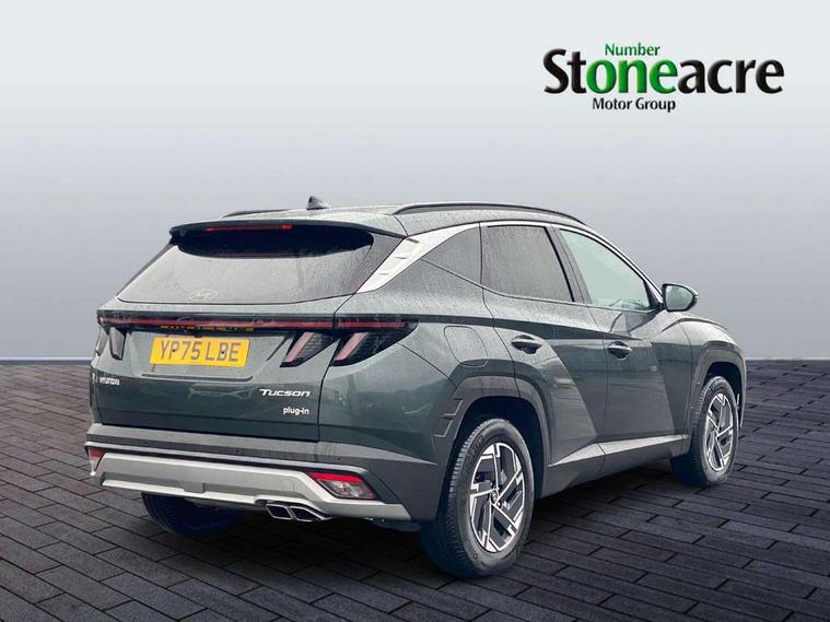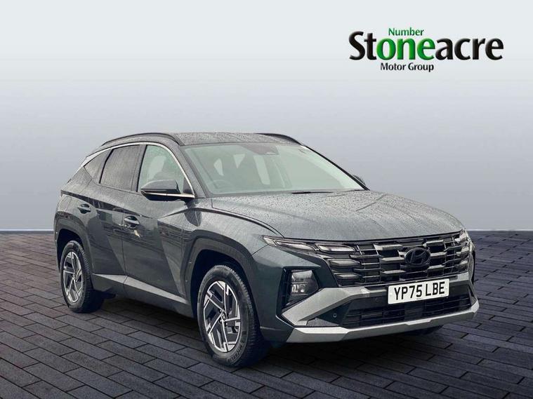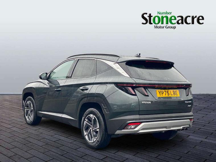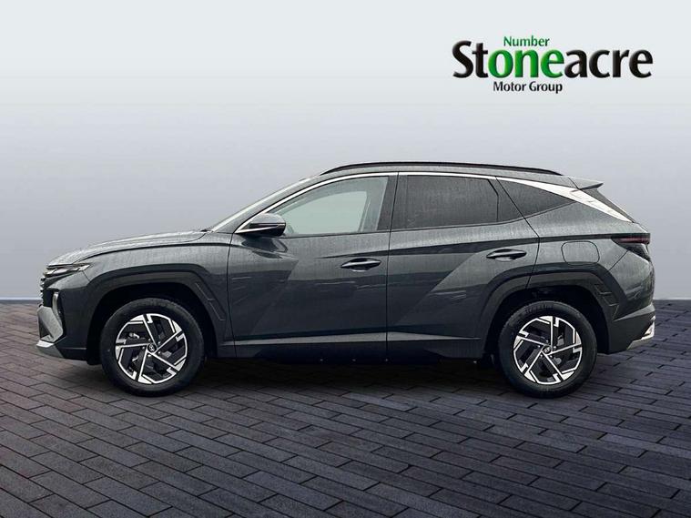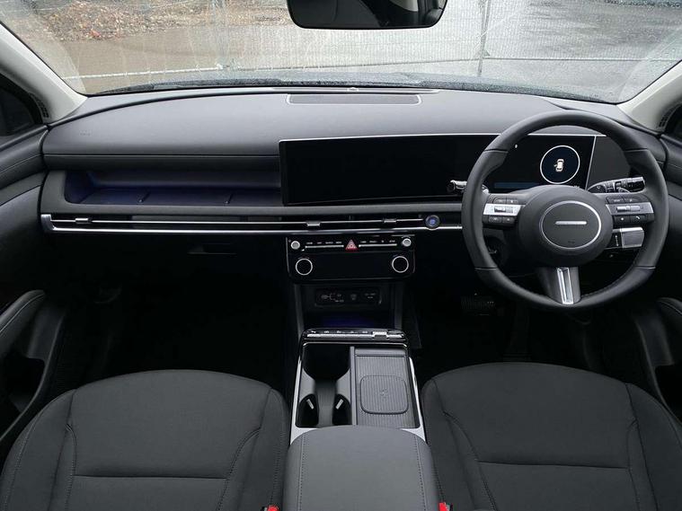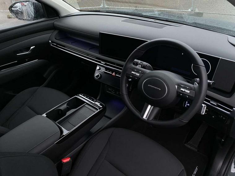 12.3" LCD display with driver's supervision instrument cluster, 12.3" widescreen navigation with bluelink and mapcare, Bluetooth system, Cruise control, Digital clock, Drive mode selector, Driver attention warning, E-call, Emergency stop signalling system, Forward Collision Avoidance Assist (FCA) - Car, Pedestrian and Cycle, Front and rear parking sensors, Hyundai road side assistance, Intelligent speed limit assist, Lane follow assist, Lane keep assist, Over the air updates(OTA), PAS, Rear camera and guidance parking system, Rev counter, Tailgate open warning light, Trip computer, Trip odometer, Voice recognition, Water temperature gauge, Windscreen washer fluid sensor and warning indicator, Wireless Apple CarPlay/Android Auto, Wireless phone charging pad, Charging cable - 7 pin type 2, Charging cable - Emergency 3 pin connector mode 2 (ICCB), 2 front and 2 rear speakers with 2 tweeters, 2 front and 2 rear USB-C ports, DAB Digital radio, Steering wheel mounted audio/phone controls, Adjustable intermittent front windscreen wipers with aero wiper blade, Auto dimming rear view mirror, Automatic defog system, Automatic headlights with dusk sensor, Automatic windscreen wipers with rain sensor, Black wheel arches, Body colour bumpers, Body colour door mirrors with integrated indicators, Body colour exterior door handles, Electrically adjustable, heated and power folding door mirrors, Follow me home headlights, Front and rear electric windows with anti-trap mechanism and one touch control, Front fog lights, LED 3rd brake light, LED daytime running lights, LED Headlights, LED rear lights, Positioning Lights - LED, Privacy glass - Rear windows and tailgate, Rear side wing doors, Rear wash/wipe with intermittent wipe setting, Roof rails, Soft touch rear door paneling, Tinted glass with windscreen shade band, Trailer stability assist, 12V power outlets in front console and luggage compartment, 3 seat bench in 2nd row, 40/20/40 split folding rear seat, 64 colours interior ambient lighting, Adjustable head restraints (Up and down), Cupholders in rear armrest, Door courtesy lights, Driver and passenger sunvisors with illuminated LED vanity mirrors, Driver's seat manual height adjust, Dual zone climate control, Front and rear door pockets, Front armrest with storage box, Front centre console and door bottle holders, Height/reach adjustable steering column, Illuminated/air conditioned glove compartment, ISOFIX child seat anchorage points attached on outer rear seats, Leather wrapped steering wheel and gear knob, LED interior lighting, Luggage compartment lighting, Luggage cover, Luggage hooks, Luggage net, Manual height adjustable front passenger seat, Map and reading lights, Premium cloth upholstery, Rear seat remote folding function, Reclining rear seats, Retractable load cover, Single front passenger seat, Sunglasses holder, Touch sensitive climate controls with temperature dials, Underfloor boot compartment, Trailer wiring package - Tucson, 3x3 point rear seatbelts, Active bonnet, Airbag - Front, front side, curtain and centre front airbags, Anti-lock brake system (ABS), Brake assist function, Childproof rear door locks, Curtain airbag roll over sensor, Downhill brake control, Electric parking brake, Electronic stability control, Front and rear seatbelt reminder, Front passenger airbag deactivation switch, Front seatbelt pretensioners, Hill start assist control (HAC), Multi-Collision braking, Outer rear seatbelt height adjustment, Seatbelt height adjustment for front seats, Traction control, Tyre pressure monitoring system with individual tyre pressure display - TPMS, Vehicle stability management, Deadlocks, Immobiliser, Locking wheel nuts, Remote control central locking, Smart key with keyless entry and engine start/stop button, Speed sensitive auto door locking, Thatcham category 1 alarm, 17" Alloy wheels, Tyre repair kit,