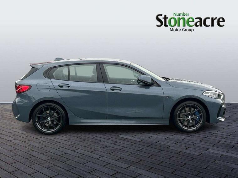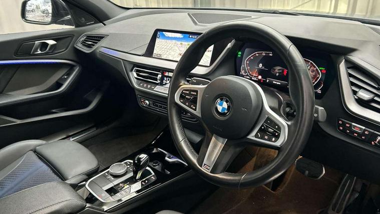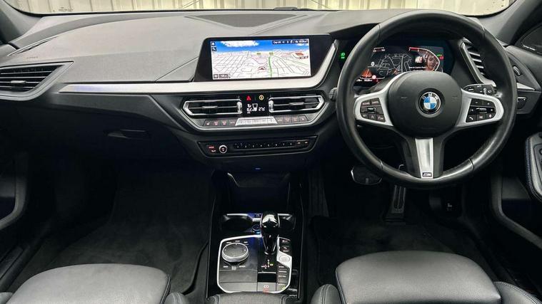 Active guard plus, Attentiveness assist, BMW ConnectedDrive online services, BMW Teleservices, Check Control warning system for monitoring of lights and door/luggage compartment open warning, Cruise control with speed limiter, Eco pro mode, Front axle single joint with specific axle kinematics to minimise drive influences on steering + provide increased rigidity agile driving behaviour, Integrated owners handbook, Lane departure warning system, Oil sensor for level and grade, On board computer, Optimum shift indicator, Personal Profile, Pull away assistant, Rigidly mounted rear subframe - Multi link construction with separate spring / damper configuration and excellent driving characteristics, Speed limit Info including no-overtaking indicator, Aluminium lightweight construction, Anti roll bar front and rear, Balancer shaft, Double VANOS twin scroll turbocharging system, Drive Performance Control, Electronic differential lock, High precision injection, M sport suspension, Petrol Particulate Filter, Twin tube gas filled shock absorbers with degressive characteristic curve, VALVETRONIC engine management, DAB Digital radio, Auto dimming rear view mirror, Automatic headlight beam throw control, Automatic windscreen wipers and automatic headlight, Body colour door handles, Body colour mirror caps, Body colour roof trims, Chrome 'M' logo side designation, Chrome exhaust twin tailpipes round 90mm in left, Chrome kidney grille frame with Satin Aluminium struts, Direction indicator side lights in exterior mirrors, Electrically adjustable exterior mirror with mirror adjustment switch on drivers armrest and aspheric on driver side, convex on passenger side, Fading support, Folding side mirrors with auto dimming/folding wing mirrors with auto dimming, Follow me home headlights, Front and rear bumper system with replaceable deformation elements, Front and rear electric windows with open and close fingertip control, anti trap facility and comfort closing, Front door sill finishers in black plastic with M designation in metallic look, Green tinted heat protection glazing, High gloss shadowline window frame, Recess cover mirror frames and B/C pillar embelisher trim, High level third brake light, Integrated front windscreen with washer jets, LED daytime running lights, LED eyebrow turn indicators, LED front fog lights, Lightweight engineering, Matt black air guide grilles, Matt black wheel arch trim, Model designation on electric bootlid, Nearside reverse light in rear light cluster, Preparation for high beam assistant, Rear fog lights, Rear side wing doors, Rear window wiper, Shark fin antenna, Trailer stabilisation logic, Visible VIN plate, Welcome lighting, 12V power socket in front centre console with blanking plug, 3 rear seat head restraints, 3 seat bench in 2nd row, 3 spoke sports leather steering wheel with black leather and stitching, pearl chrome decorative finish, specific M Badge, Anthracite headlining, Black boot net with lashing eyes, Cargo function on 2nd seat row, Child seat ISOFIX attachment for two outer rear seats and front passenger seat with anchorage points, Conditioned based service, Driver and front passenger backrest net on rear, Driver and front passenger seat heating, Driver side folding compartment in instrument panel, Folding rear clothes hook, Four grab handles integrated in roof lining, Front and rear door pockets with bottle holders, Front and rear side armrest integrated into door trim, Front armrest, Front sports seats, Glove compartment, Height adjustable front head restraints, Luggage compartment for bag hooks on left and right, foldable luggage compartment liner and four lashing eyelets, Manual adjust steering wheel, Multi-function controls for steering wheel, Single front passenger seat, Storage compartment in centre console, Storage compartment in luggage compartment, Stowage of the parcel shelf in luggage compartment trim, Sun visors with vanity mirrors and insert tab, Two front centre console cupholders, Two zone automatic air conditioning, Type C two USB ports in rear centre console, Velour floor mats, Additional interior lighting pack - 1 Series, BMW live cockpit professional pack- 1 Series, Connected pack professional - 1 Series, Interior lights pack - 1 Series, M Sport exterior styling aerodynamics pack - 1 Series, 2 tone horn, 3 point seatbelts on all seats, front pyrotechnic belt tensioners, stopper and belt force limiters, rear coded belt buckles, Airbags - Front driver/passenger, front and rear curtain head protection, front side, manual deactivation of front passenger airbag, Anti lock braking system (ABS) with brake assist, BMW emergency call, Brake drying, Braking readiness, Child proof locking system in rear door, City braking function, Comfort modes, Cornering brake control, Crash sensor activating of airbags, Unlocking doors, hazard warning lights, fuel cut off, interior lighting+activation of safety battery terminal clamp, Driver and front passenger seat belt security check, Dynamic stability control + (DSC+), Dynamic Traction Control - DTC, Electrically operated hand brake including automatic hold function, Front and rear disc brakes, Seatbelt warning, Side impact protection, Tyre pressure monitoring system, Warning triangle and first aid kit, Central locking switch for all doors, fuel filler cap and luggage compartment, Deadlocking function system to all doors, Drive away locking system on all doors and luggage compartment with de-activated in iDrive settings, Locking wheel bolts, Remote control with integrated key with High-gloss Black inlay and M designation and 1 button for open/ close lock, window, open luggage compartment, Start/stop button illuminated in centre console with keyless engine start and auto start stop deactivation button, Thatcham Cat.1 alarm and immobiliser, Wheel slip limitation close to the actuator (ARB), Contrast stitching on instrument panel, 18" Burnished M double spoke bi-colour alloy wheels finished in orbit grey - styl