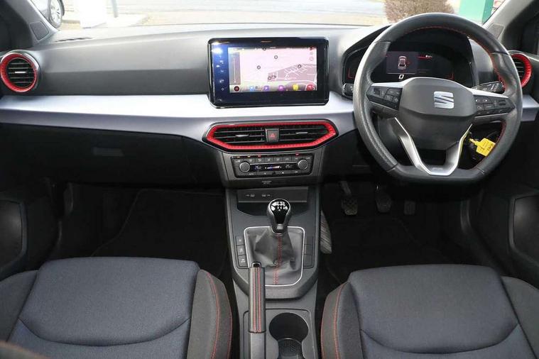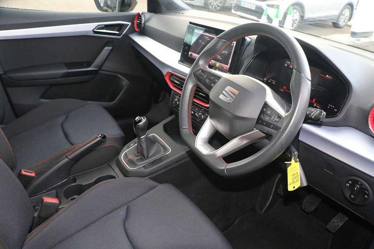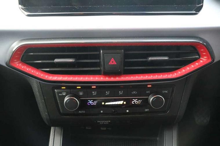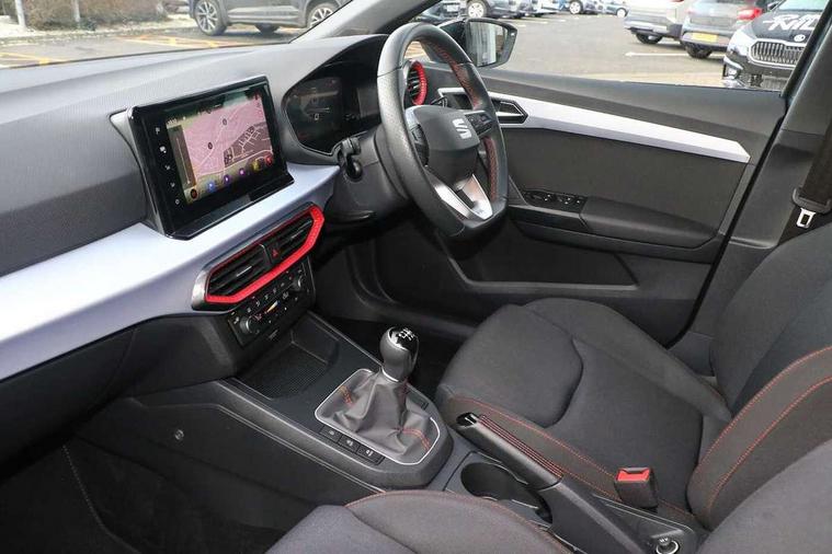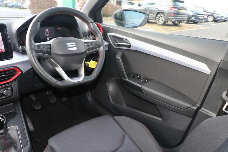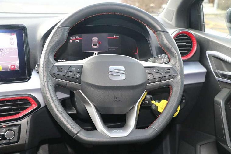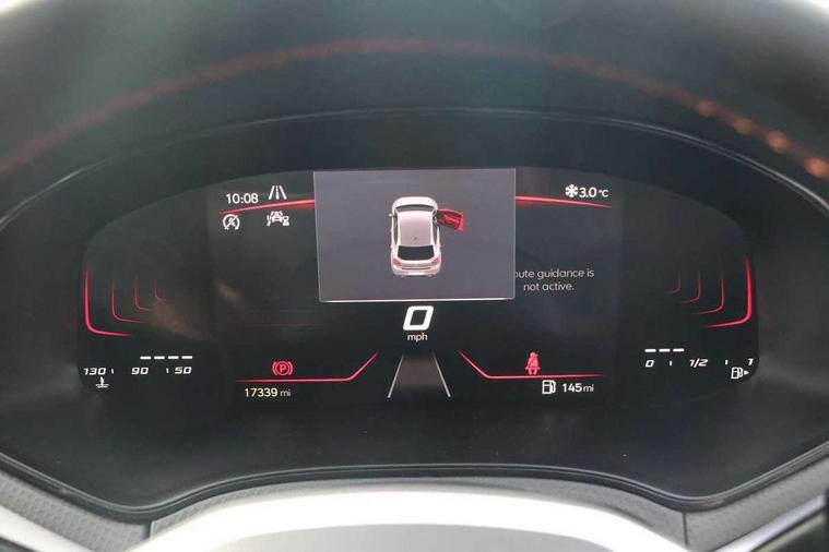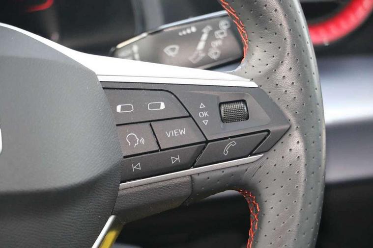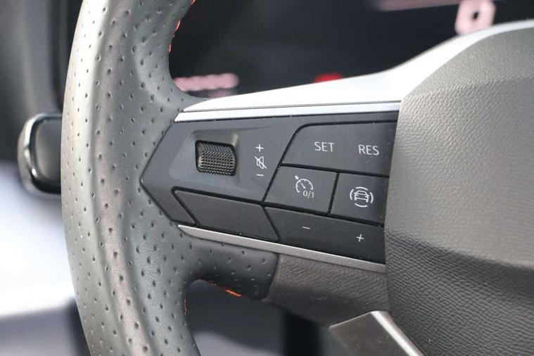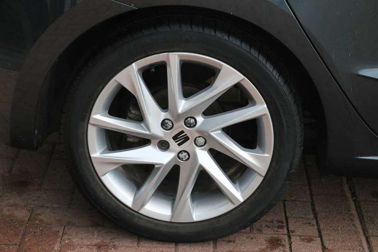 'Lights On' Reminder warning buzzer, 8" Digital cockpit, 9.2" touchscreen navigation system with type C USB socket, Voice control and DAB/AM/FM radio, Auto start and stop system, Bluetooth audio streaming with handsfree system, Digital clock, E-call, Full link smartphone integration with mirror link, wireless apple carplay, Google android auto + USB Type C cable for apple and android devices, Lane assist, Low fuel warning light, Outside temperature gauge, Power Steering, Seat connect with safety, service, remote and online, SEAT drive profiles and ECO function, SEAT logo boot release, Speed limiter, Trip computer, Sports suspension, Auxiliary input socket, Radio/MP3 player, SD card slot, Steering wheel mounted controls, Anti theft roof antenna, Auto dimming rear view mirror, Automatic rain sensing wipers, Black door mirrors, Body colour bumpers, Body colour door handles, Brilliant black window surrounds, Dark tinted rear windows, Electric adjustable/heated/folding door mirrors, Electric front windows, Electric headlight adjustment, Electric rear windows, Front/rear fog lights, FULL LED automatic headlights with dynamic headlight range control, coming and leaving home, LED daytime running lights, LED tail lights, Rear roof spoiler with FR twin exhausts, Rear side wing doors, Rear wiper, Third brake light, 3 seat bench in 2nd row, 60/40 split folding rear seat, Ambient interior lighting, Chrome detailing and black headlining, Cloth upholstery, Dual zone climate control with combination filter, Front courtesy lights, Front cupholders x 2, Front reading lights, Gear shift indicator, Glovebox, Height adjustable front and rear headrests (five), Height adjustable front seats, Height/reach adjust steering wheel, Illuminated air vent surrounds, Illuminated boot, Instrument lighting with brightness control, Isofix, Leather multifunction flat bottomed sports steering wheel, Passenger sunvisor, Single front passenger seat, Sports seats, Sunvisors with mirror and driver side card holder, 3 point seatbelts on all 3 rear seats, ABS, Active front headrests, Child locks on rear doors, Electronic stability control, Energy recovery system, Front assist forward collision warning and autonomous emergency braking, Front driver and passenger side airbags with curtain airbag and front passenger airbag deactivation, Hill hold control, Multi-Collision braking, Seat belt reminder for front and rear seats, Tiredness recognition system, Tyre pressure monitoring system, Electronic engine immobiliser, Locking wheel bolts, Perimeter alarm and interior monitoring with backup horn and tow away protection, Remote central locking + deadlocks, 17" Alloy wheels in Brilliant silver,