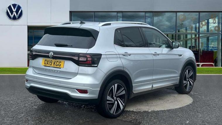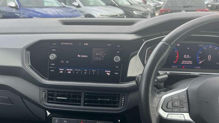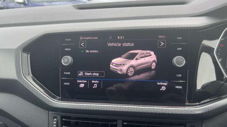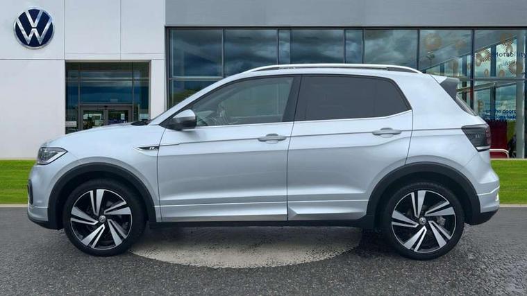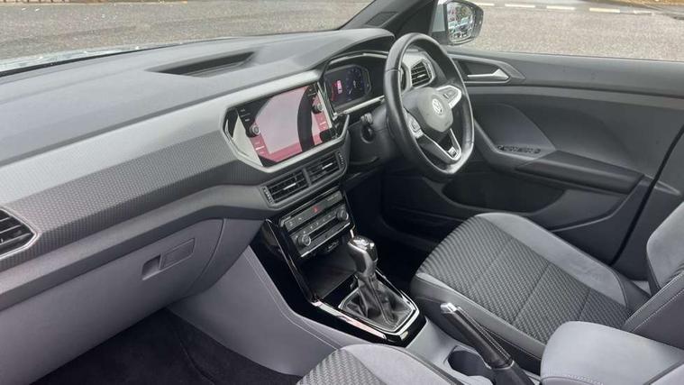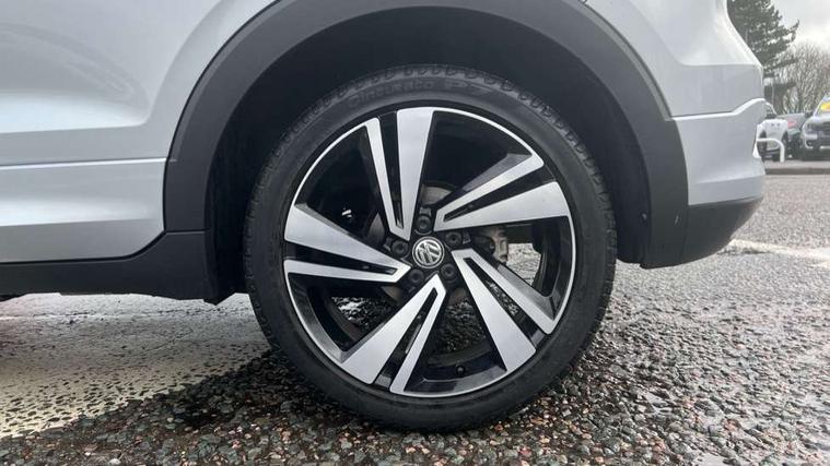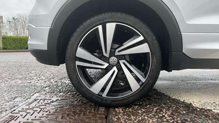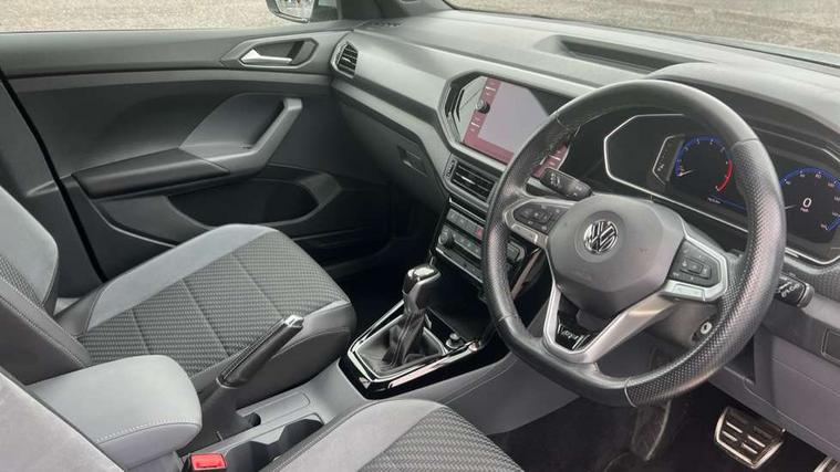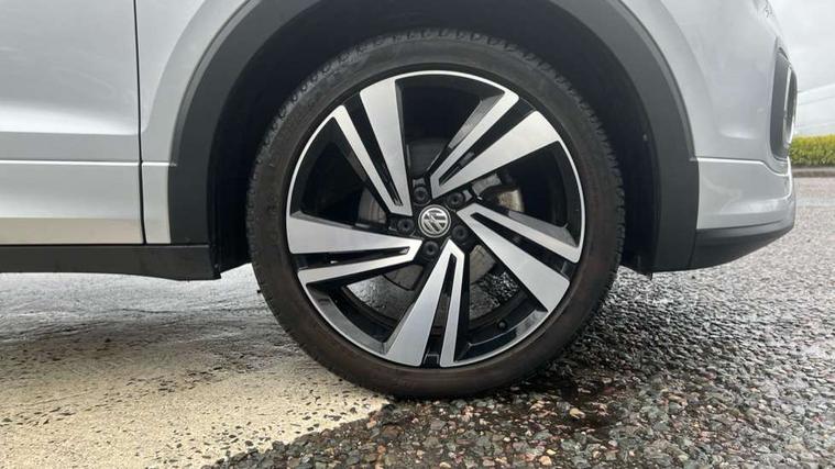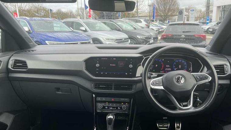 'Lights On' Reminder warning buzzer, Active Info display 10.25" high resolution TFT dash display with customisable menu and information, Adaptive cruise control including front assist, radar sensor controlled distance monitoring system, city emergency braking, cruise control/speed limit, Car-Net App-Connect with VW media control, Discover navigation system with 8.0" colour screen, radio/CD player, European map data, Driver alert system, eCall emergency call system, Lane assist with blind spot plus lane keeping system, Low washer fluid warning light, Multifunction computer with visual gear change recommendation for fuel consumption, Power assisted speed sensitive steering, Progressive steering, Side scan blind spot detection, Speedo, rev counter, electronic odometer, trip, service interval display, exterior temperature and fuel gauge, Stop/start system, Warning sound and light for doors and tailgate open, Warning sound and light for front seatbelts unfastened, Battery regeneration during braking, Misfuel prevention device, 2 USB sockets in rear, Composition Media with 8"colour touch screen including DAB/CD drive, MP3/WMA, AUX-in/SD slot, 1 USB port and Bluetooth telephone connectivity, Multi device interface (MDI) with USB connection, Premium USB cable for Apple or Android smartphone compatibility, Simultaneous pairing of 2 compatible mobile devices, Title and cover art display, Automatic dimming interior rear view mirror with rain sensor, Automatic hazard lights activation under emergency braking, Body colour door handles, Body colour door mirrors with integrated indicators, Body colour rear roof spoiler, Body coloured bumpers, Dusk sensor, Front and rear electric windows, Front fog lights with static cornering function, Galvanised body, Heated rear window, High level 3rd brake light, LED headlights with auto range adjustment + LED daytime running lights, Lower door sills and door pillars in black, Manual coming/automatic leaving home lighting function, Radiator grille with chrome lamelel and bumpers in wagon paint, Rear tail lights LED except turn signals, Rear tinted glass 65% approx light absorbing from B pillar backwards, Rear window aerial, Rear windscreen washer and wiper with interval delay, Reflectors in all doors, Silver roof rails, Stainless steel door sill protection, Tailgate with integrated roof spoiler, Unique R Line badging, Windscreen wipers/ intermittent wipe + 4 position delay, 12V Accessory socket in centre console, 2 Front and rear reading lights incorporating LED technology, 2 Zone electronic climate control with automatic air recirculation, 3 rear head restraints and 3 rear three point seat belts with ECE label, 60/40 split folding rear seat backrest, Aluminium pedals, Black headlining, Carbon flag cloth upholstery, Drawer under drivers seat, Driver and front passenger sunvisor with vanity mirror, Driver's sunvisor with ticket holder, DSG Paddle Shifts, Dust and pollen filter, Front + rear carpet mats, Front centre armrest with storage compartment and two rear air vents, Front comfort seats, Front seat back storage pockets, Front seat R Line logo with rear seat backrest, Front sports seat with height and lumbar adjustment, Glovebox, Heating and fresh air system with 4 stage blower, Height/reach adjust steering wheel, Instrument lighting white adjustable panel illumination, Interior light with delay, Isofix child seat preparation for 2 rear child seats, Luggage compartment cover, Luggage compartment lighting, Moveable and foldable Rear bench seat, Removable luggage cover, Storage compartment in driver and passenger doors, Three spoke multi-function leather trimmed steering wheel and gearknob, Variable boot floor, R Line styling pack - T-cross, 3 point seat belt with electric pre tensioner, Anti-lock Braking System (ABS) with Hydraulic Brake Assist (HBA), Automatic post collision braking system, Driver and front passenger safety-optimised head restraints, Drivers and Front Passengers airbags with front passengers airbag deactivation switch, ESC with EDL, ASR, EDTC and trailer stabilisation function, Extended and proactive pedestrian protection, Front and rear curtain airbags, Front seat side impact airbags, Front ventilated disc brakes and rear disc brakes, Height adjustable 3 point automatic front seatbelts with pretensioners, Hill start assist, Pre crash preventive occupant protection, Rigid safety cell with front and rear crumple zones, Tyre pressure loss indicator, Volkswagen roadside assistance, Alarm with remote central locking and interior protection, Central locking without safe fuse with radio remote control and 2 radio folding keys, Child security locks in rear doors, Electronic engine immobiliser, Remote tailgate unlocking using key fob, Race decorative inserts in dash and doors, 18" Nevada black alloy wheels + anti theft wheel bolts,